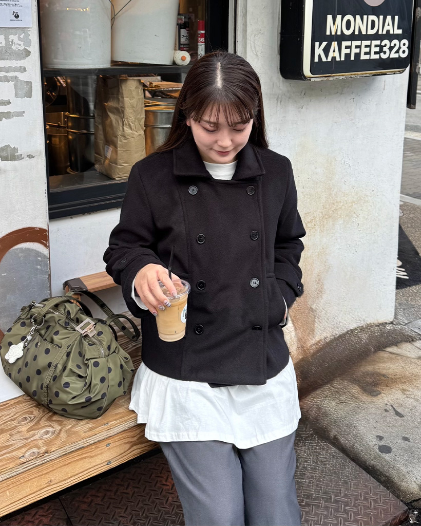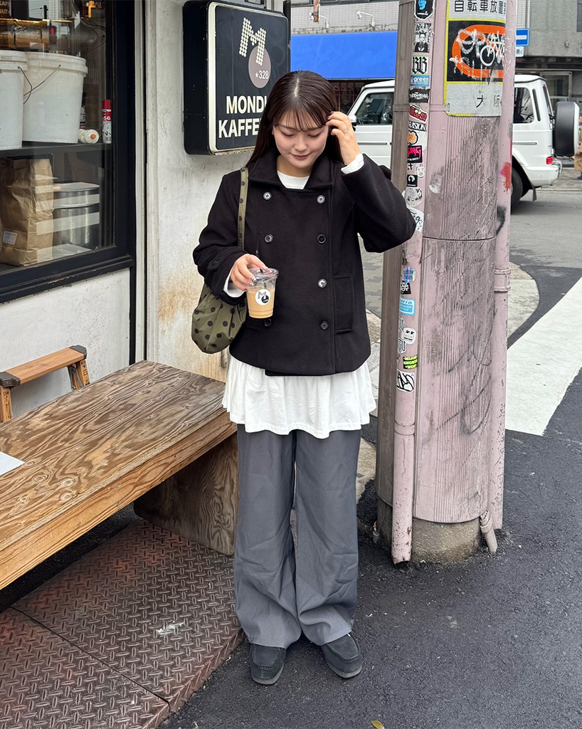 #マユ#157cm#ウェーブ#モノトーン#ユニセックス#カジュアル
