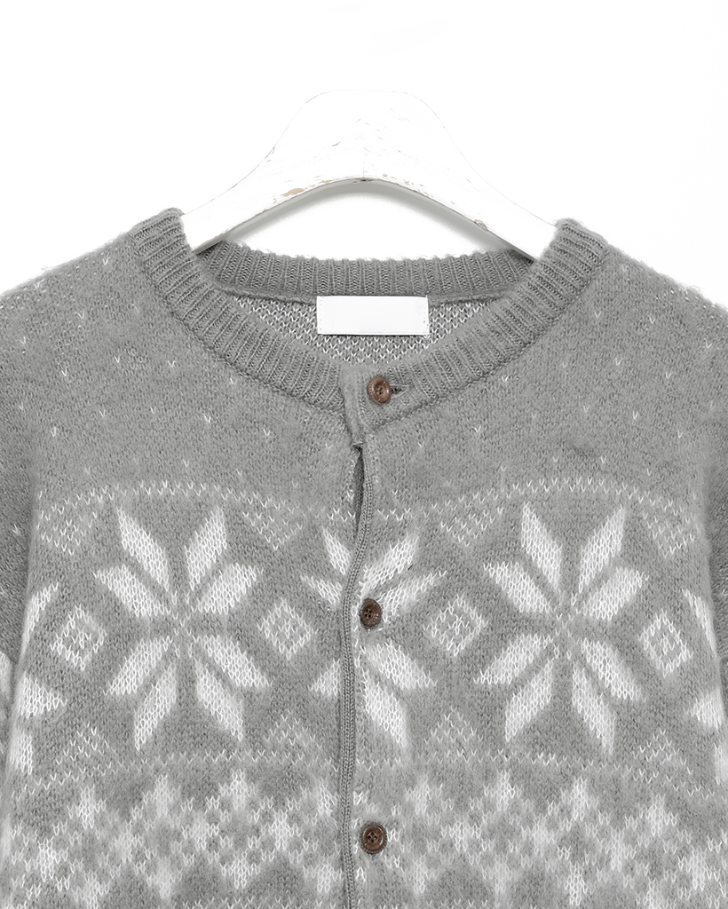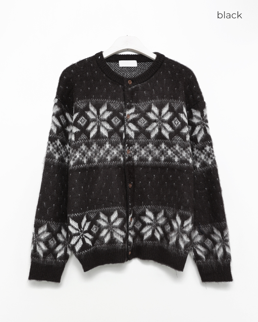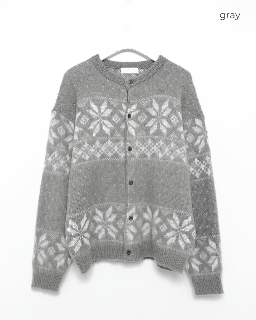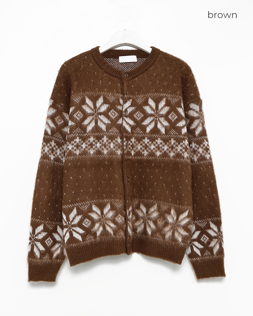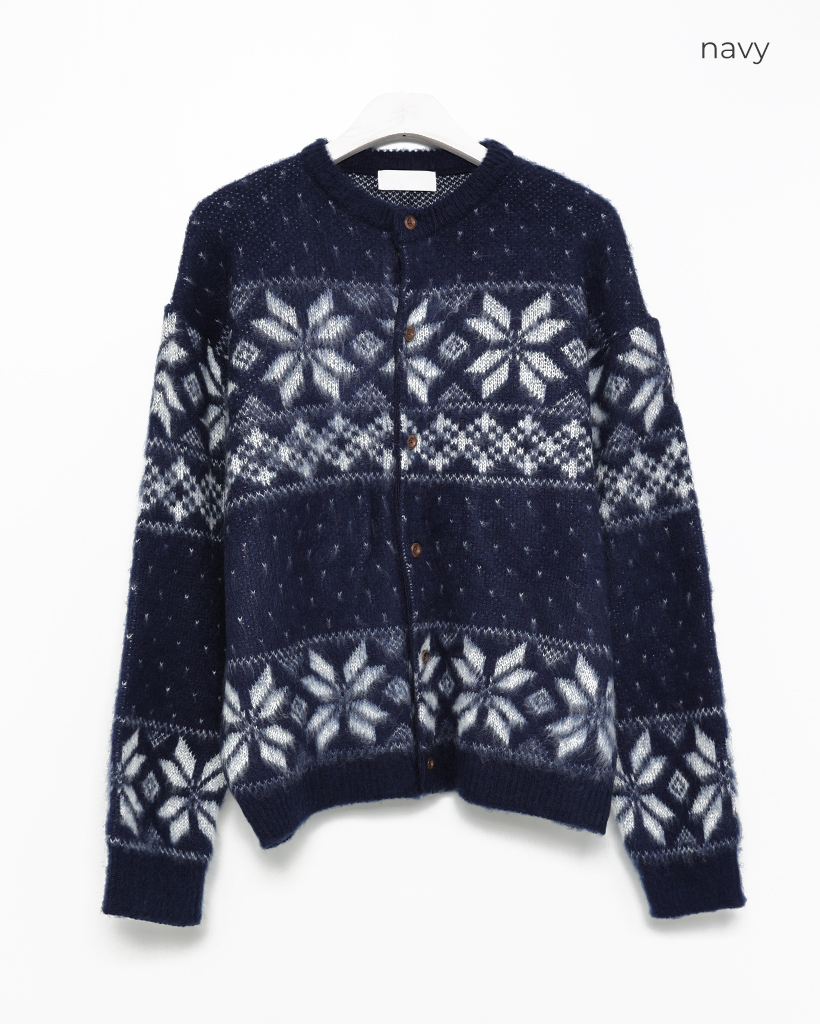 (ユニセックス)ノルディックラウンドネックヘアリーニットカーディガン