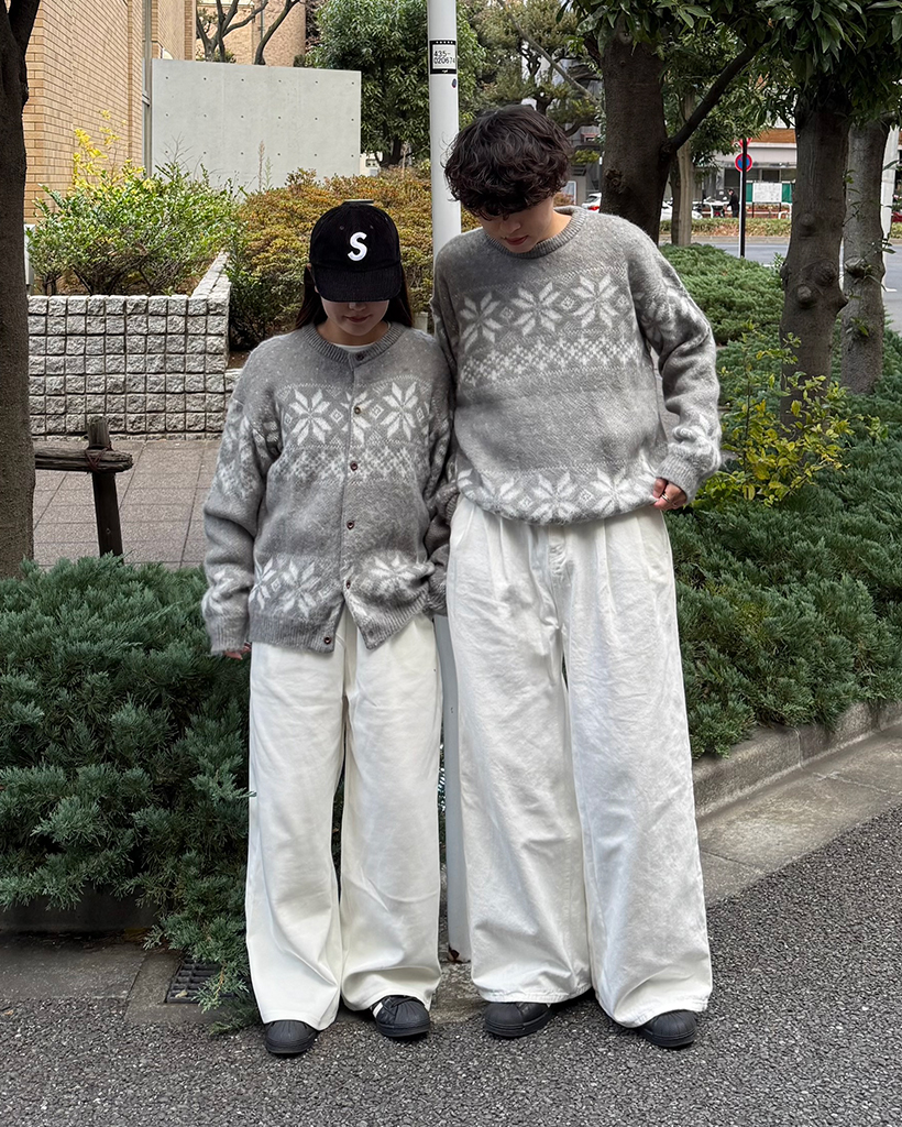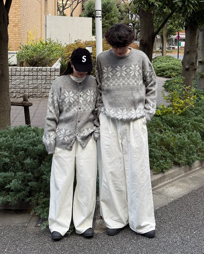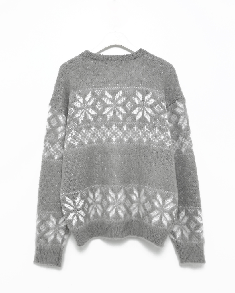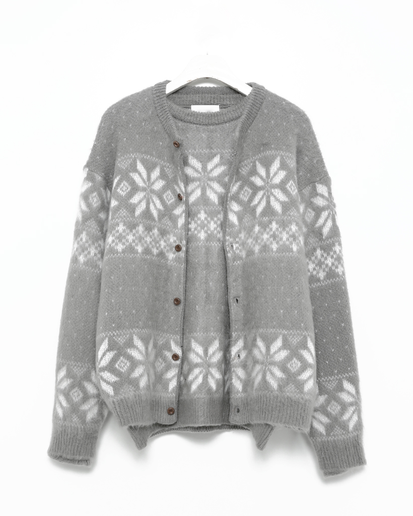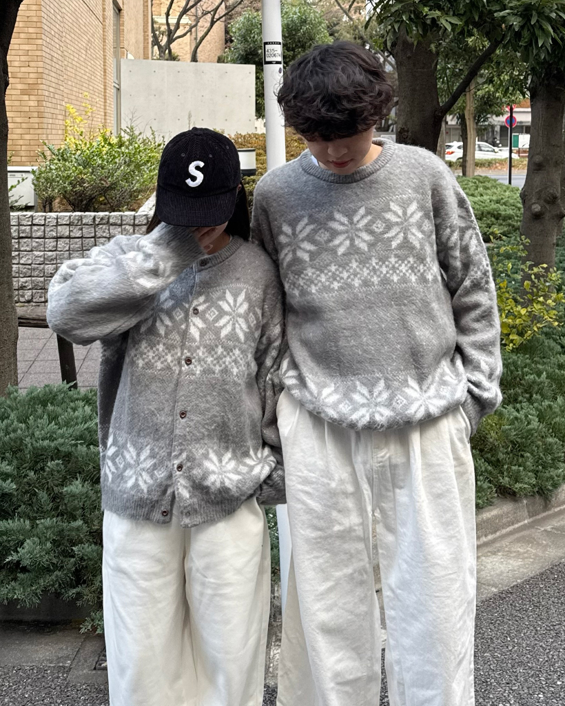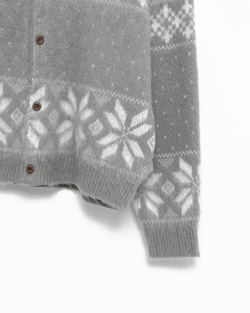 (ユニセックス)ノルディックラウンドネックヘアリーニットカーディガン