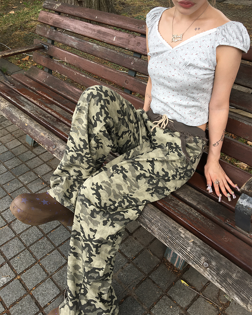 バッグステッチカモフラージュスウェットパンツ