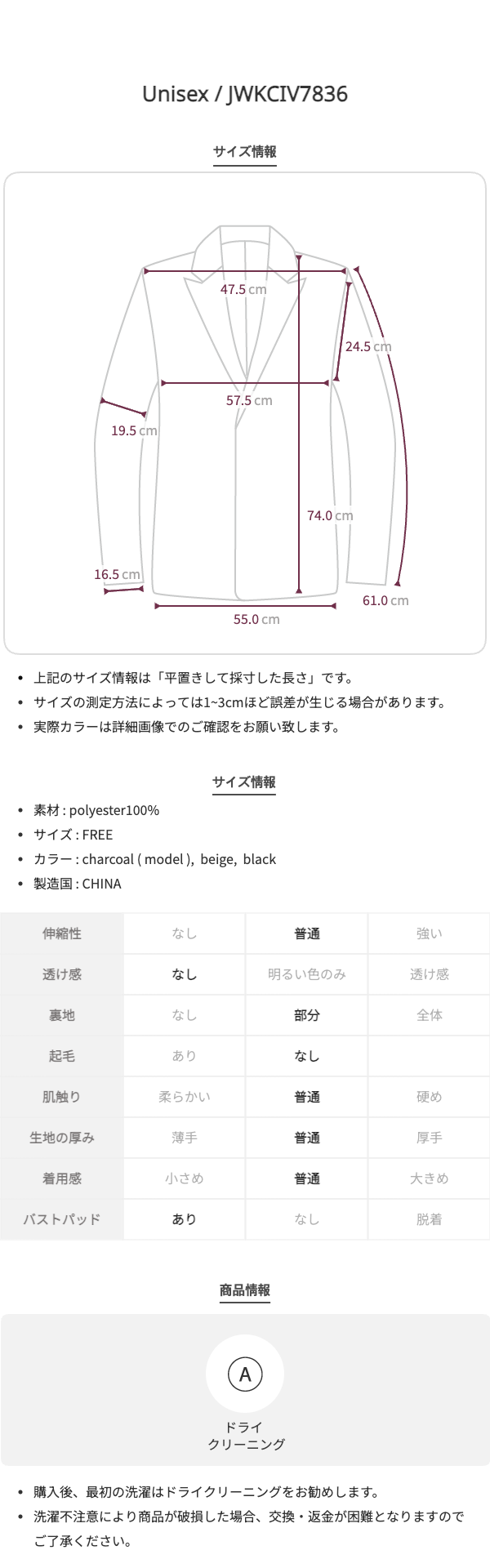 (ユニセックス)オーバーサイズベーシックブレザー