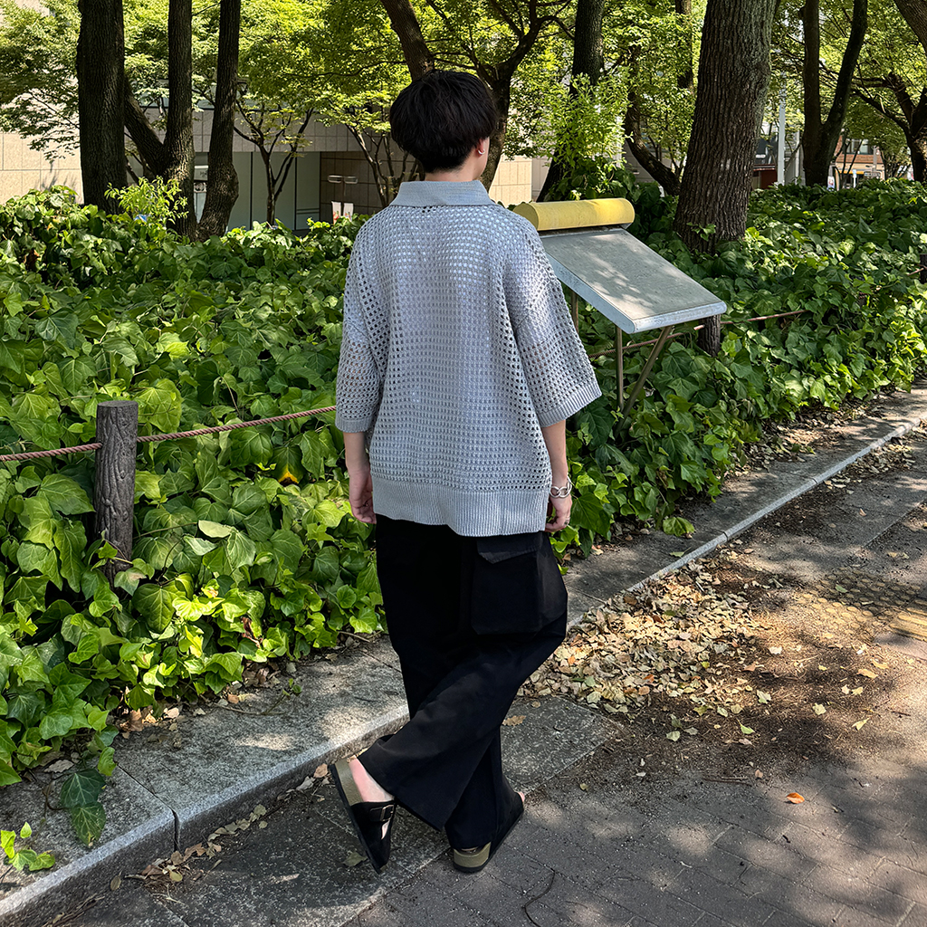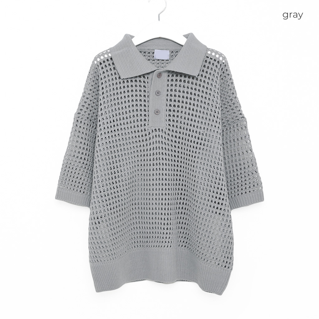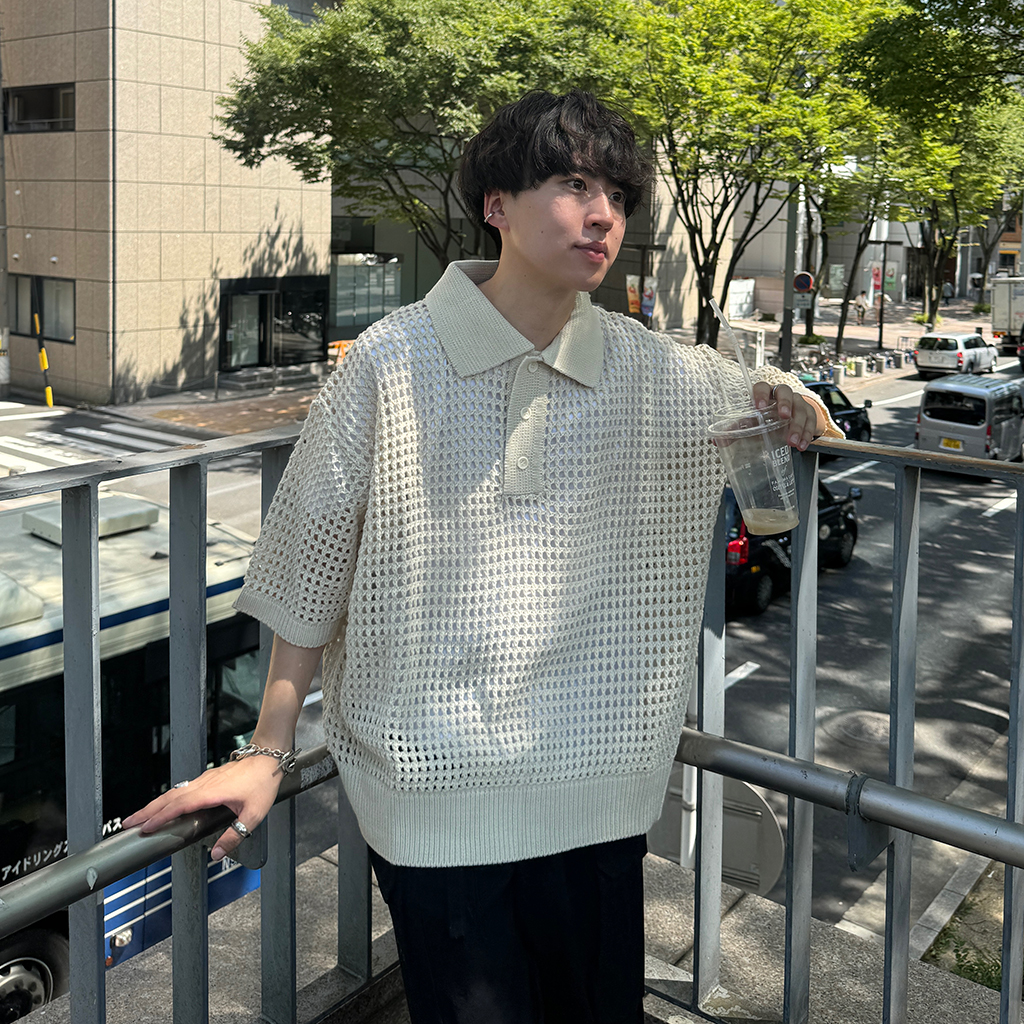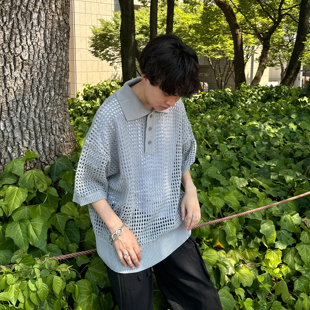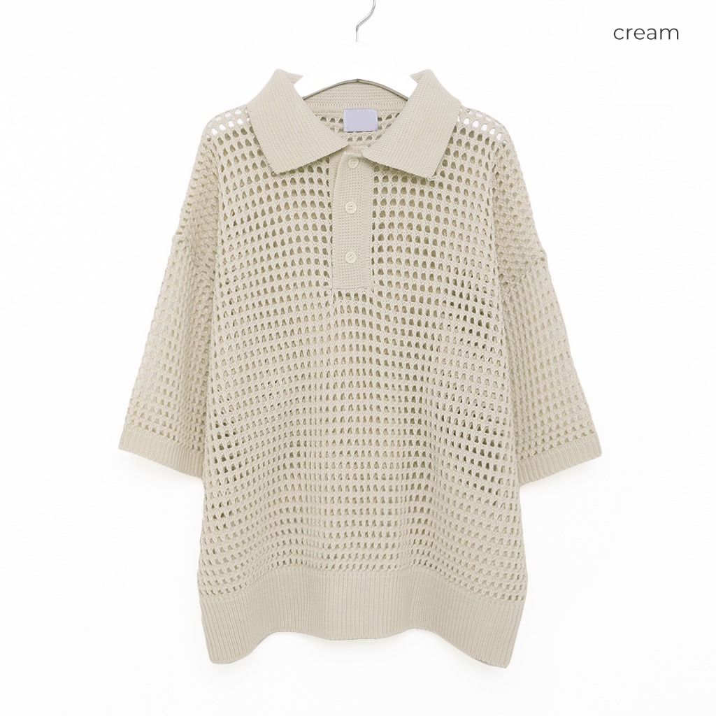 メッシュ半袖カラーニット