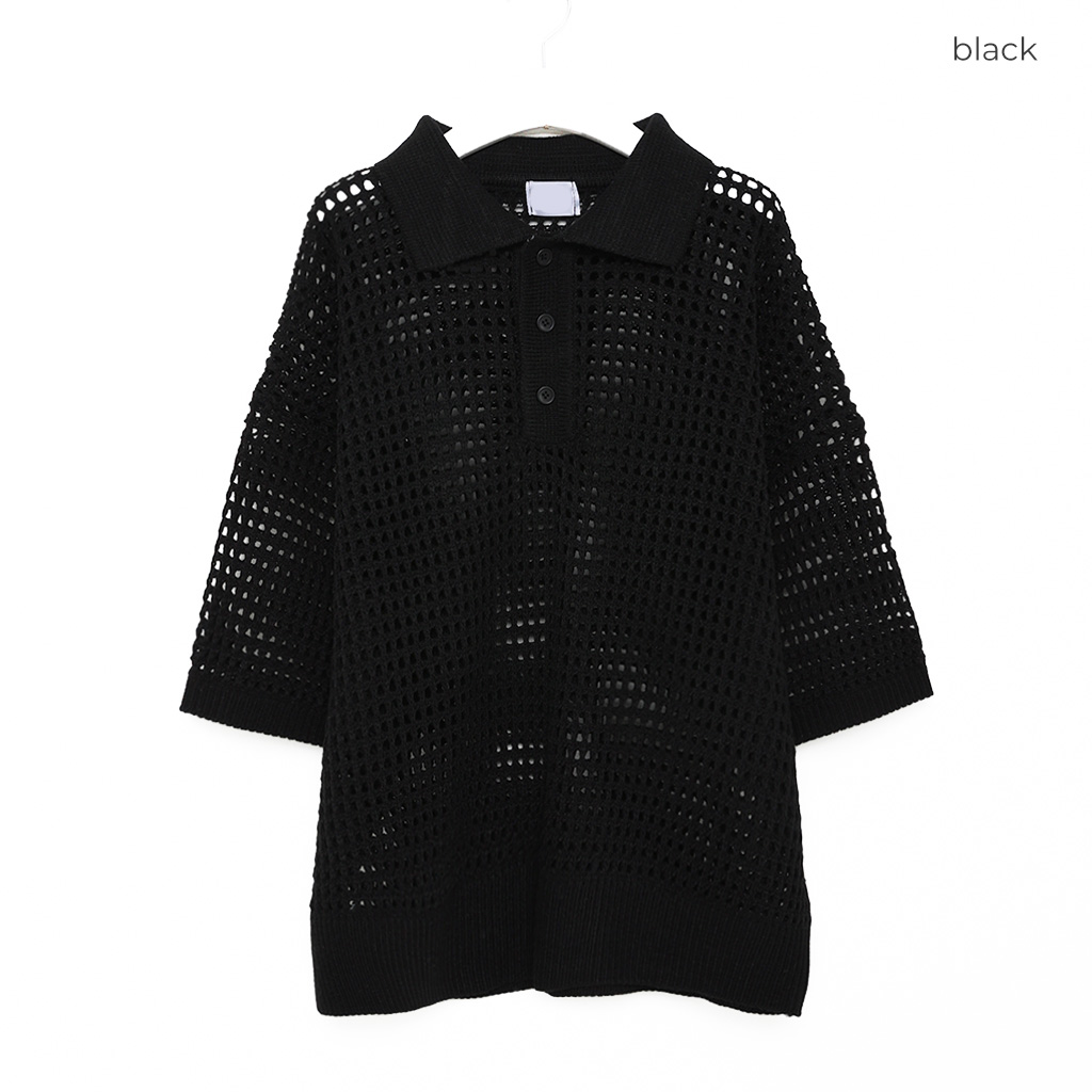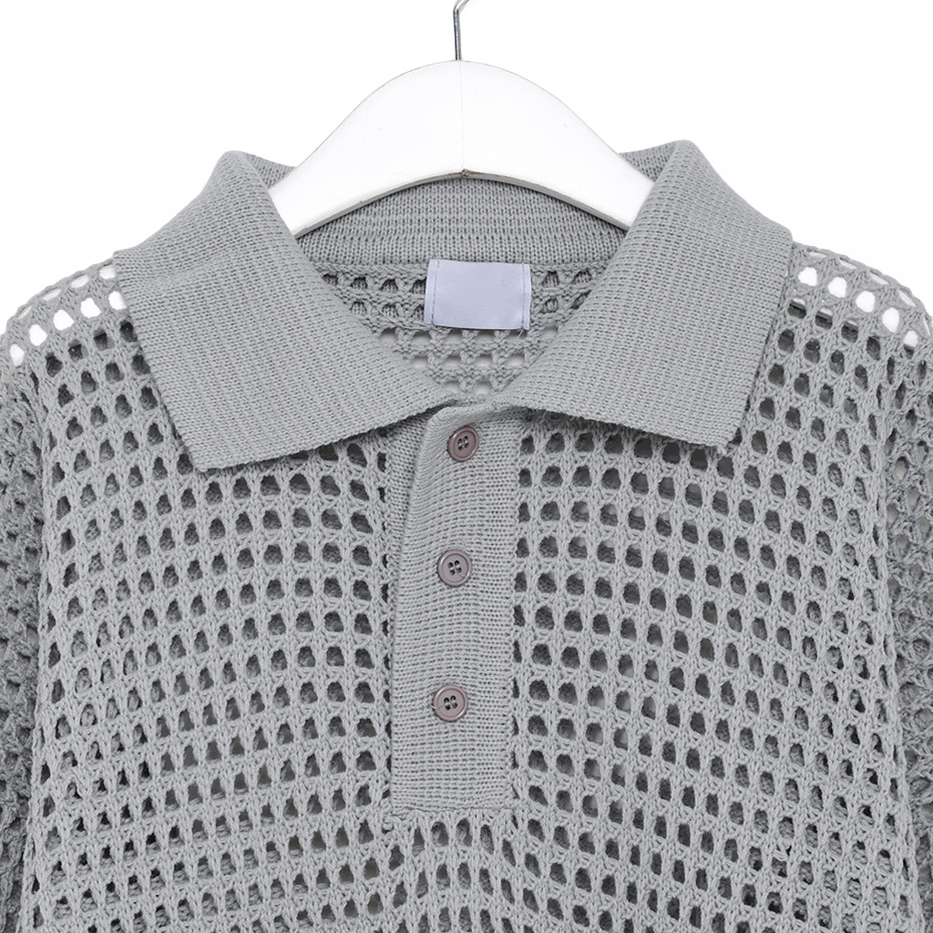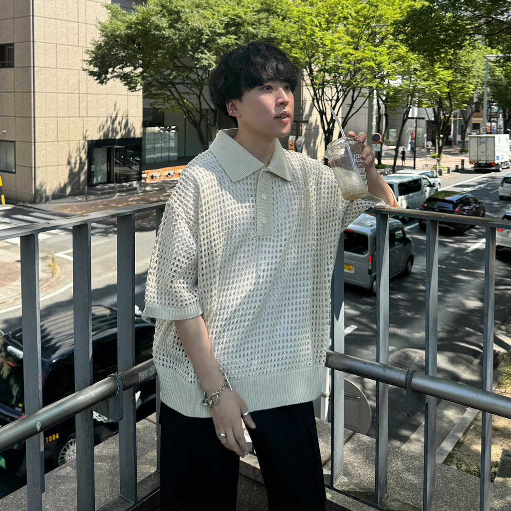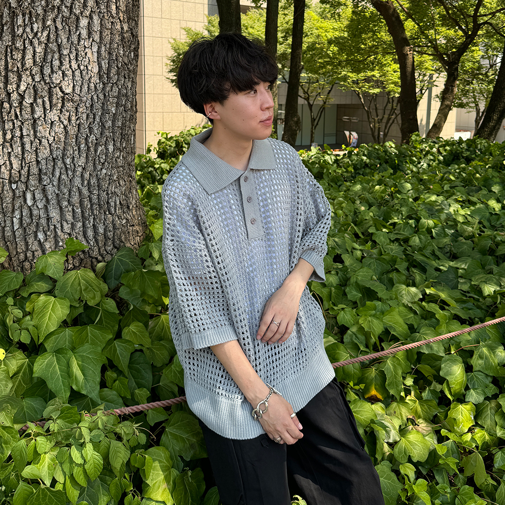 メッシュ半袖カラーニット