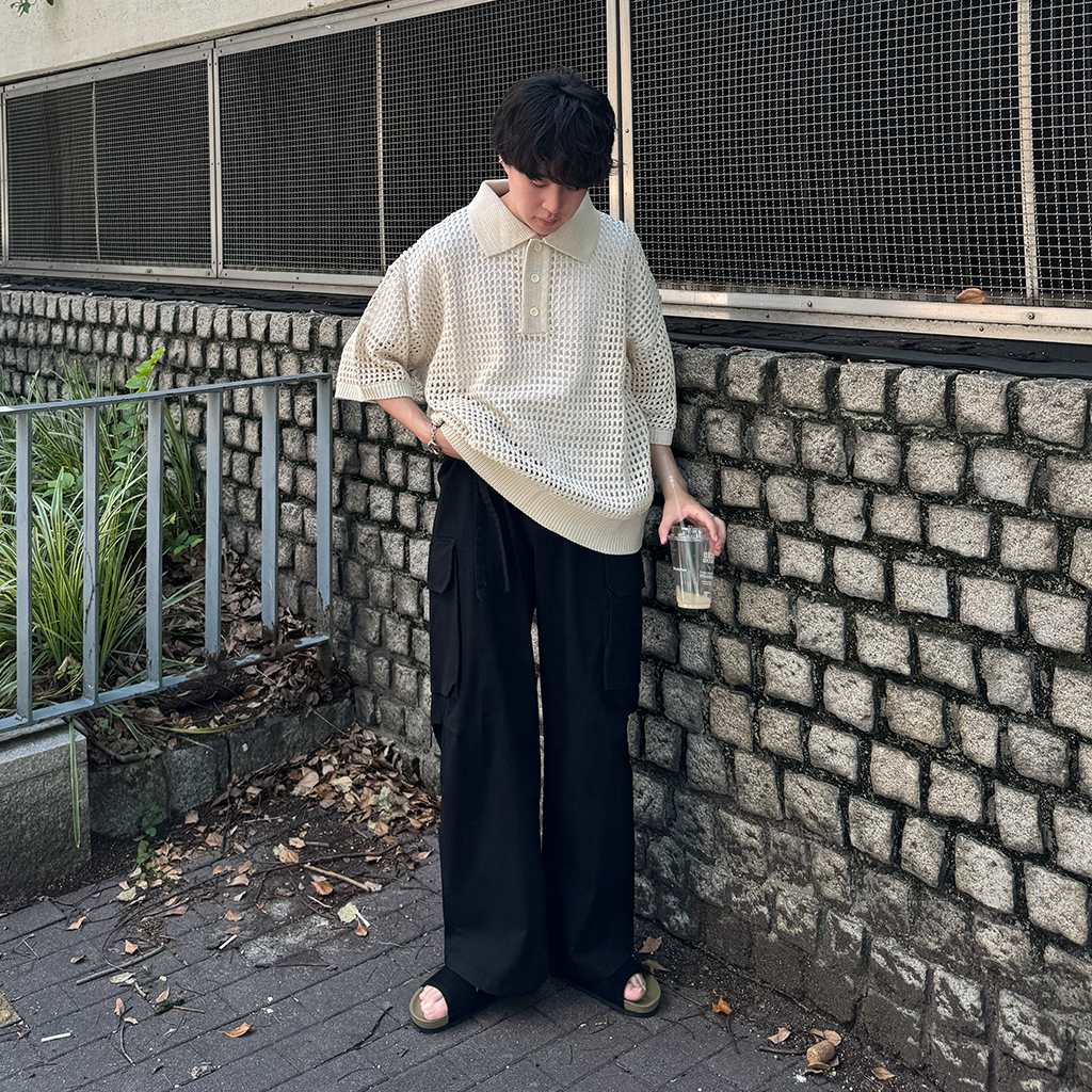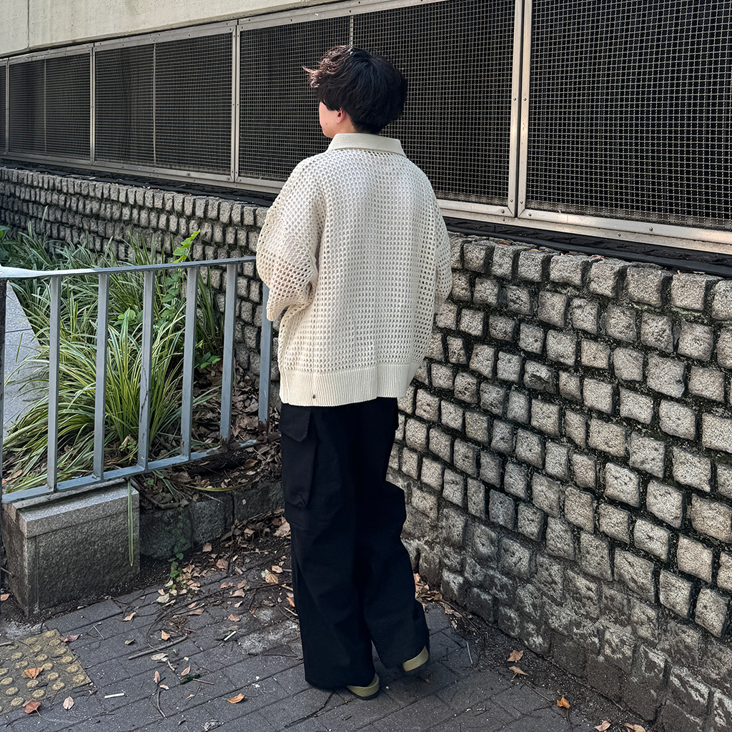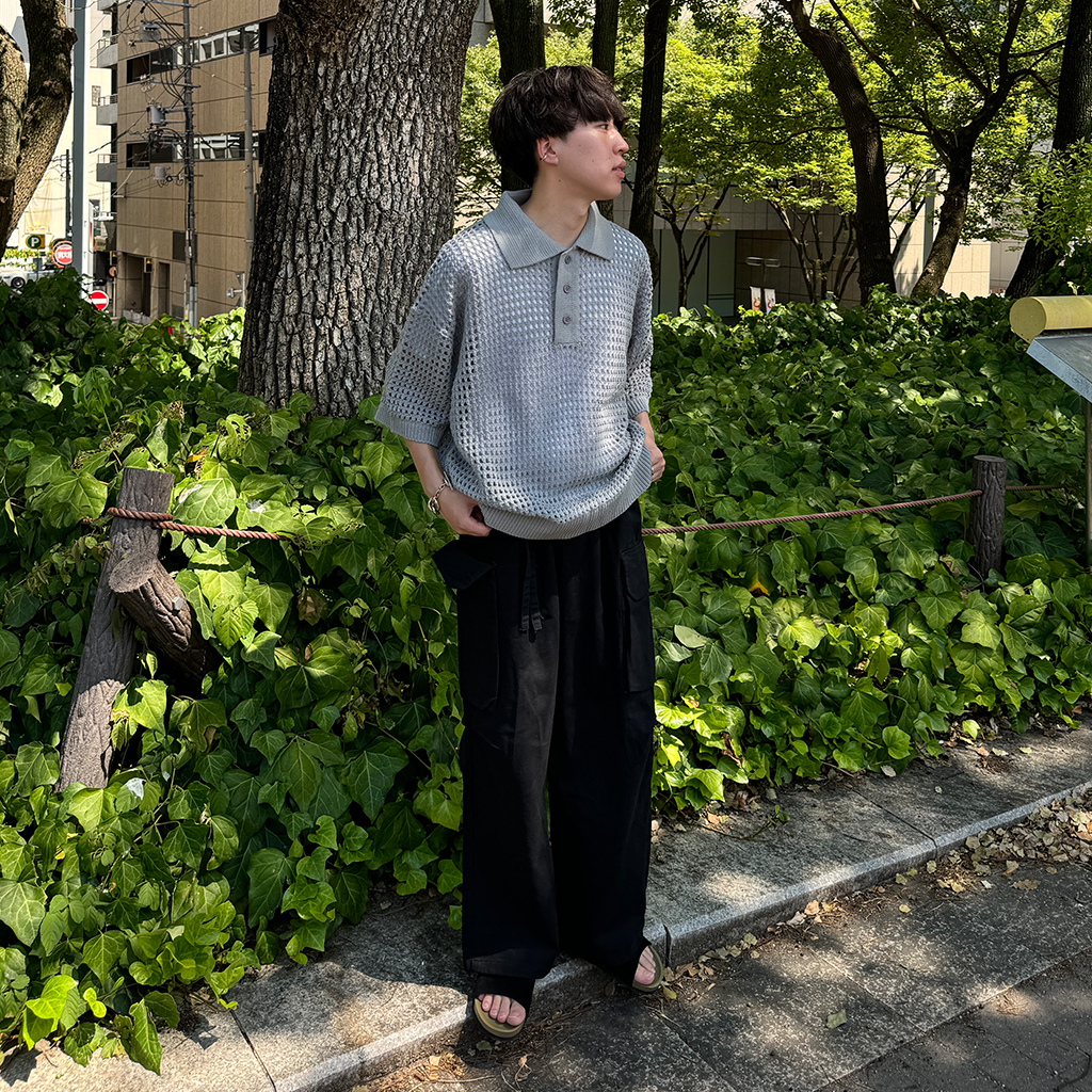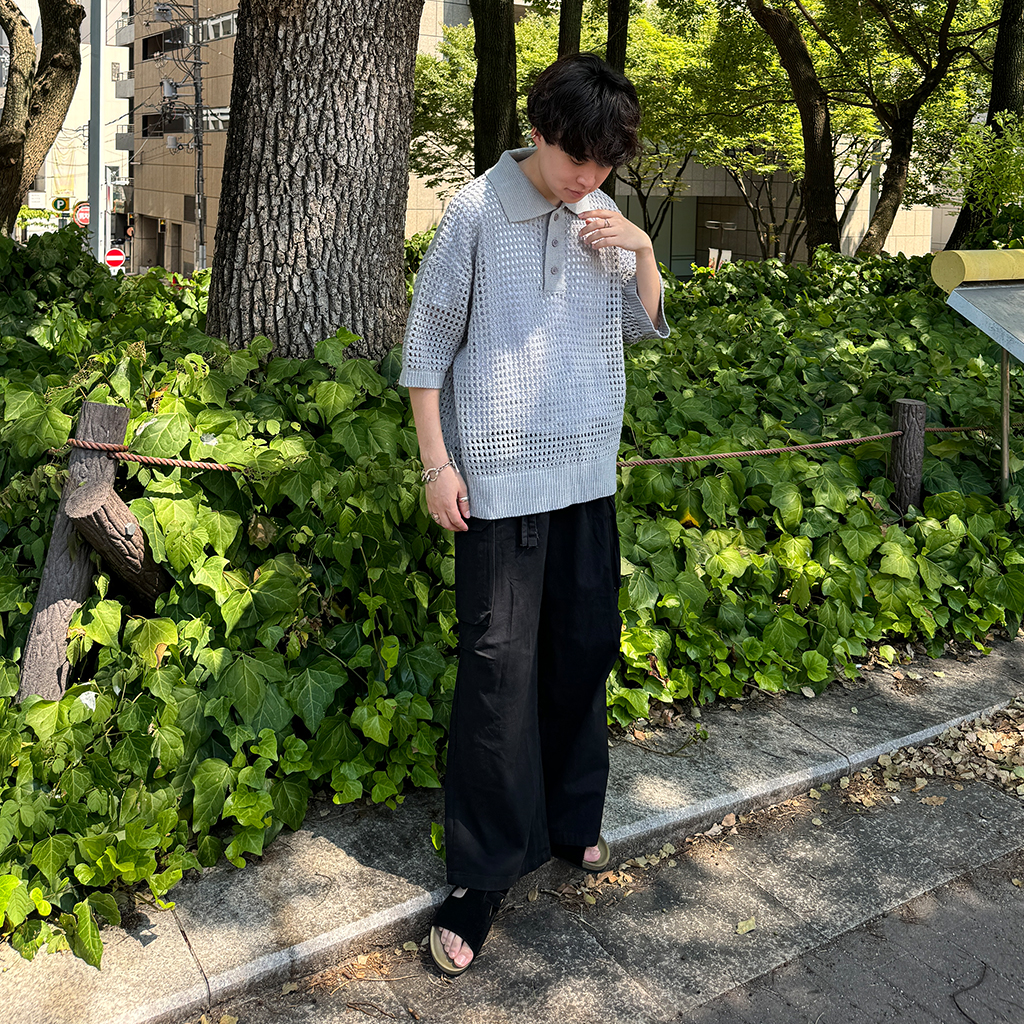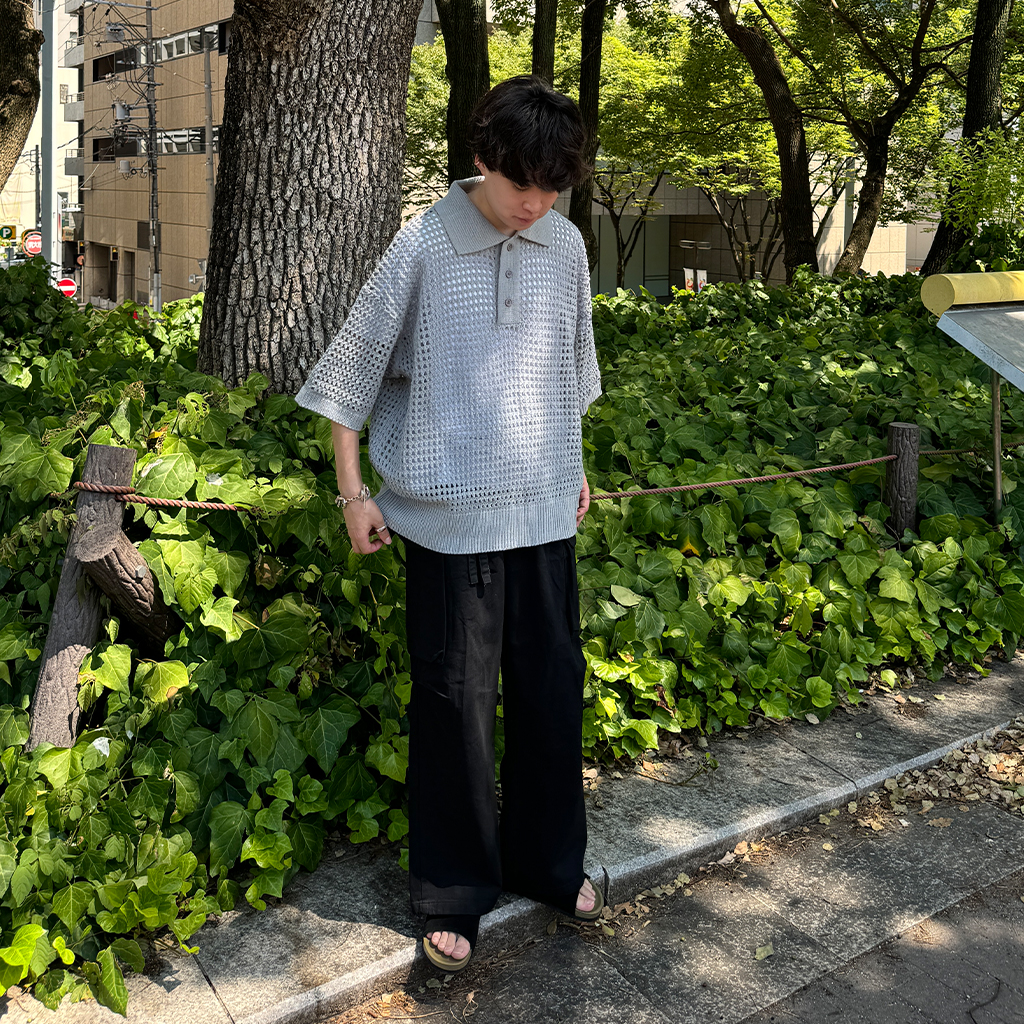 メッシュ半袖カラーニット