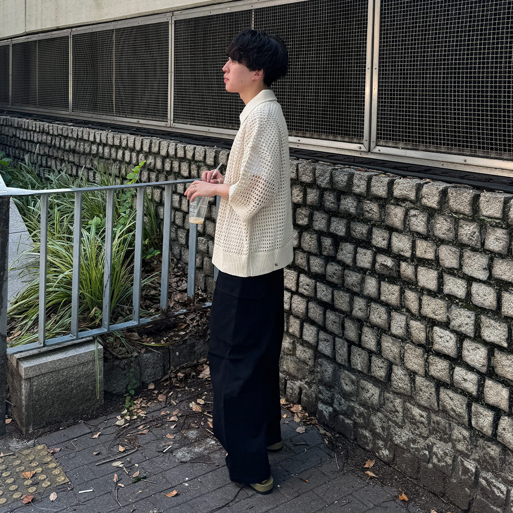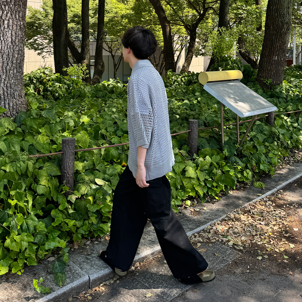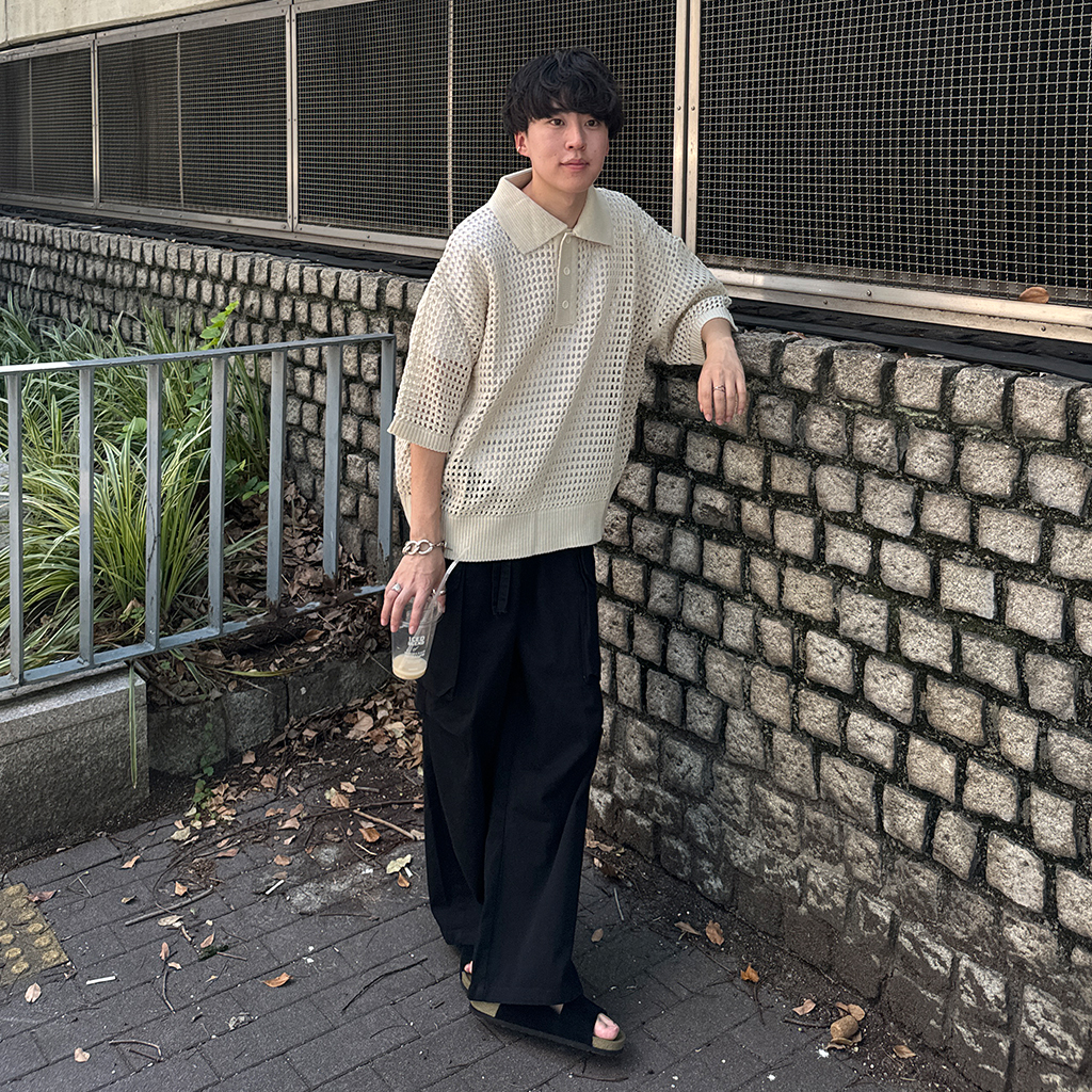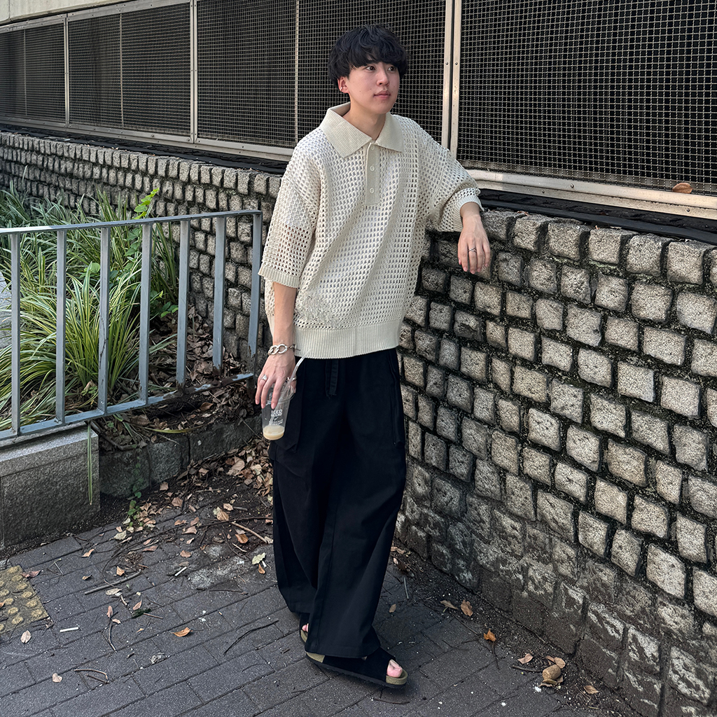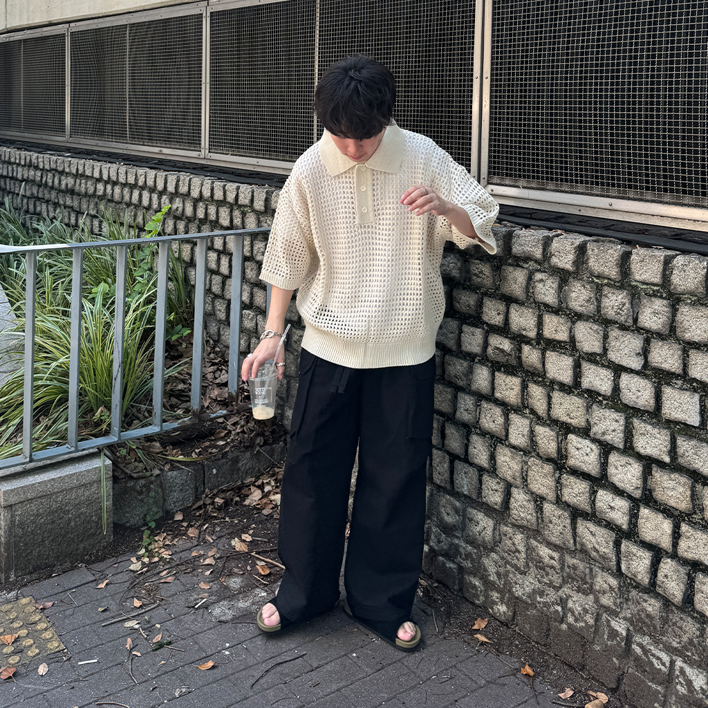 メッシュ半袖カラーニット