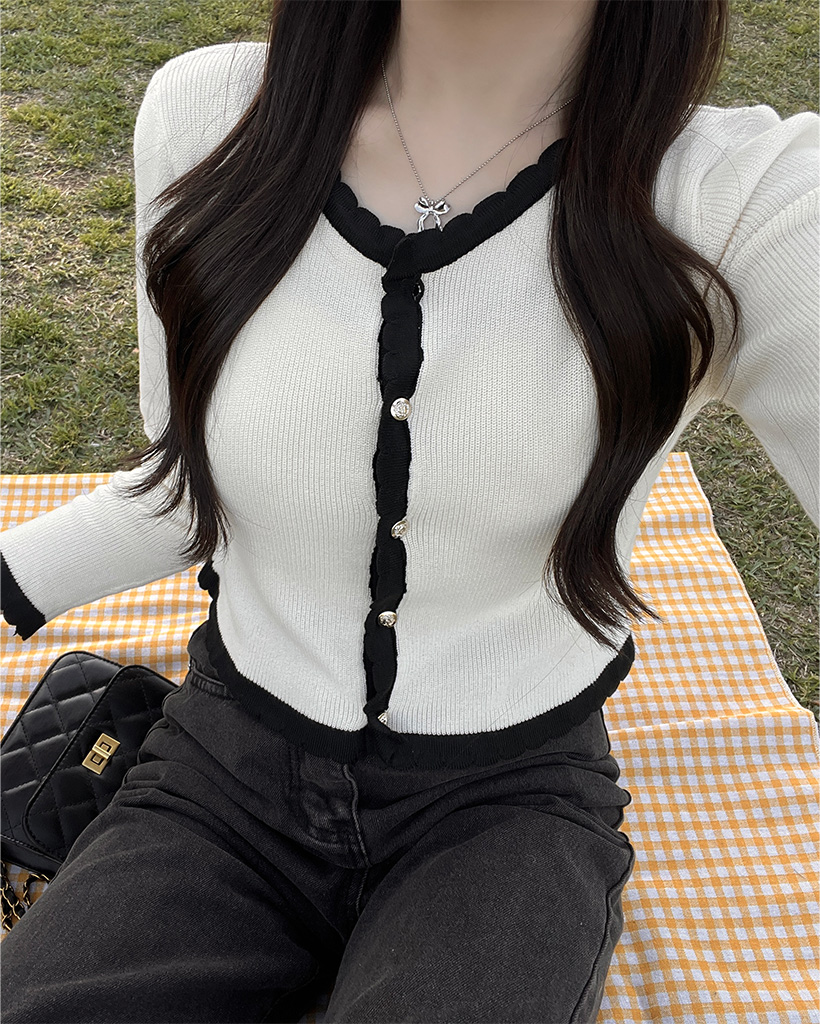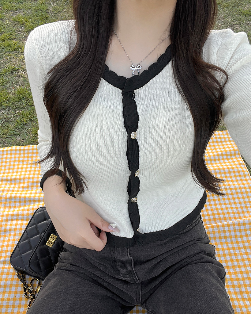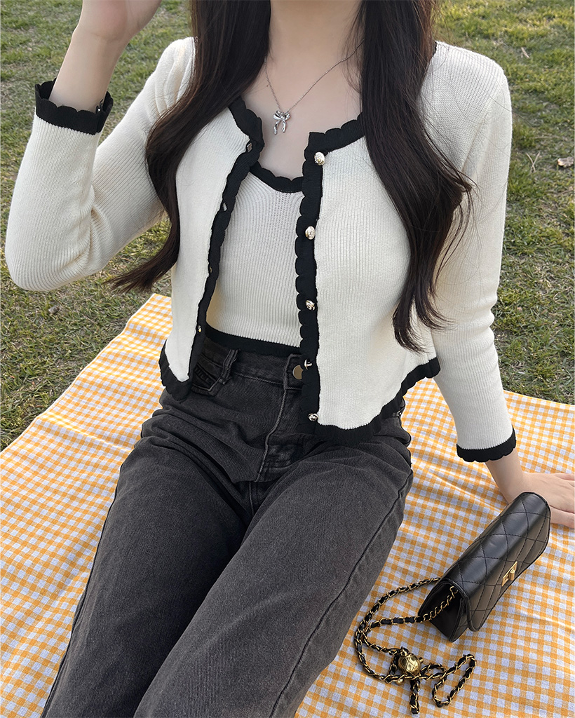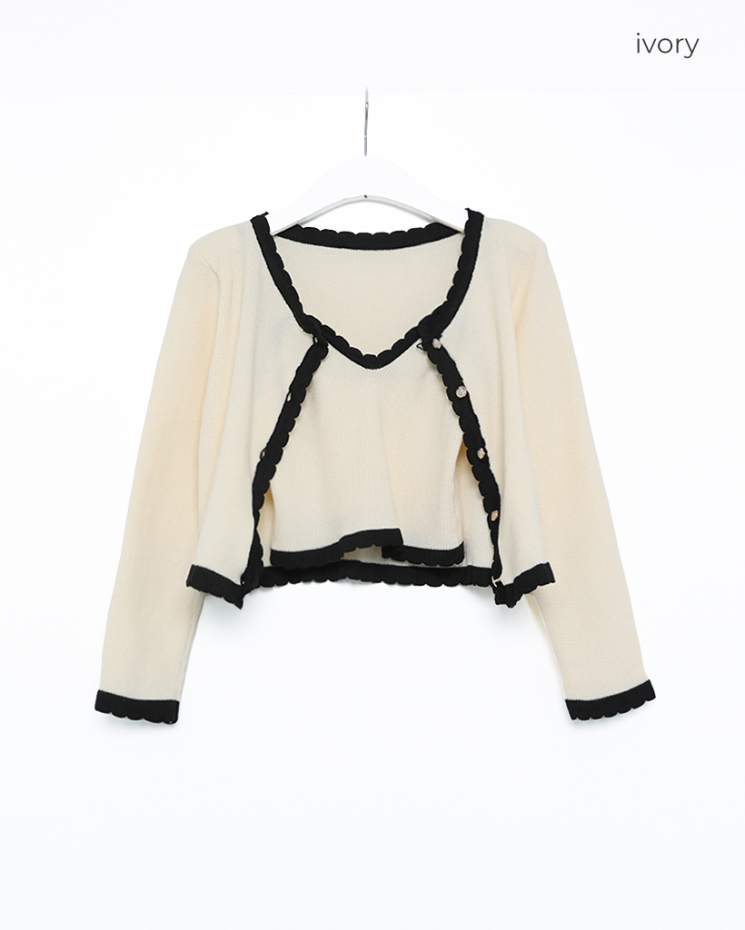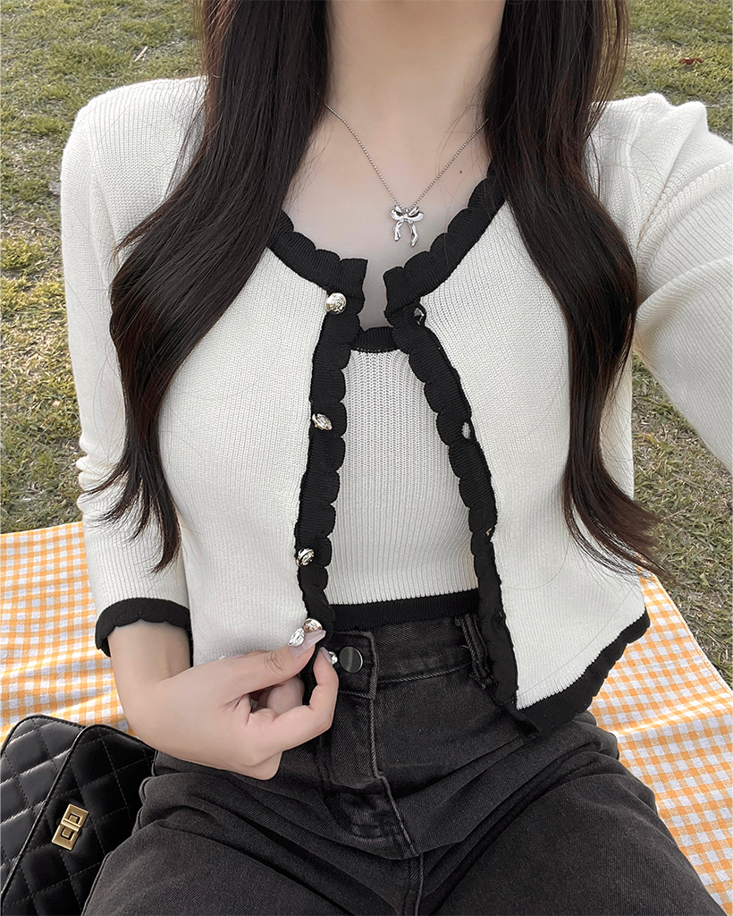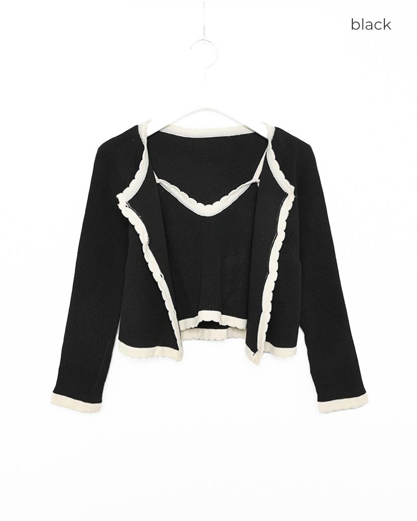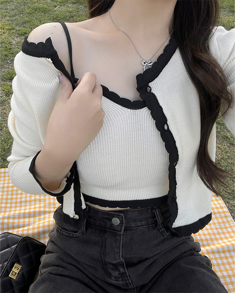 (セット)バイカラーラインスリーブレスカーディガン