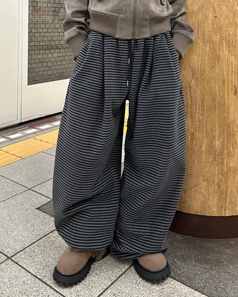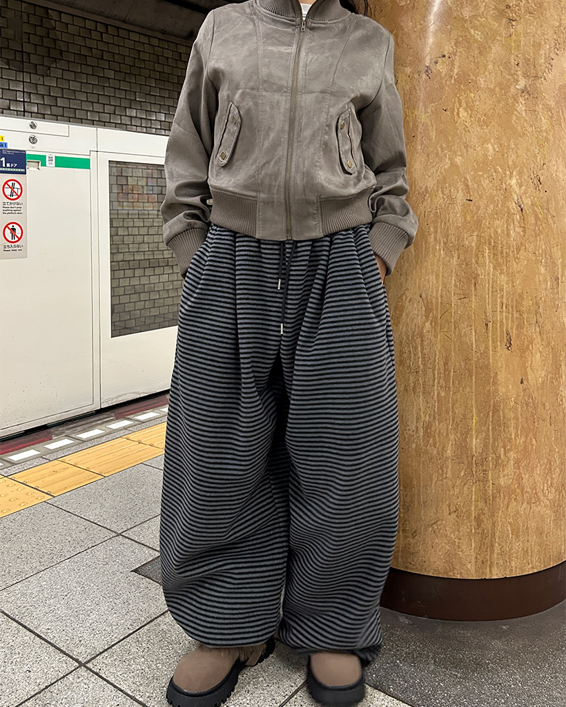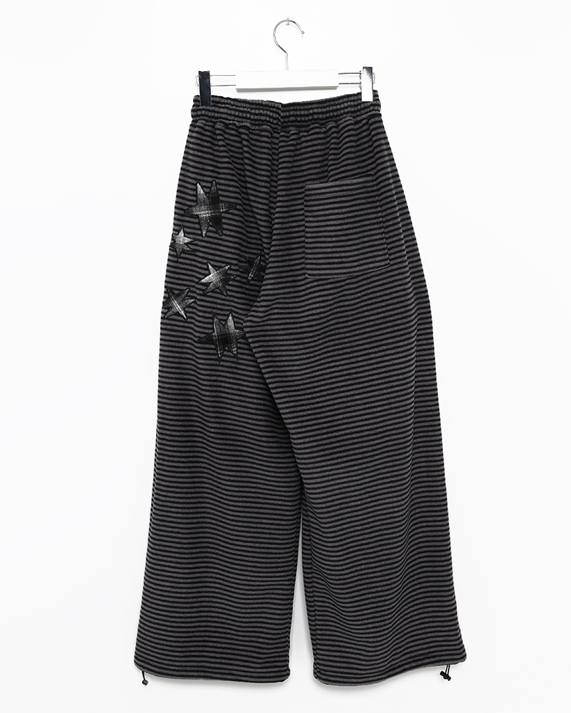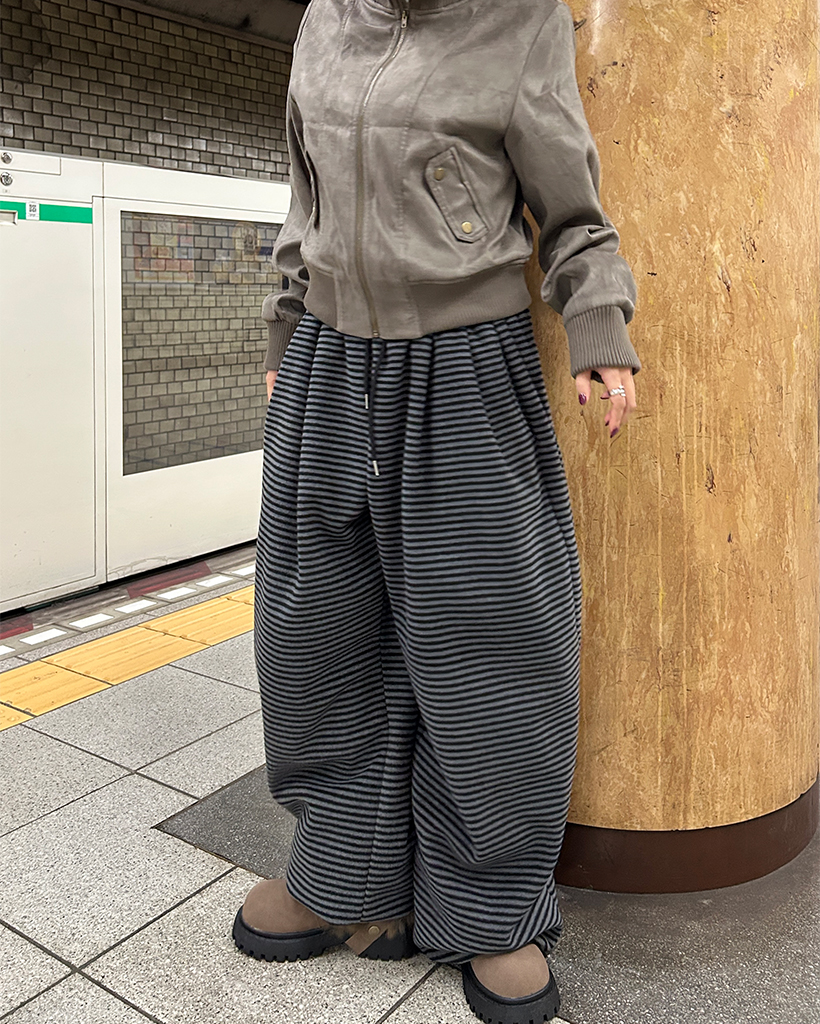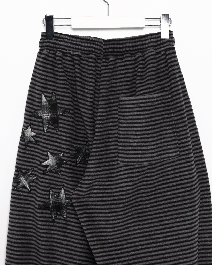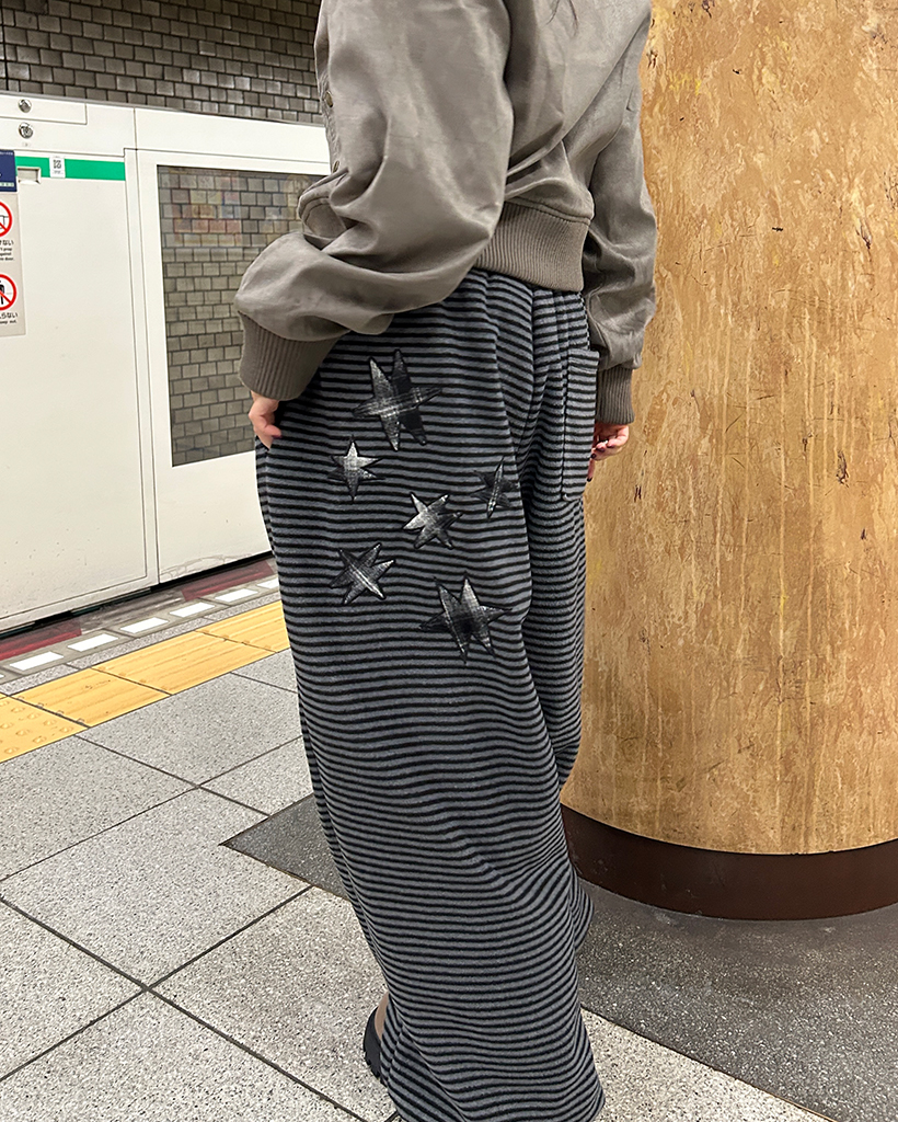 (ユニセックス)チェックパッチポイントボーダーフリースパンツ