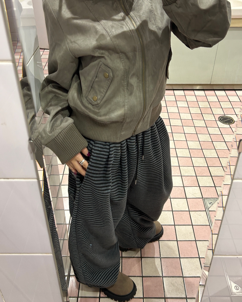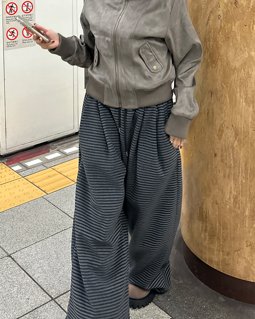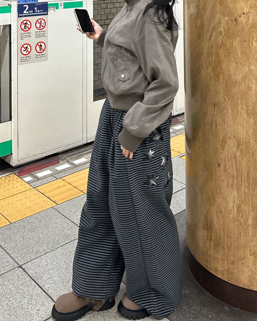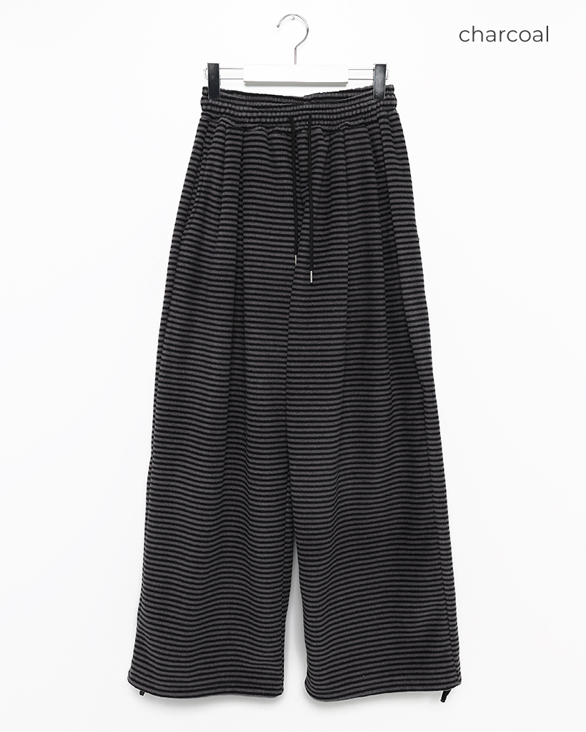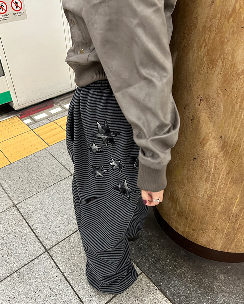 (ユニセックス)チェックパッチポイントボーダーフリースパンツ