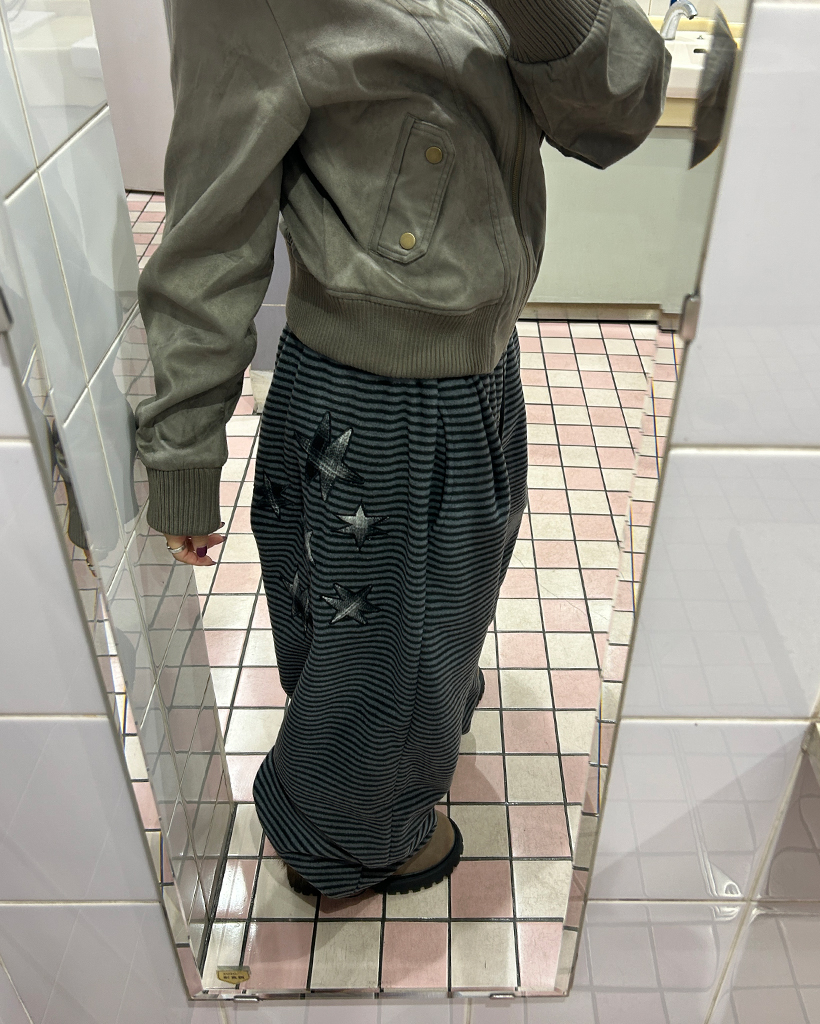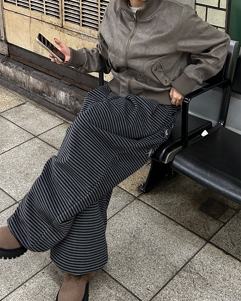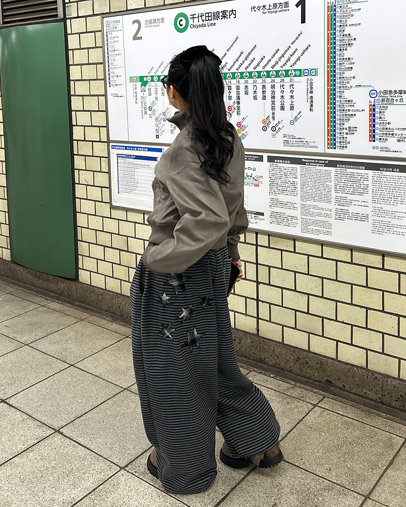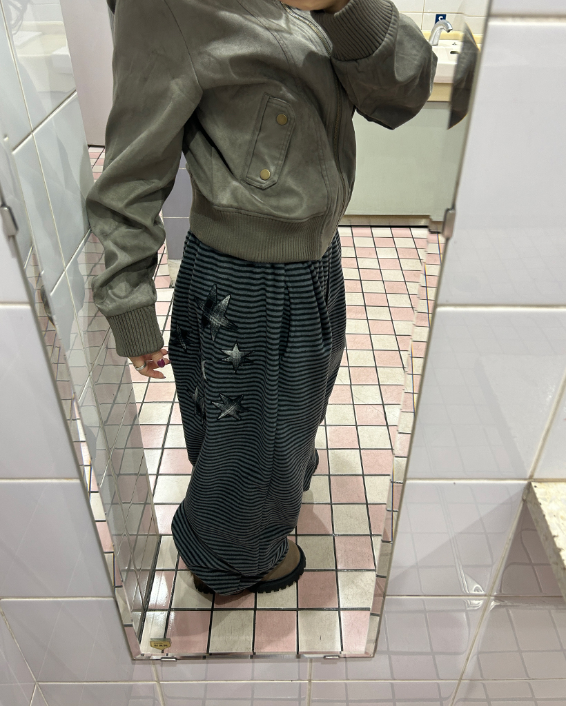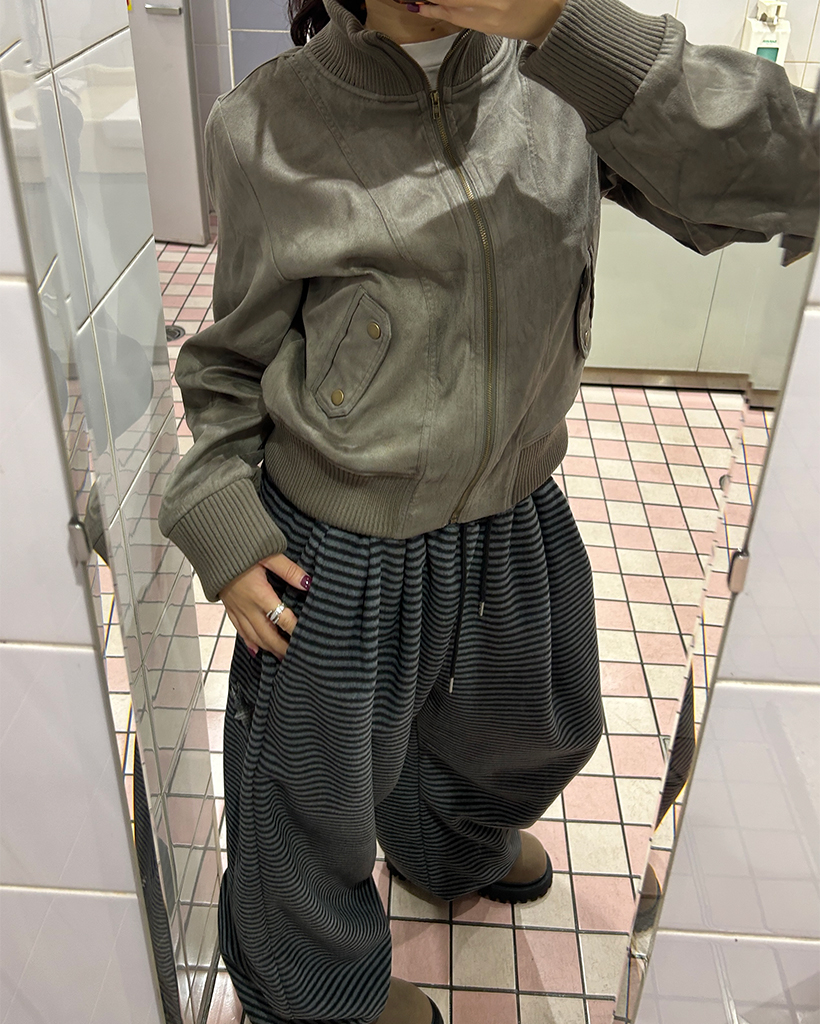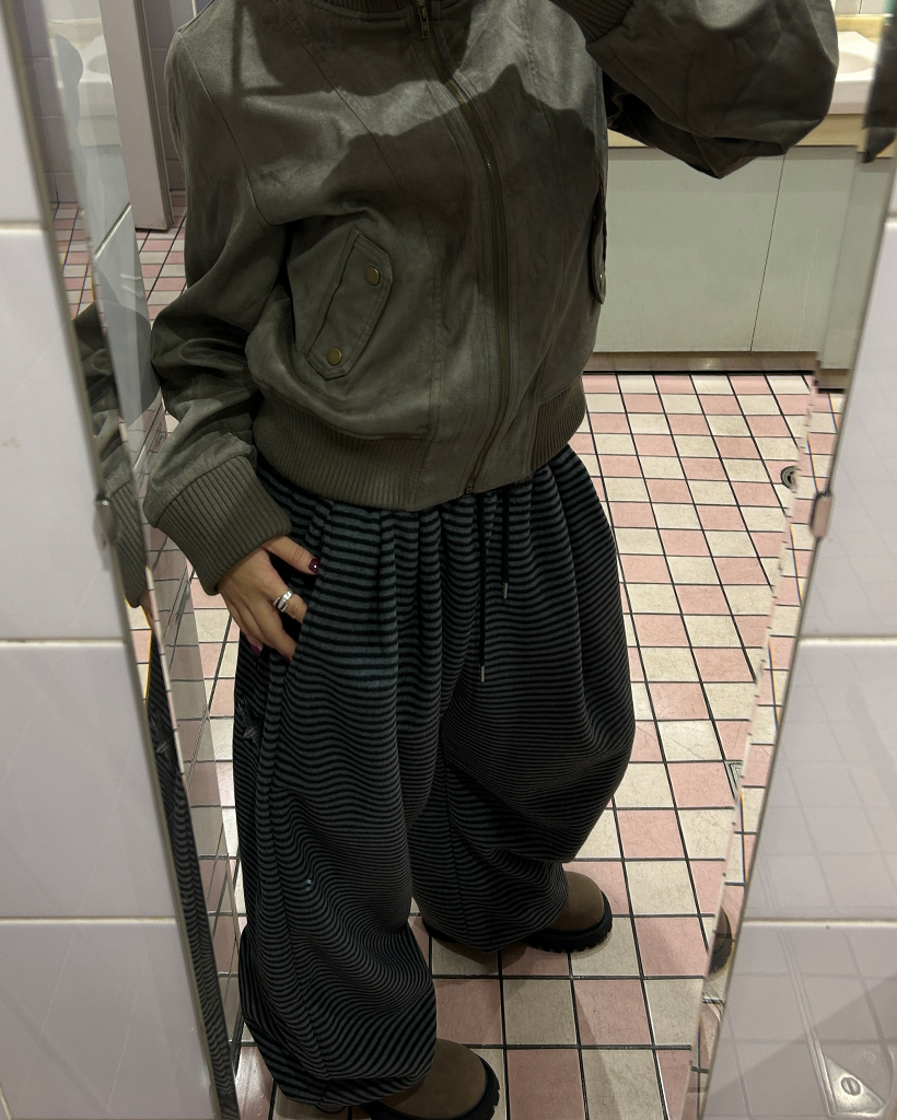 (ユニセックス)チェックパッチポイントボーダーフリースパンツ