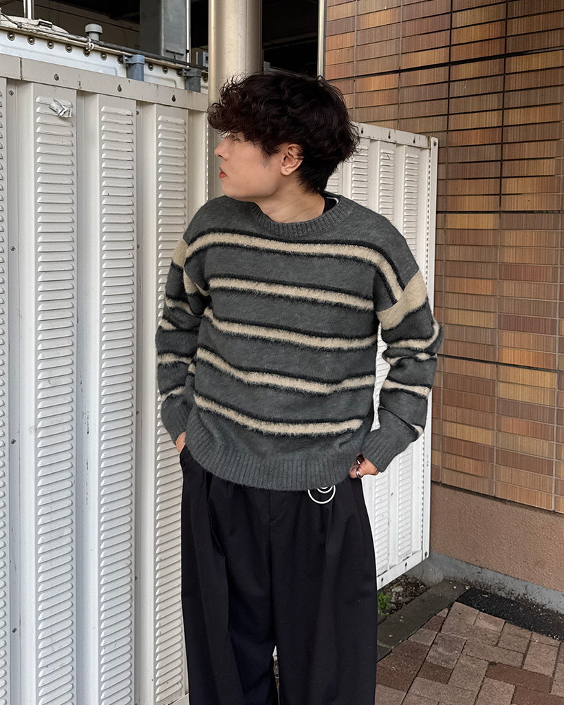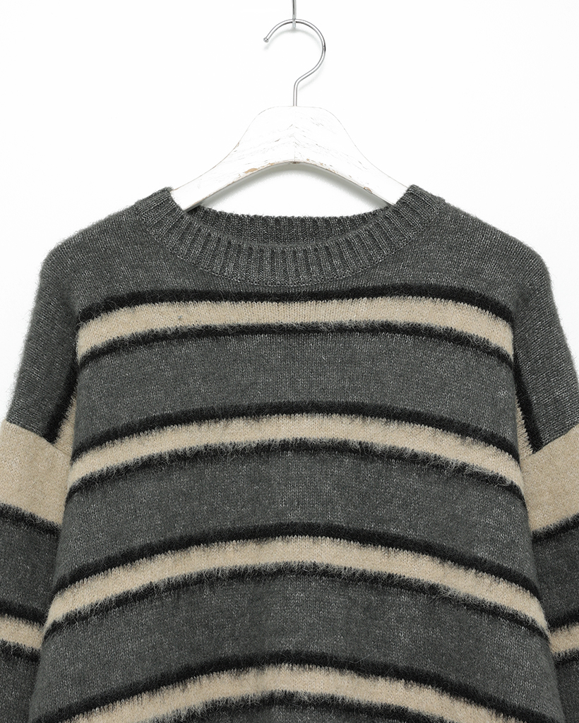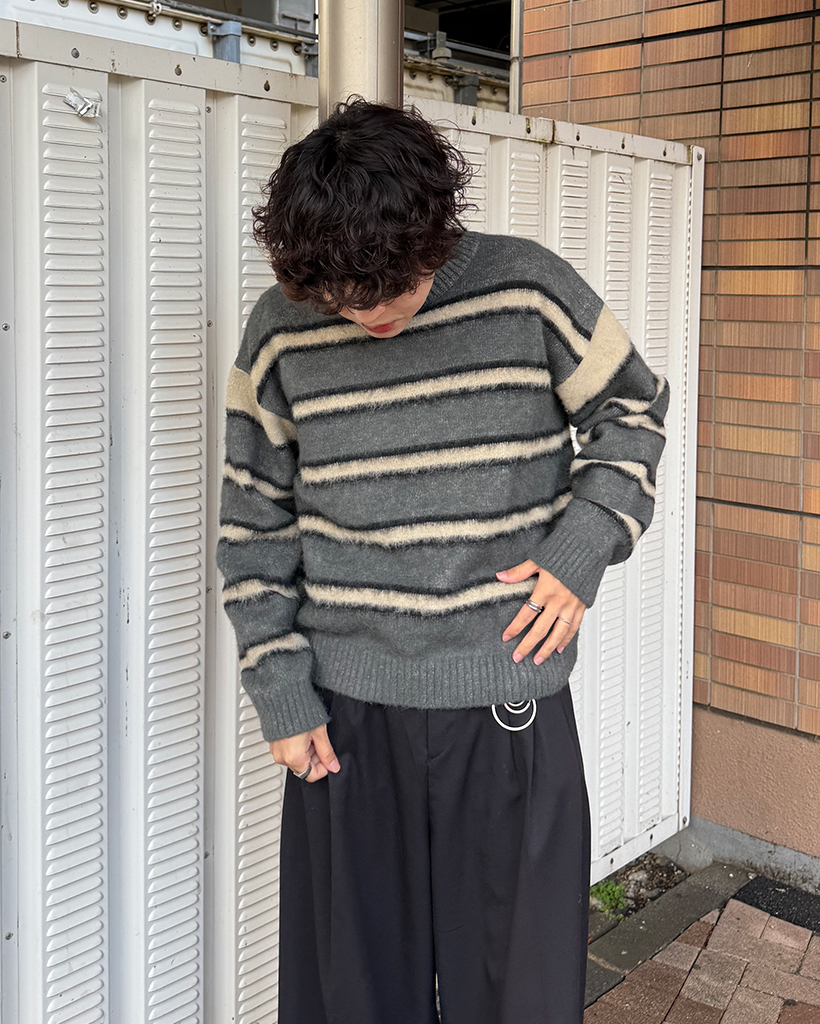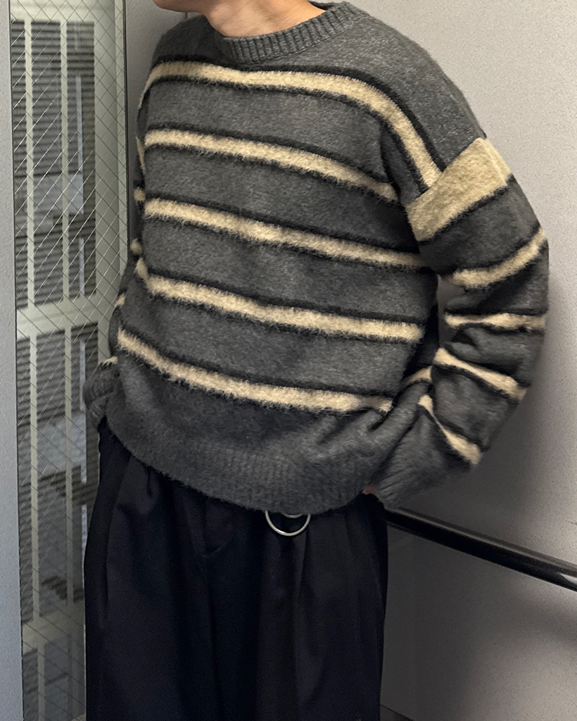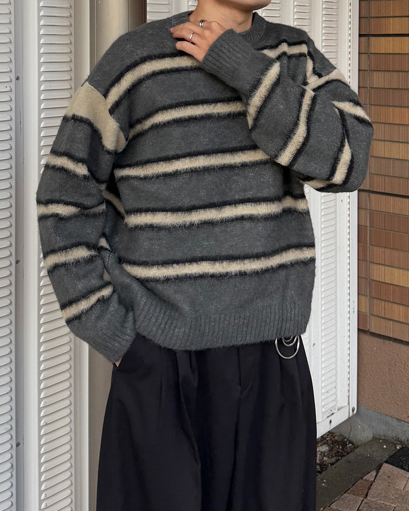 (ユニセックス)ダブルボーダーヘアリーニットセーター