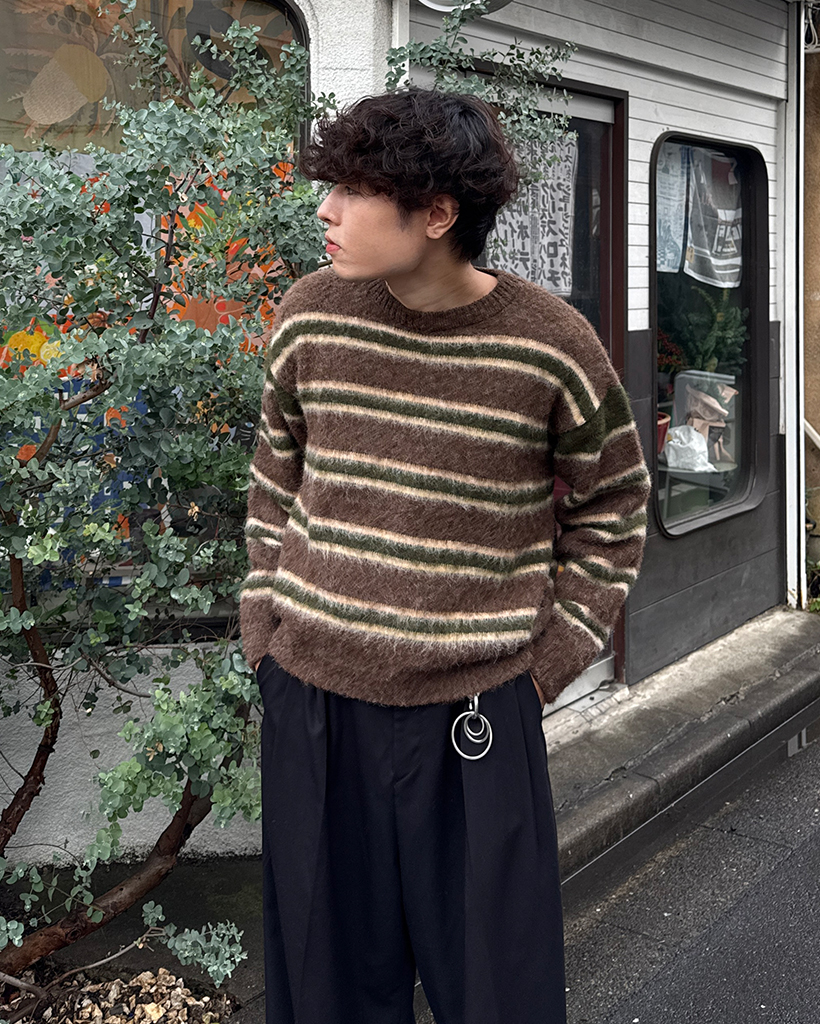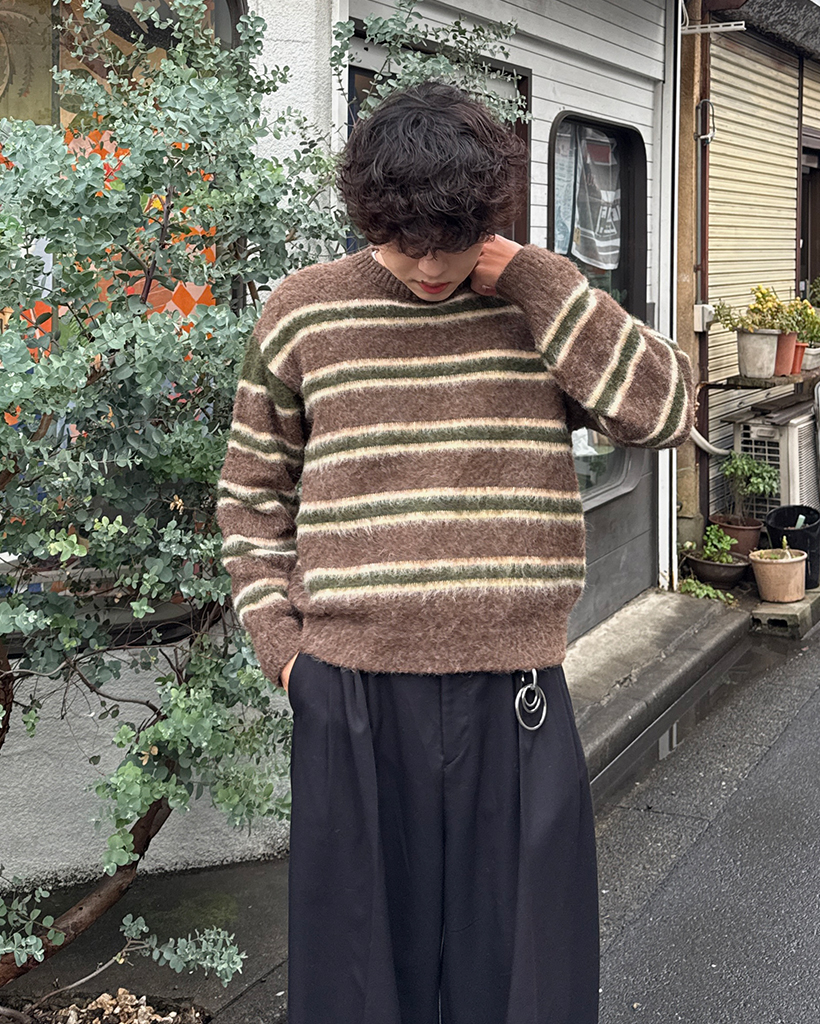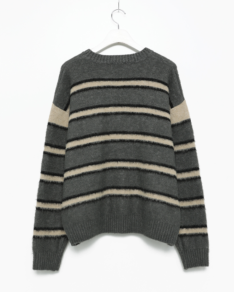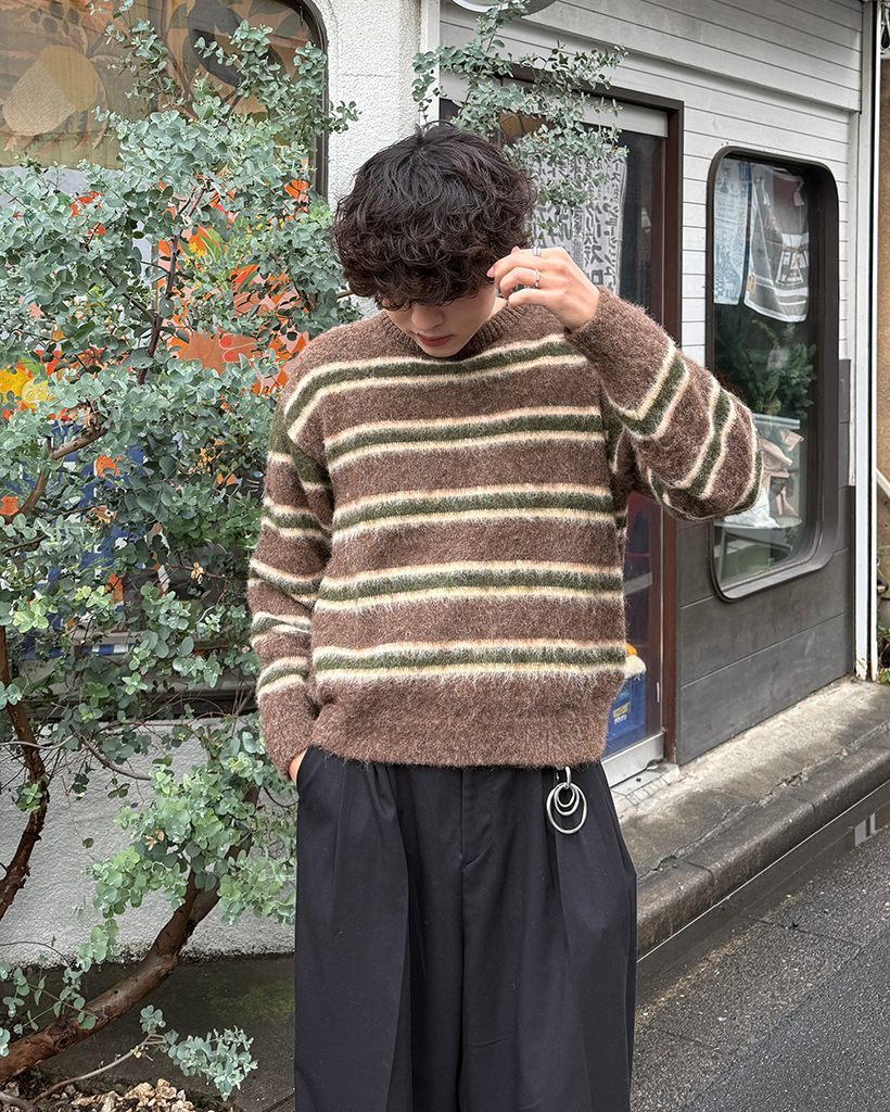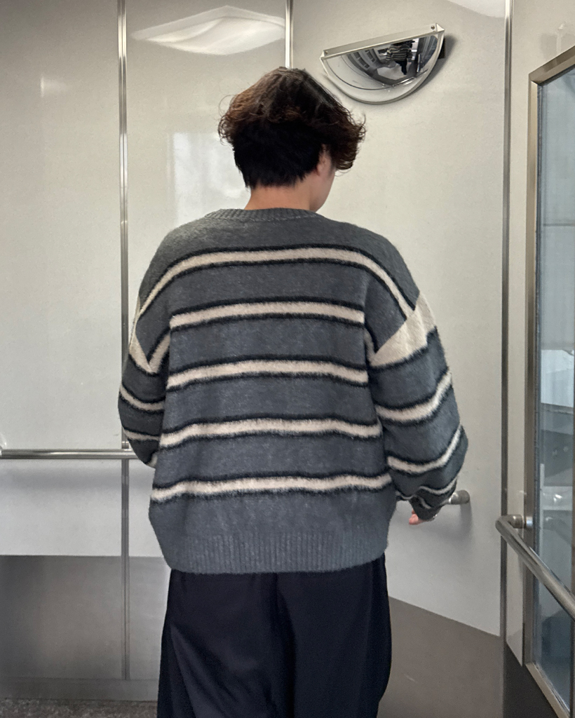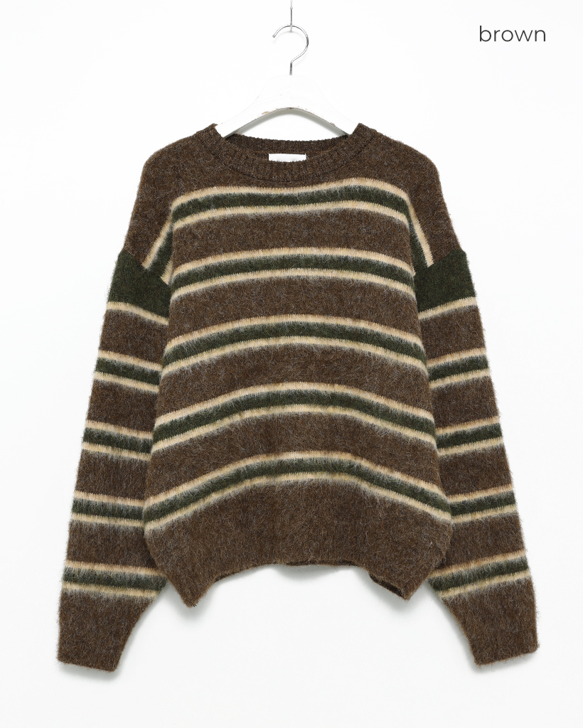 (ユニセックス)ダブルボーダーヘアリーニットセーター