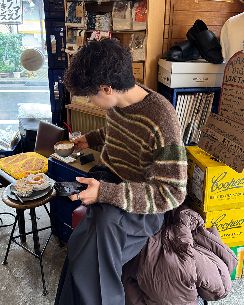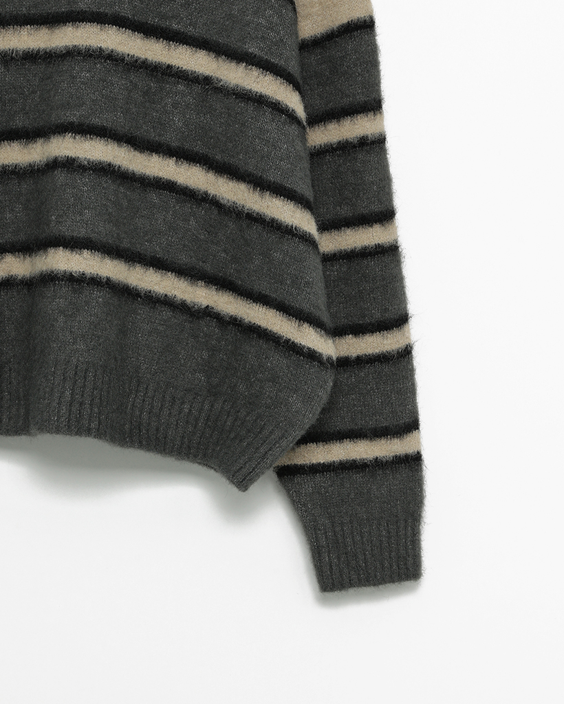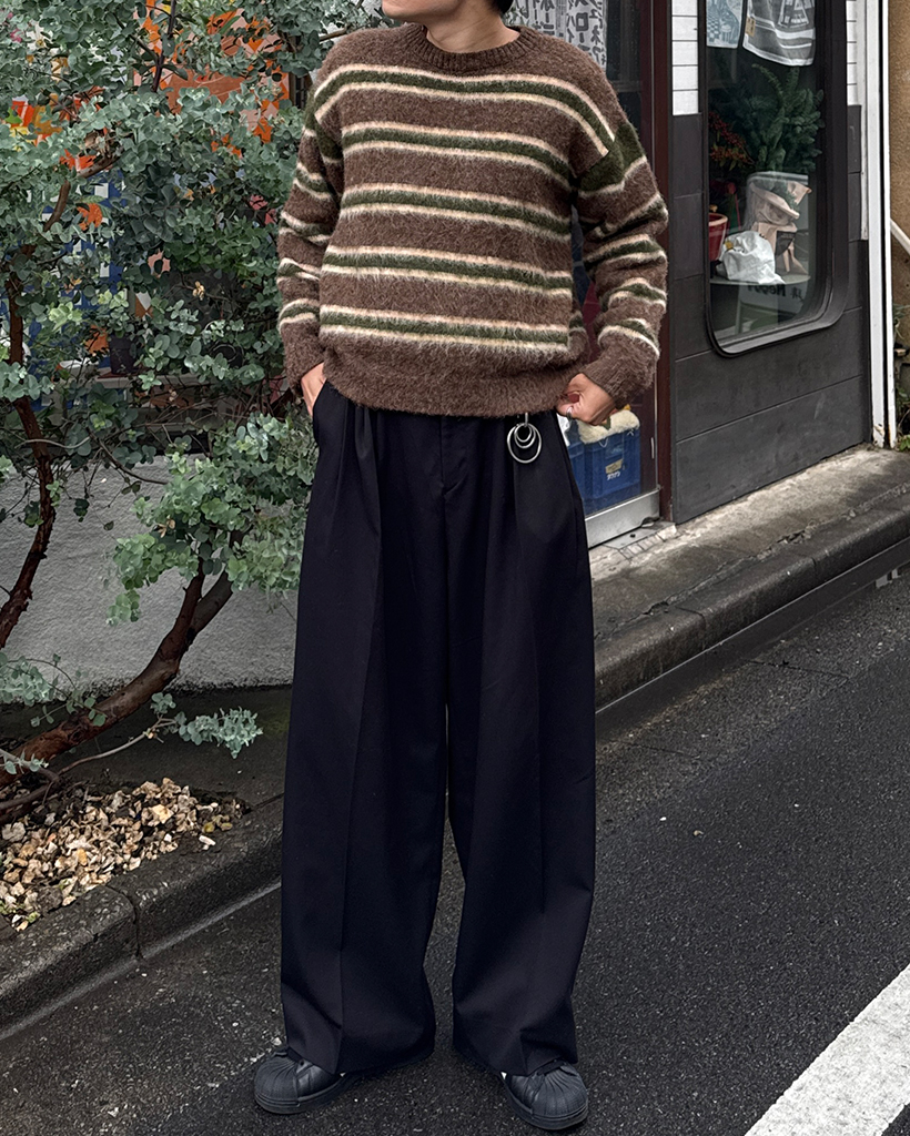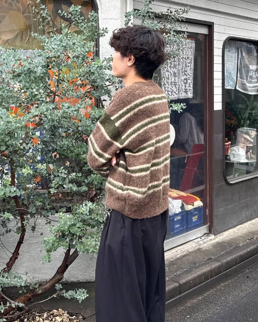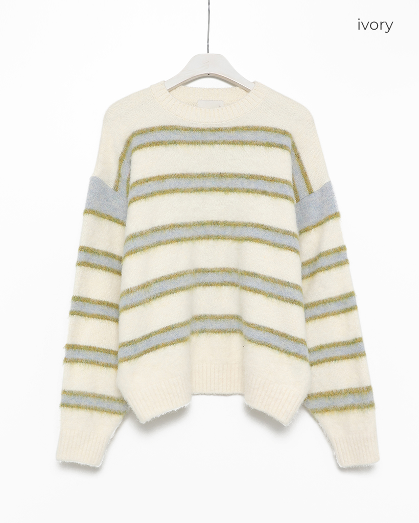 (ユニセックス)ダブルボーダーヘアリーニットセーター