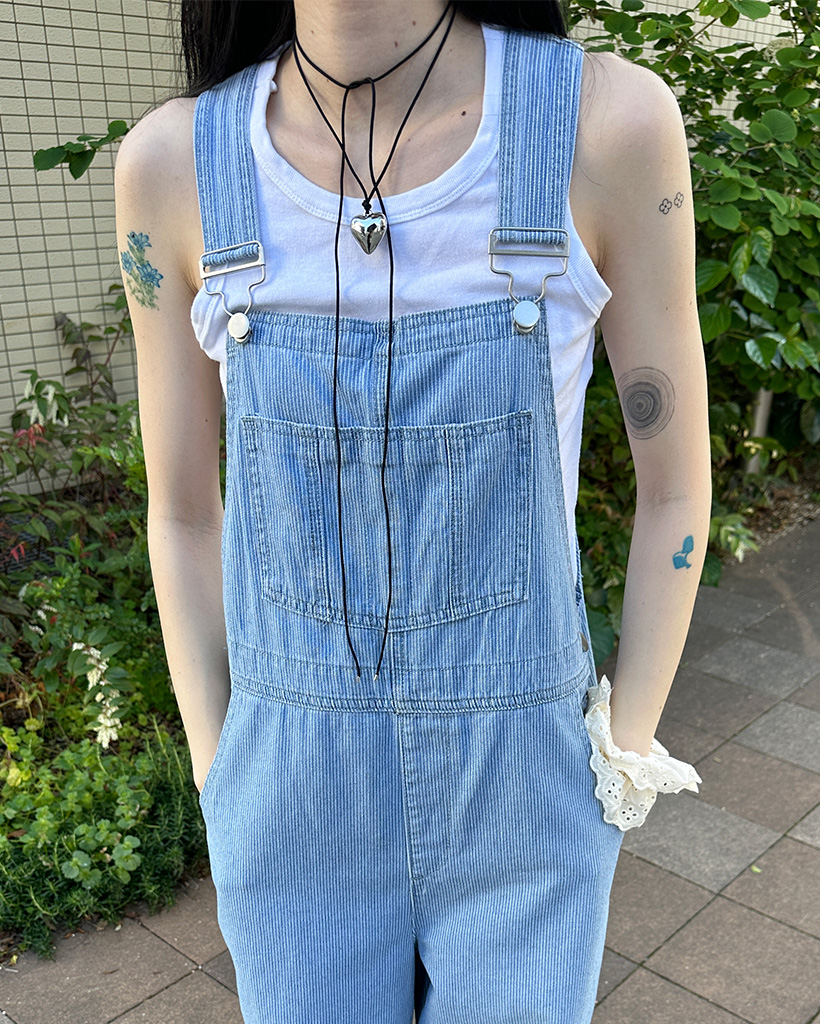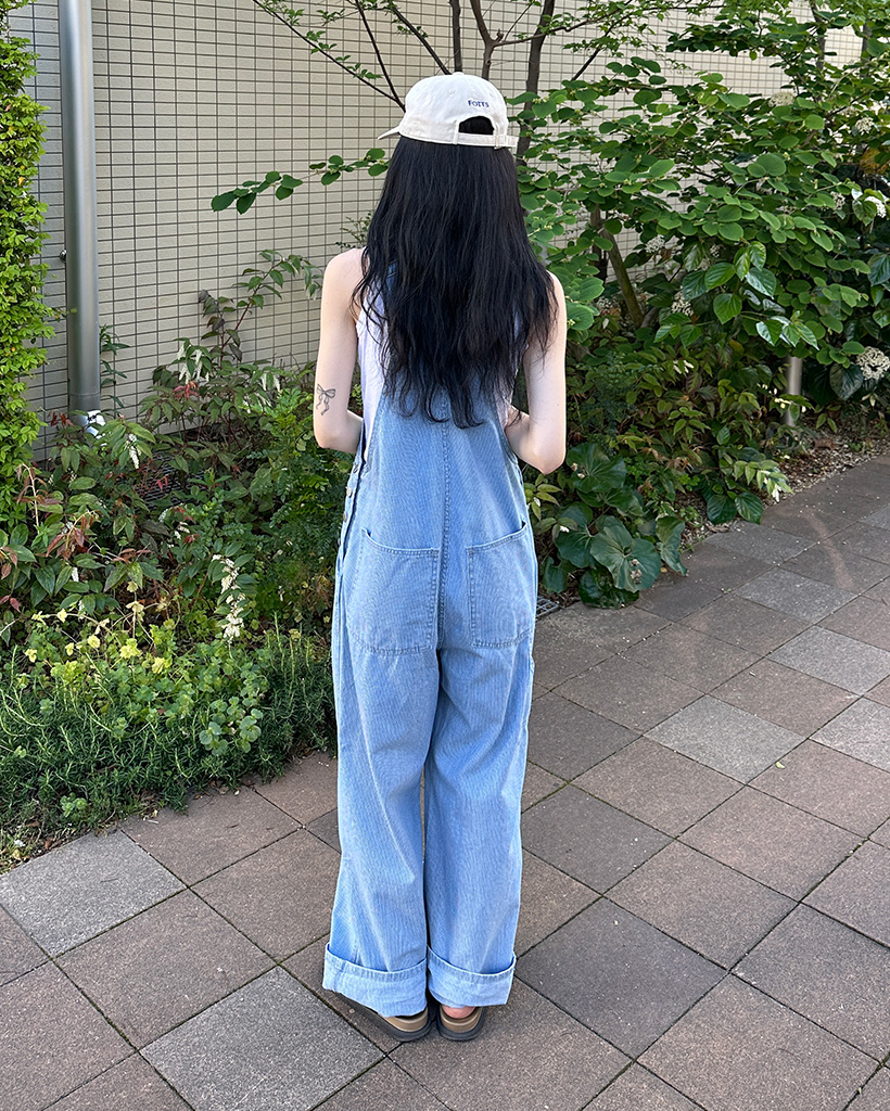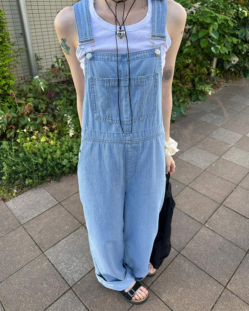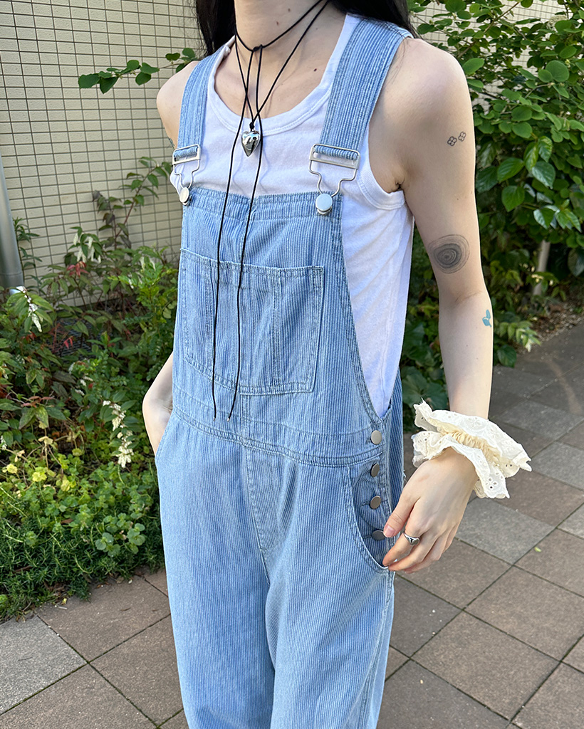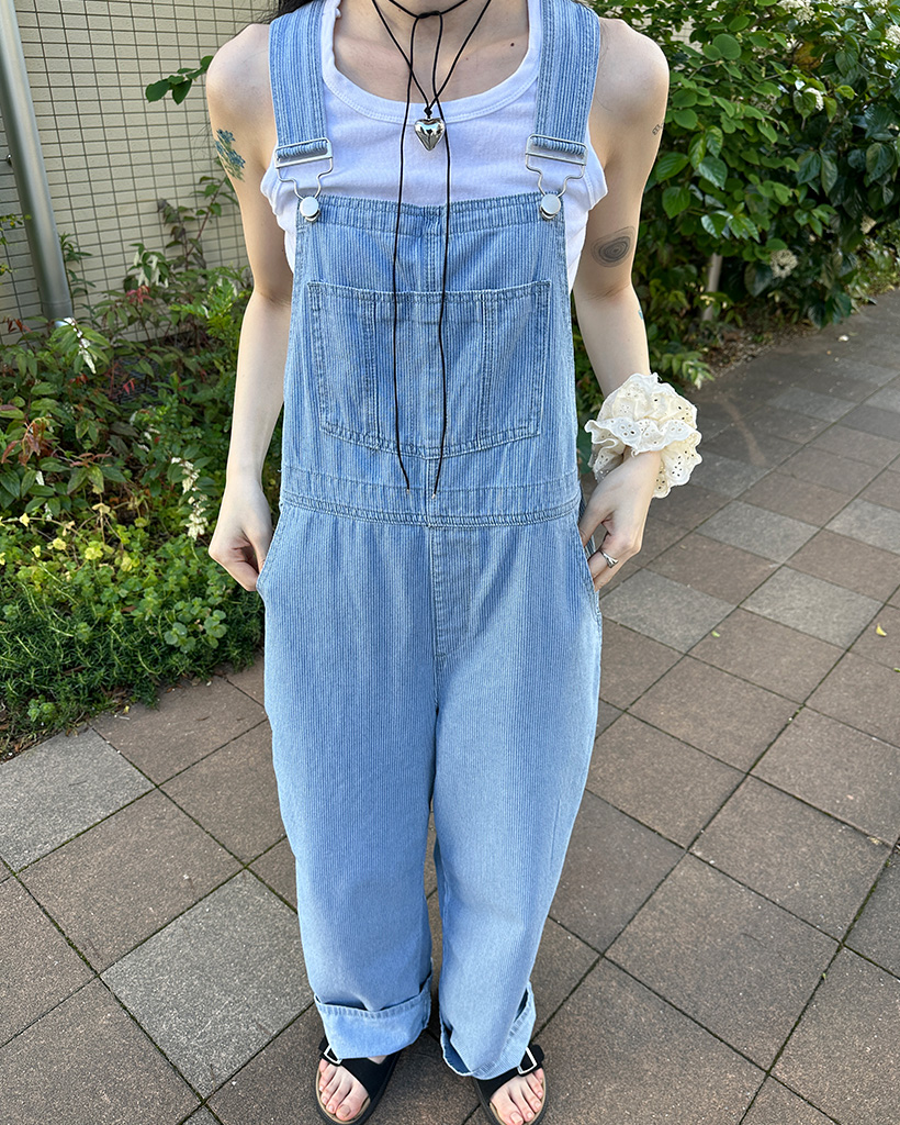 ストライプデニムサスペンダーパンツ