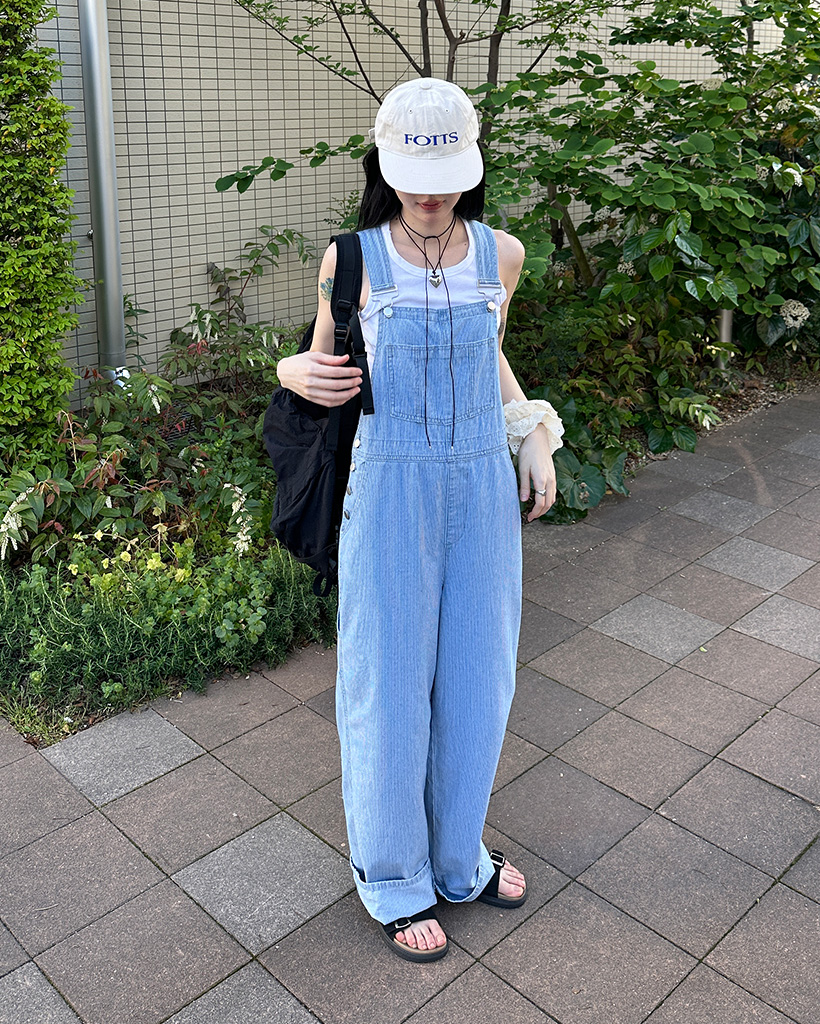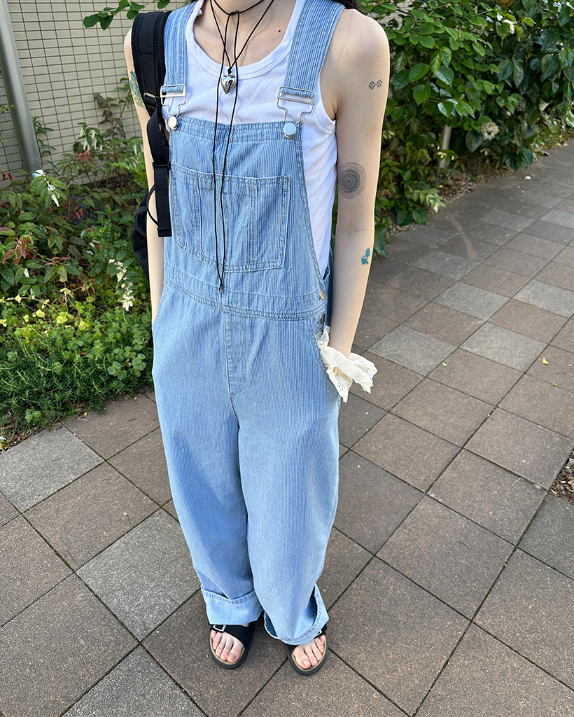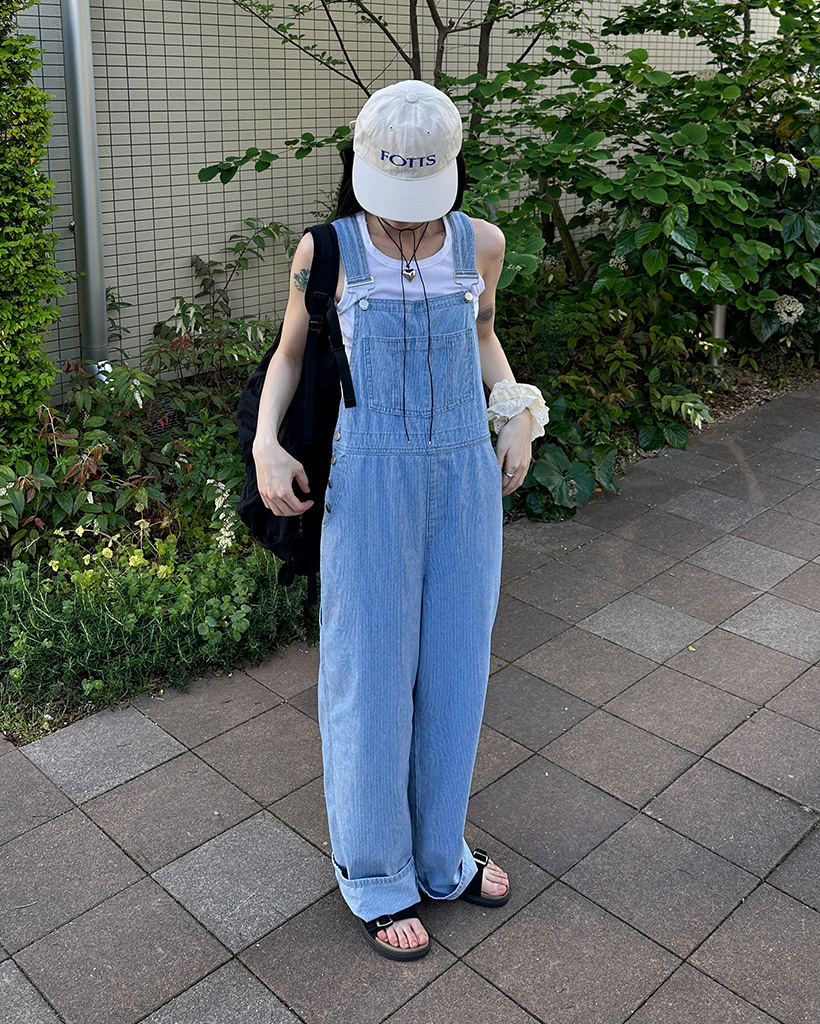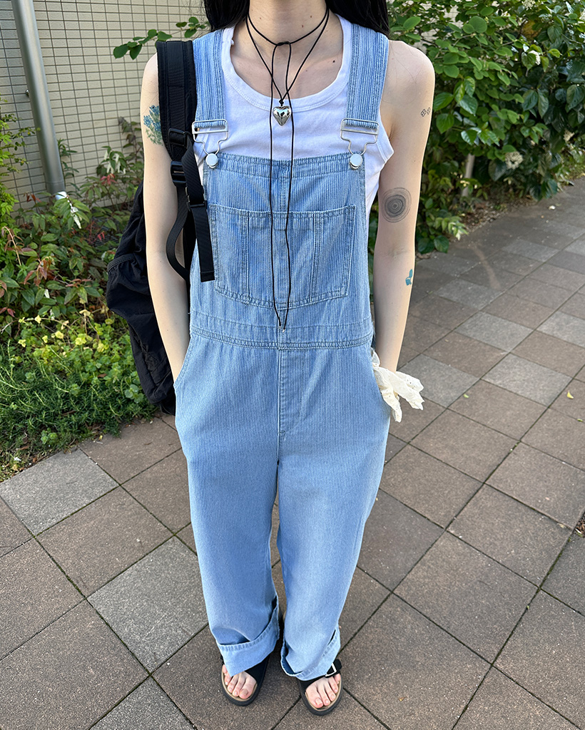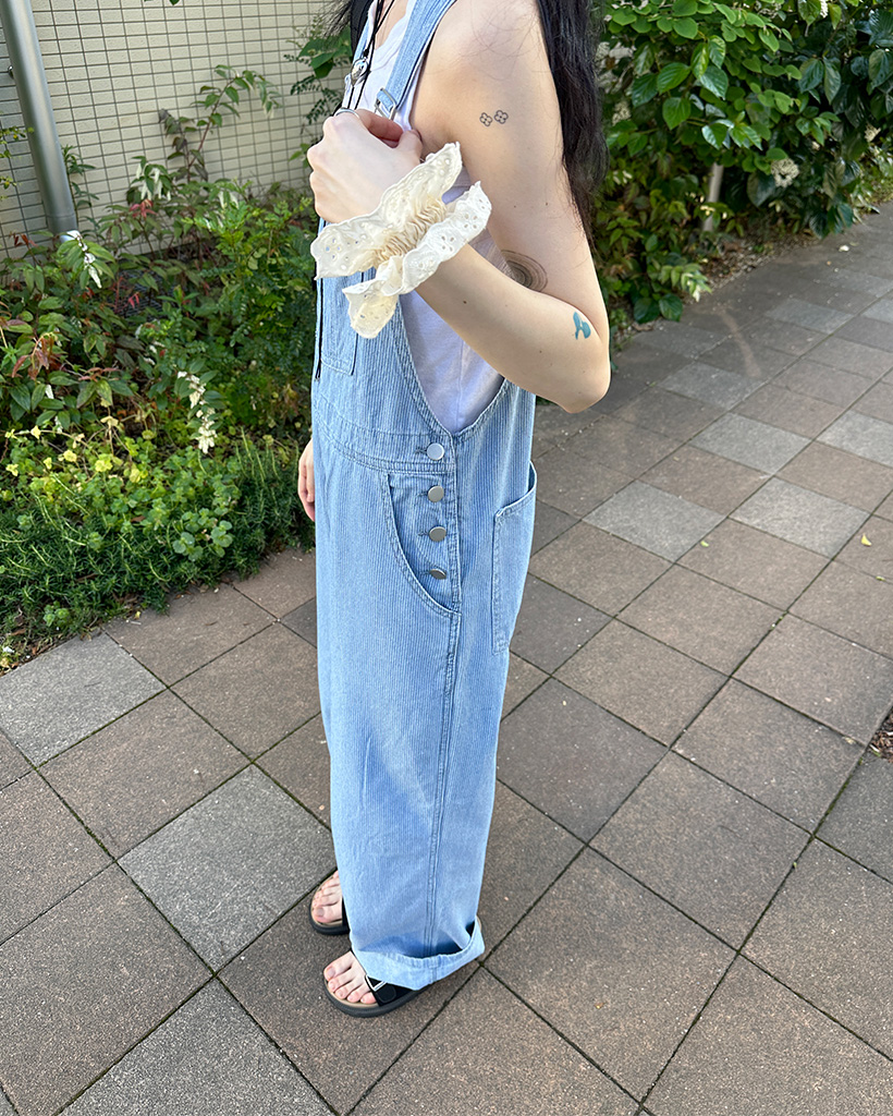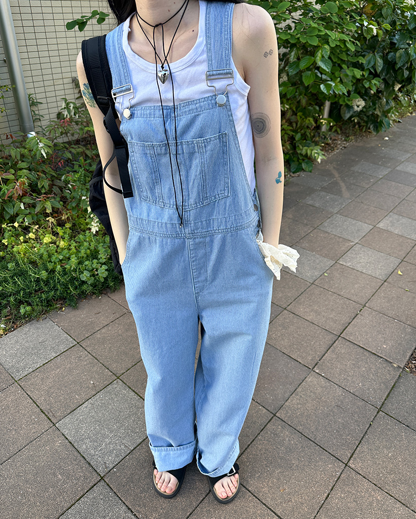 ストライプデニムサスペンダーパンツ