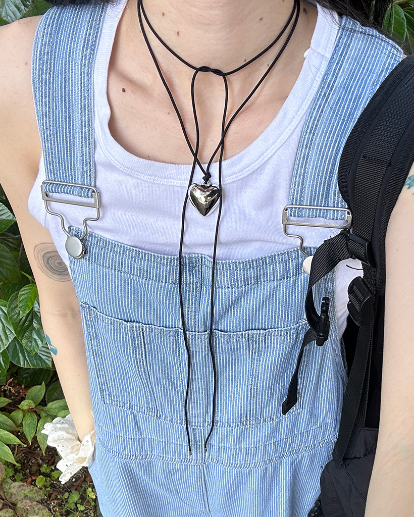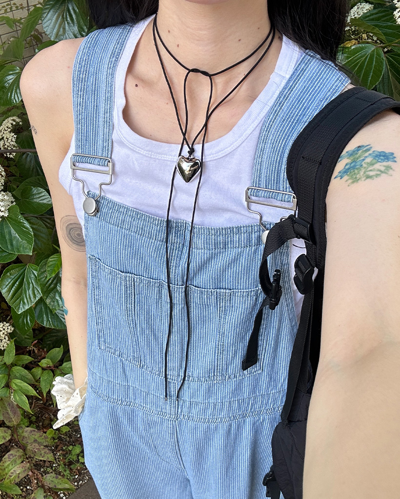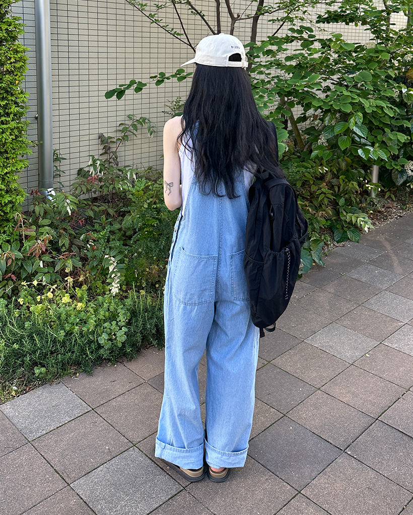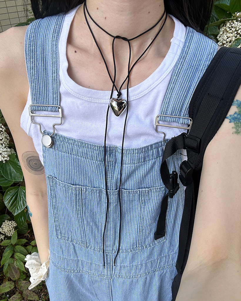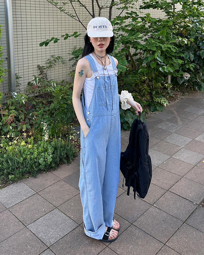 ストライプデニムサスペンダーパンツ
