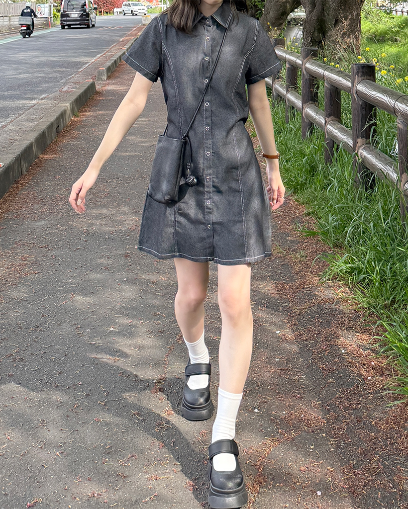 シャツデニムワンピース