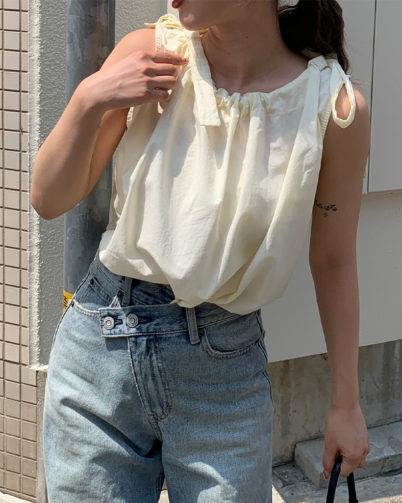 ネックラインリボンショルーブラウス