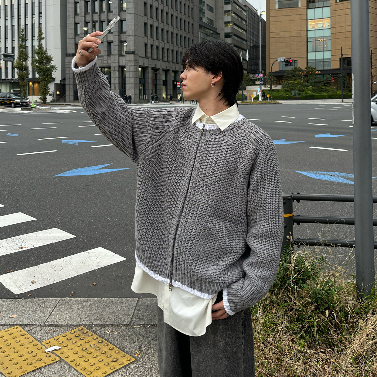(ユニセックス) ヘビージップアップニットカーディガン