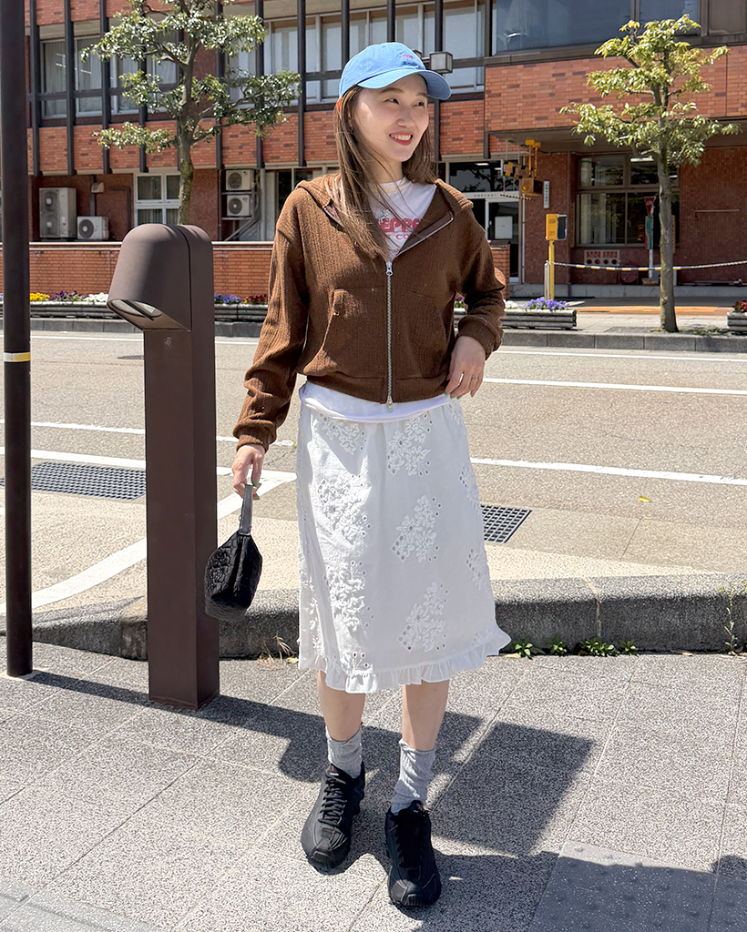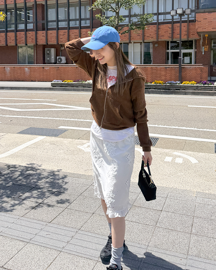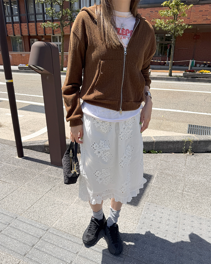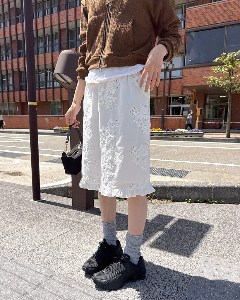 フラワーパンチングフリルミディスカート
