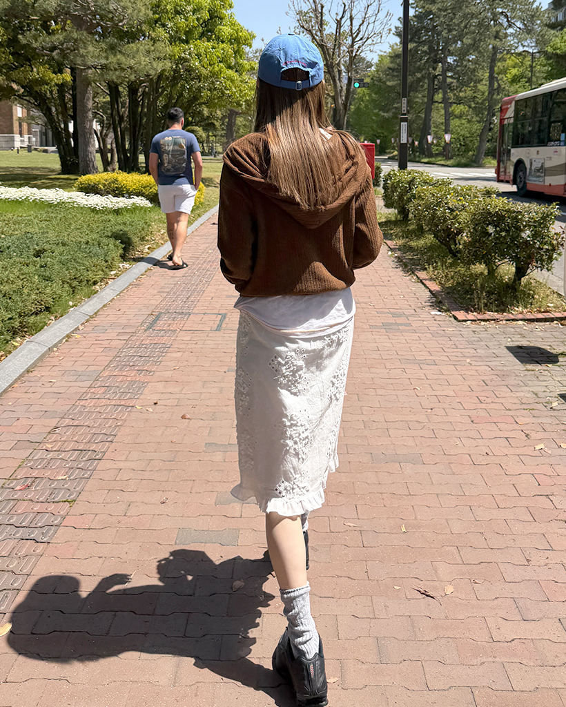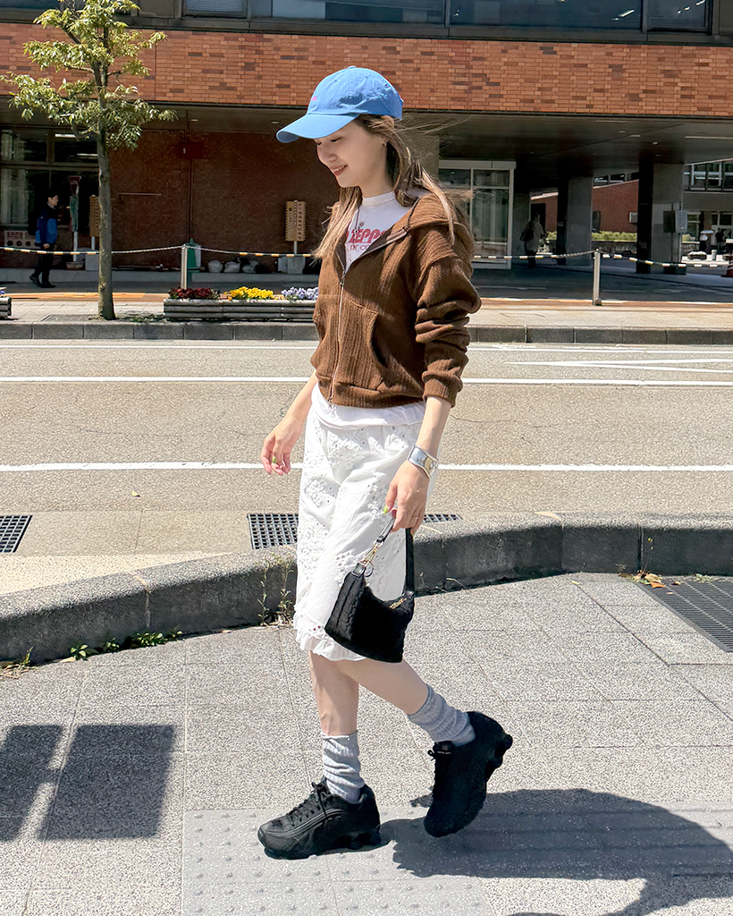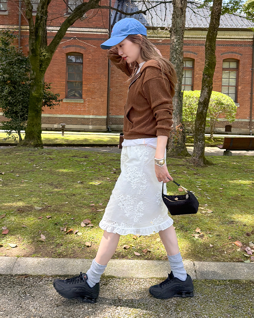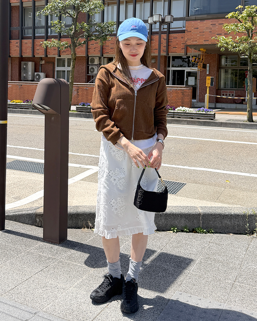 フラワーパンチングフリルミディスカート