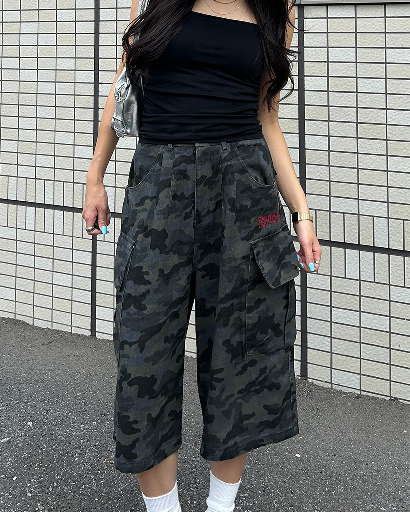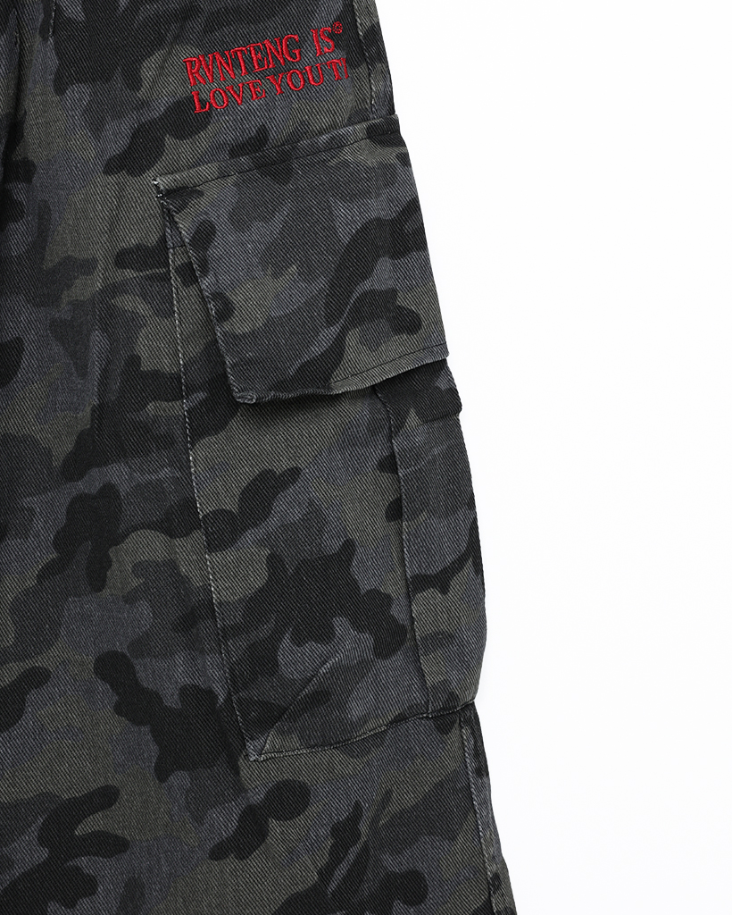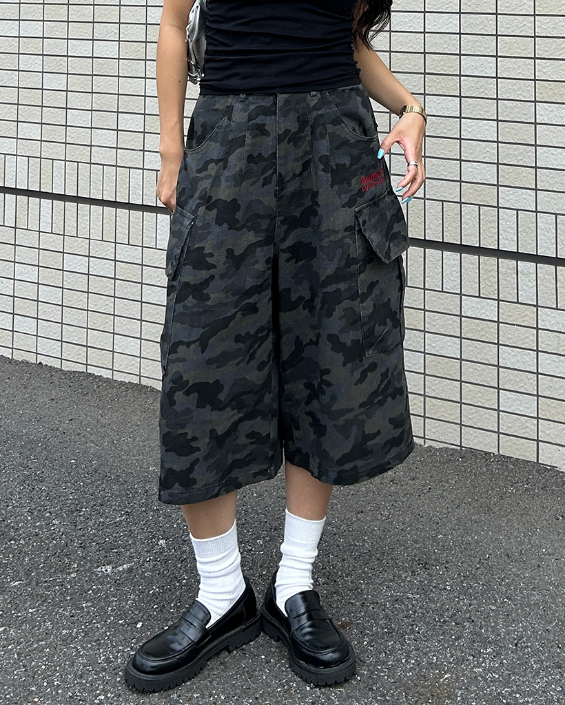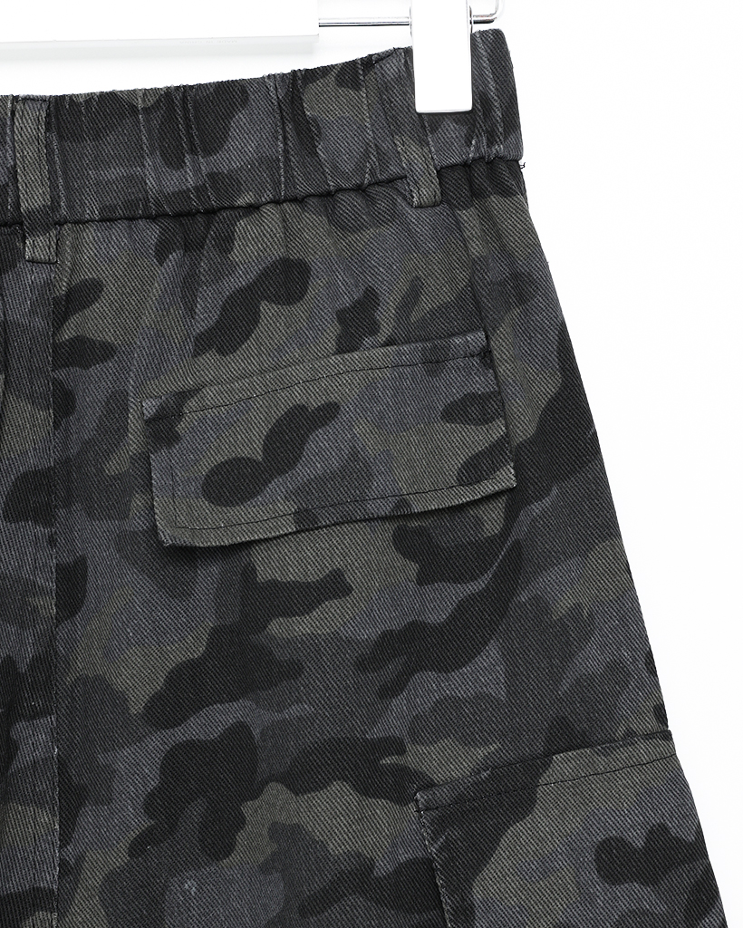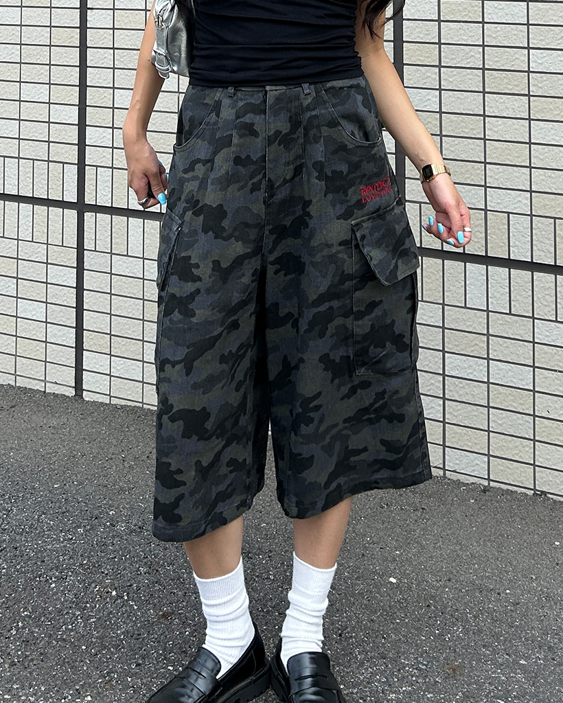 レッドスティッチカモフラージュカーゴバミューダパンツ