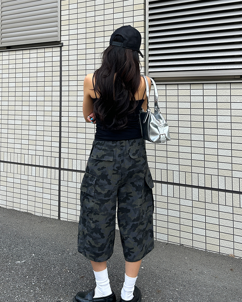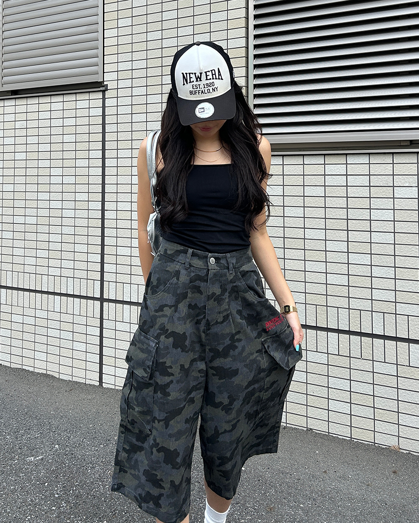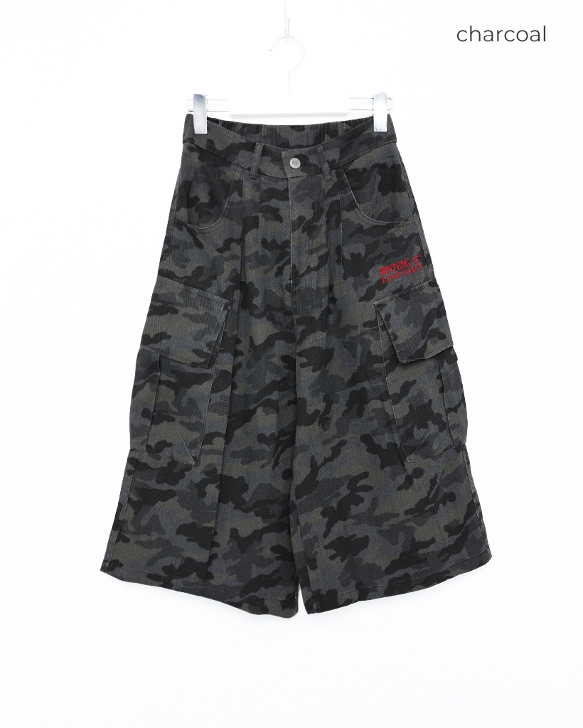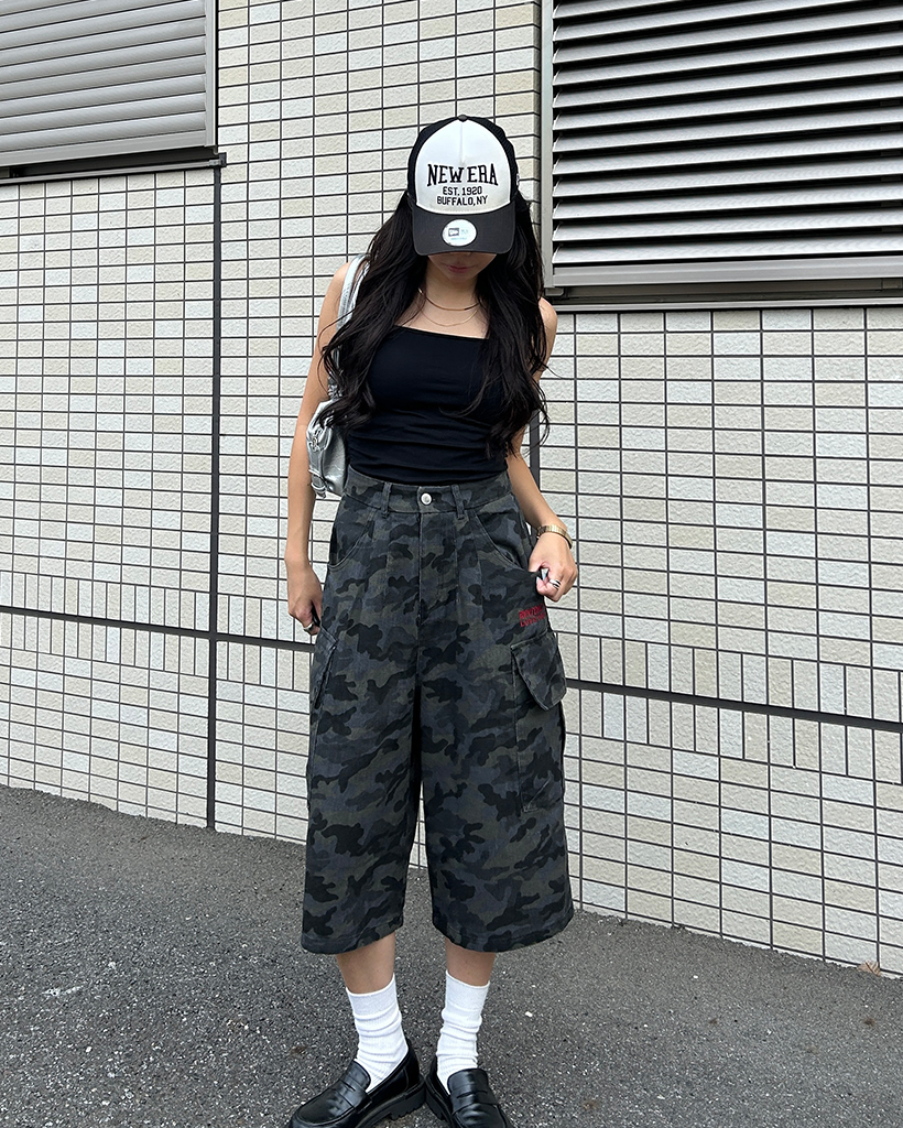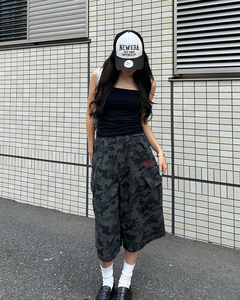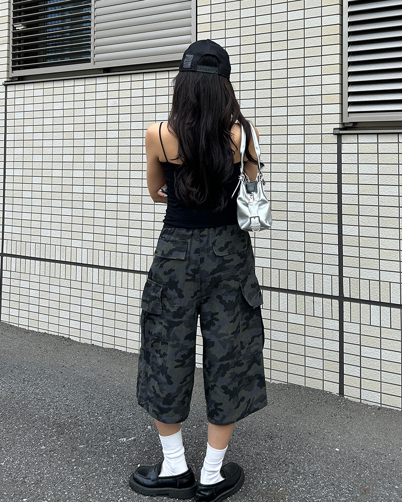 レッドスティッチカモフラージュカーゴバミューダパンツ