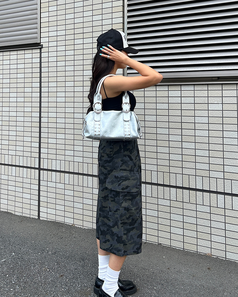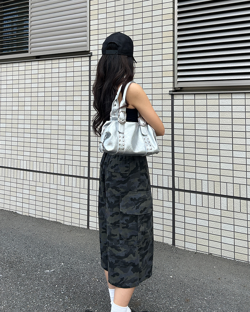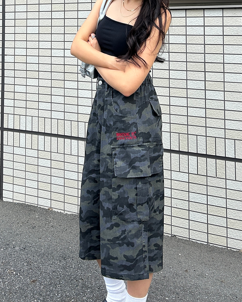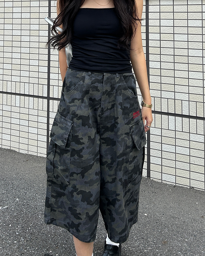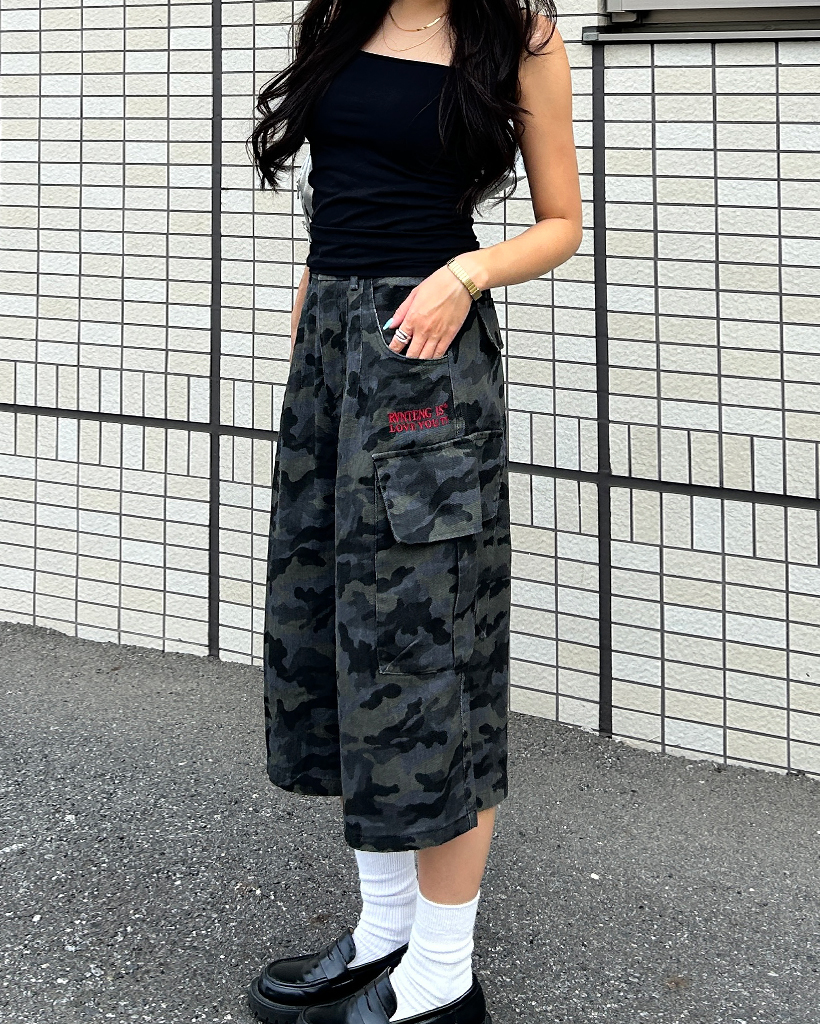 レッドスティッチカモフラージュカーゴバミューダパンツ