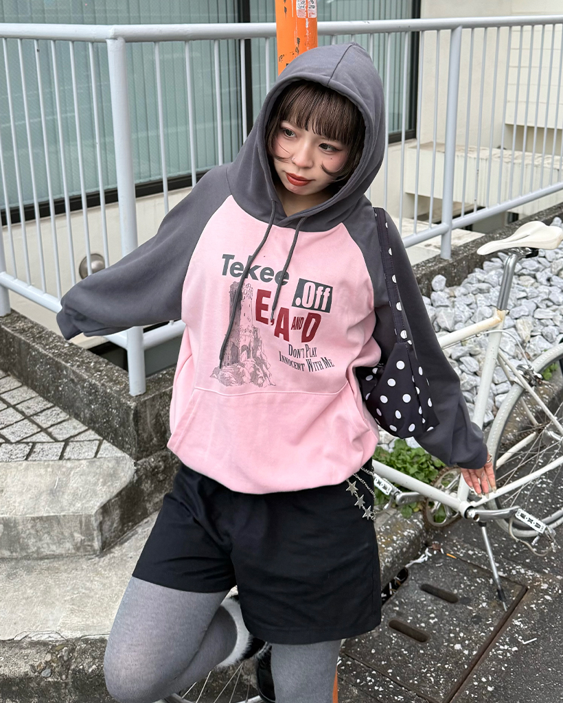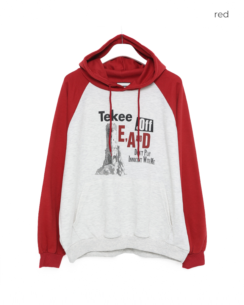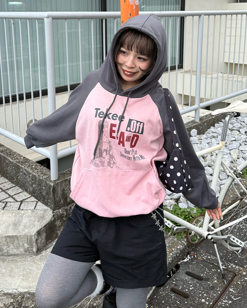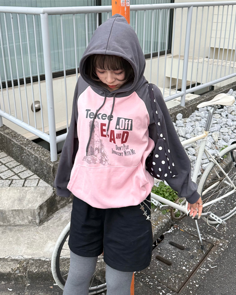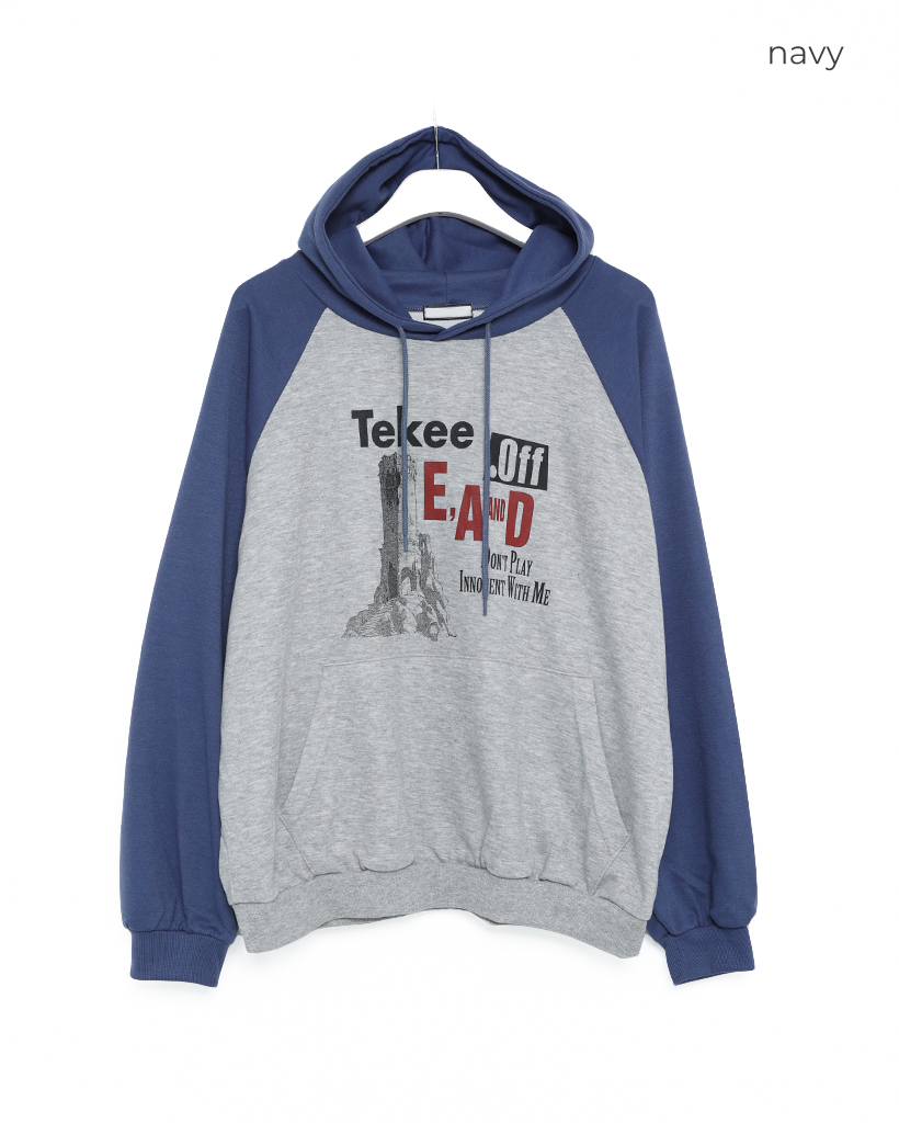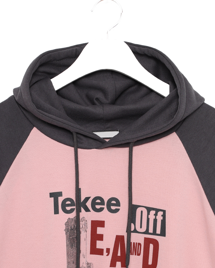 tekeeプリントラグランフーディ