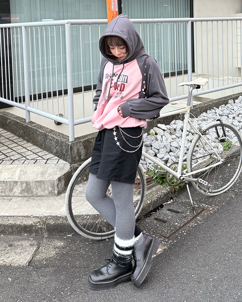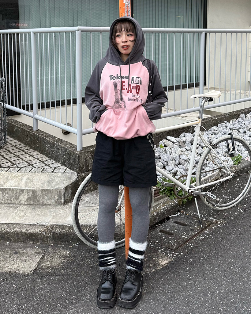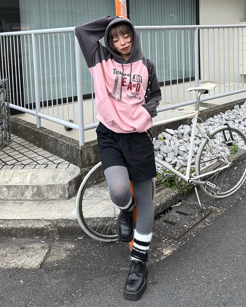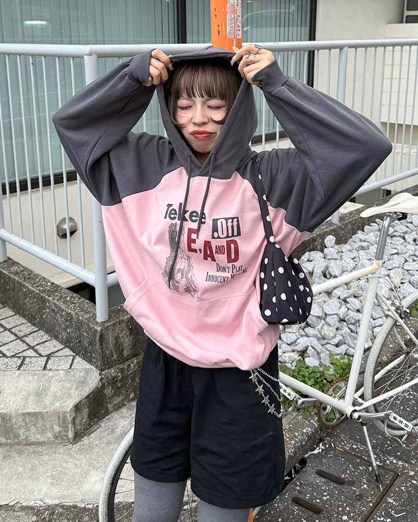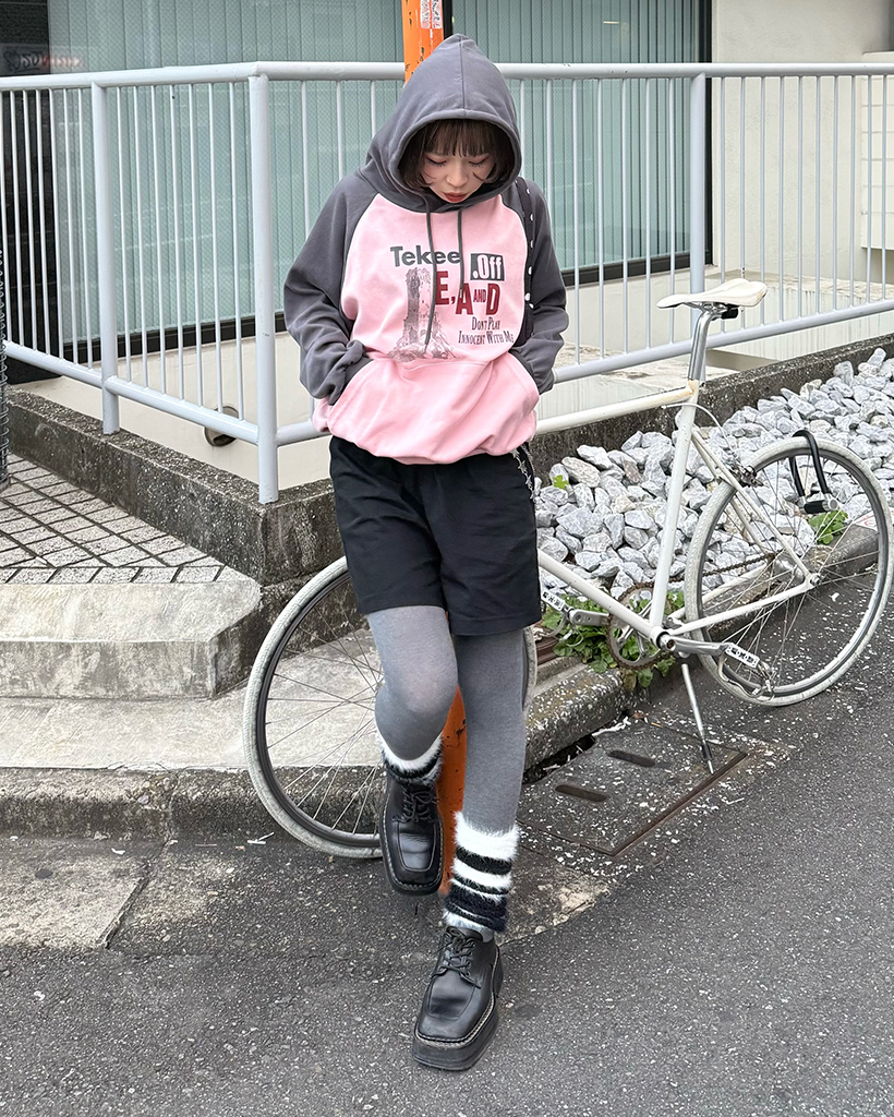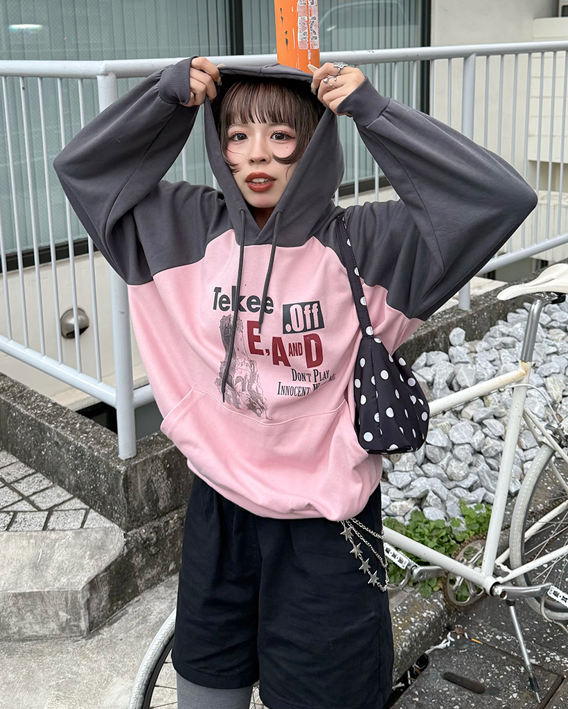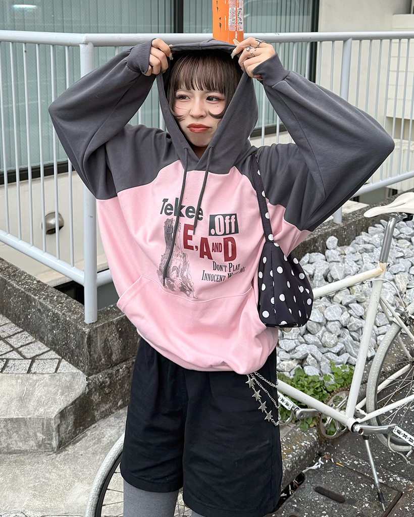 tekeeプリントラグランフーディ