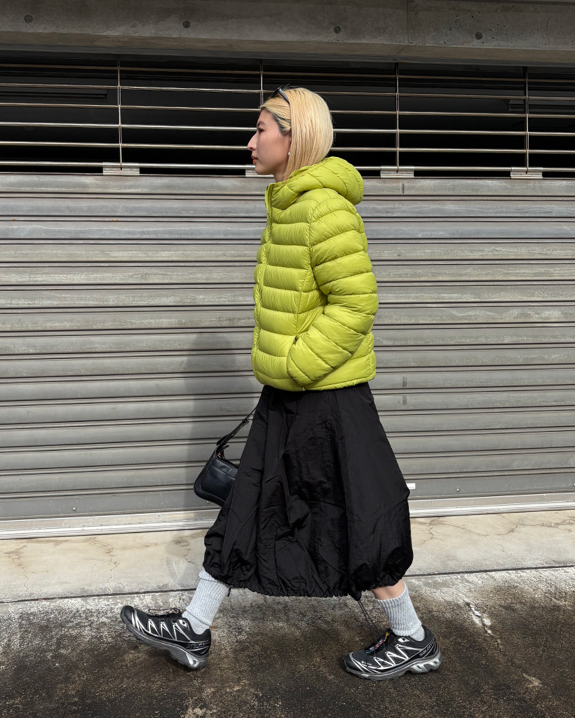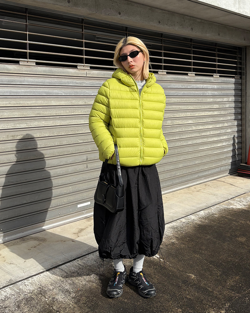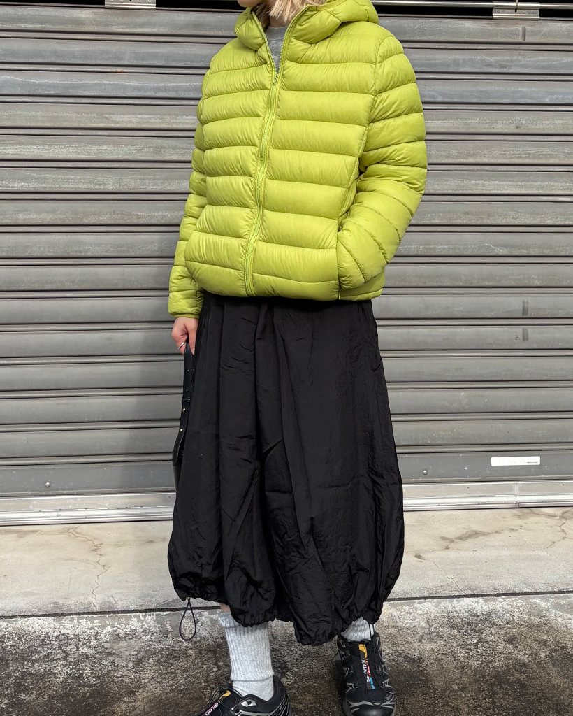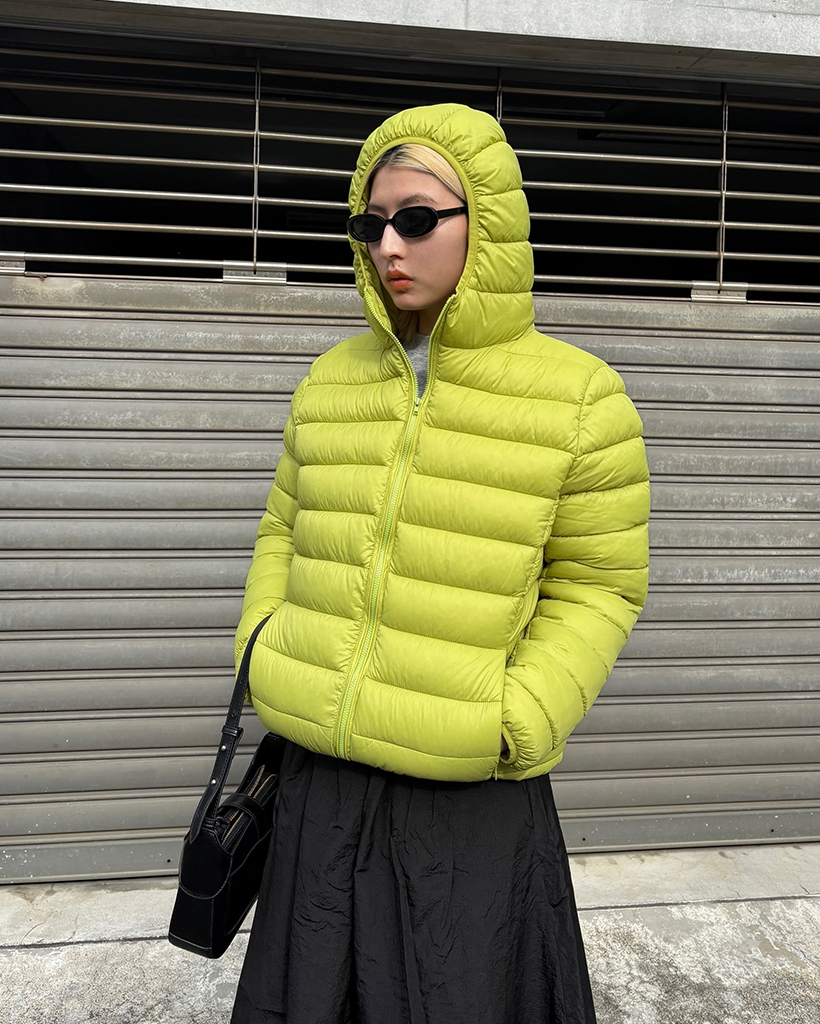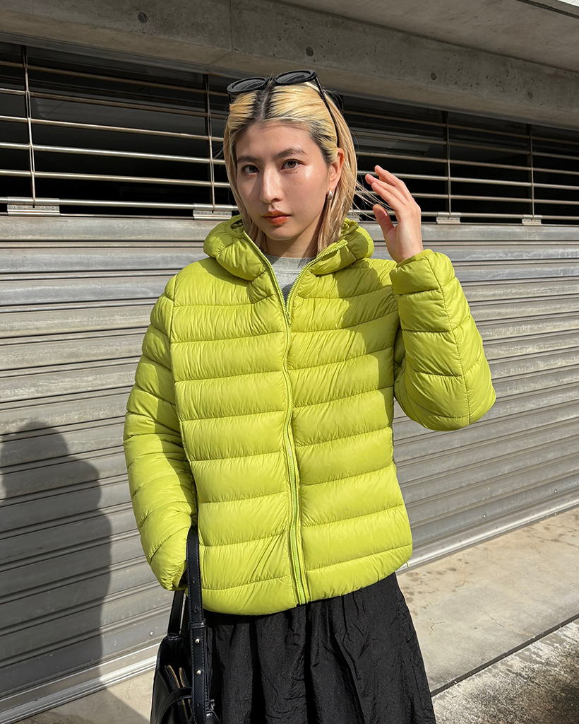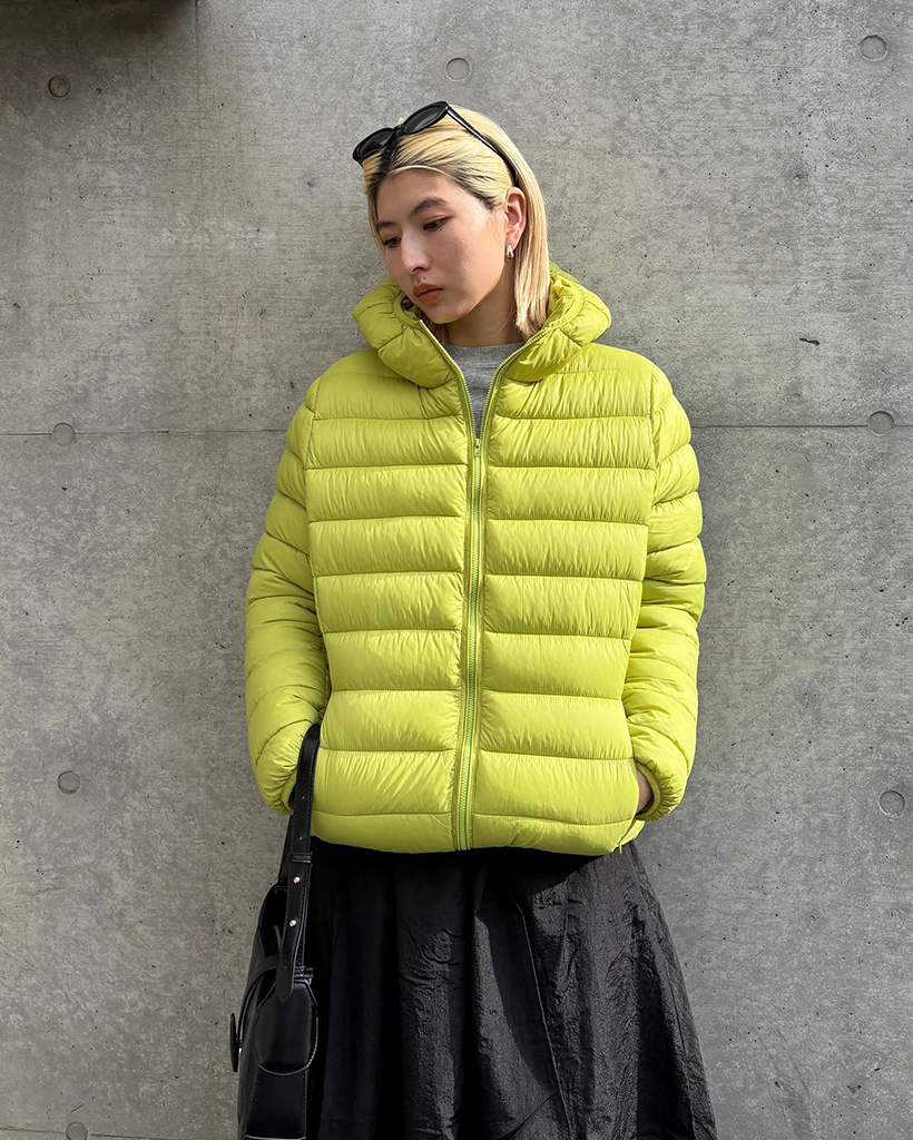 (ユニセックス)サイドダーツフードライトダウンジャケット