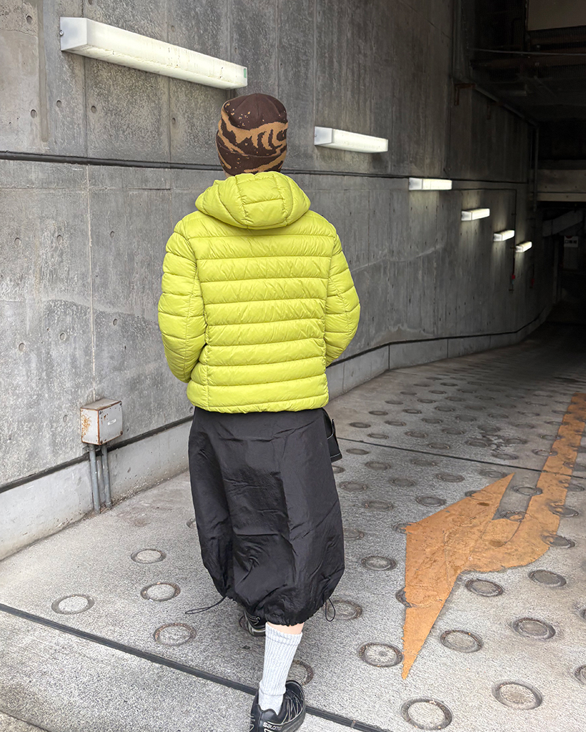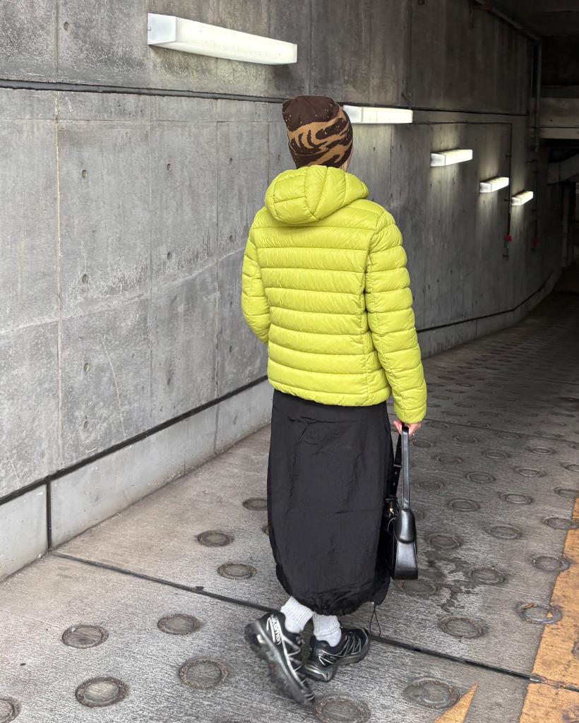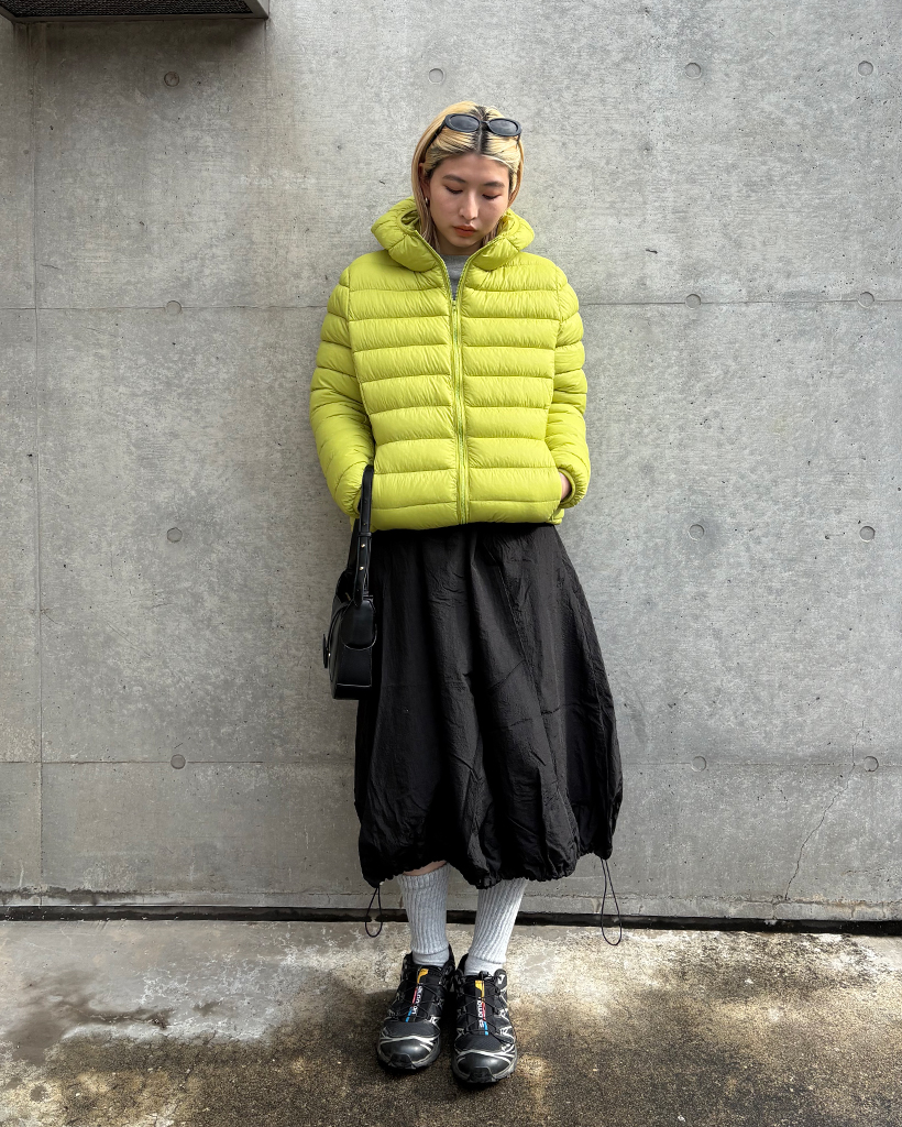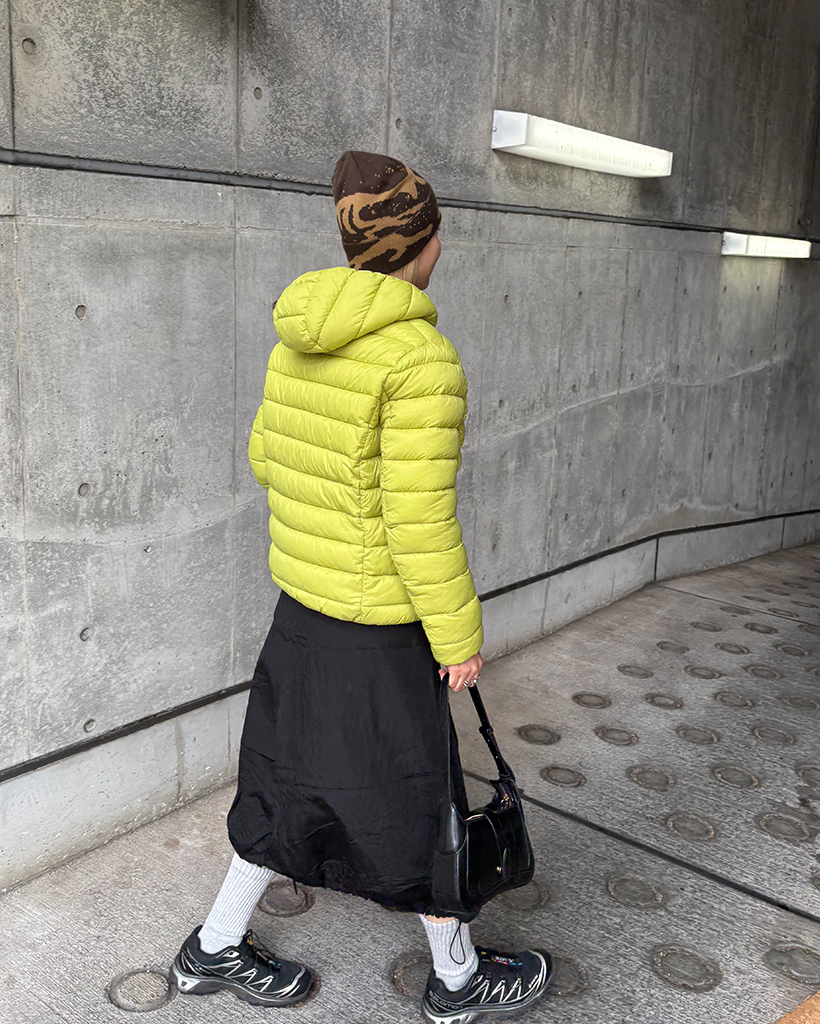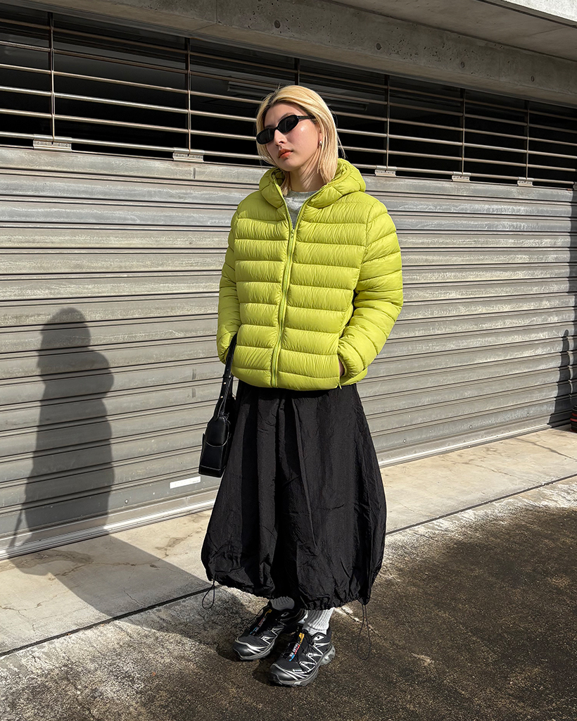 (ユニセックス)サイドダーツフードライトダウンジャケット