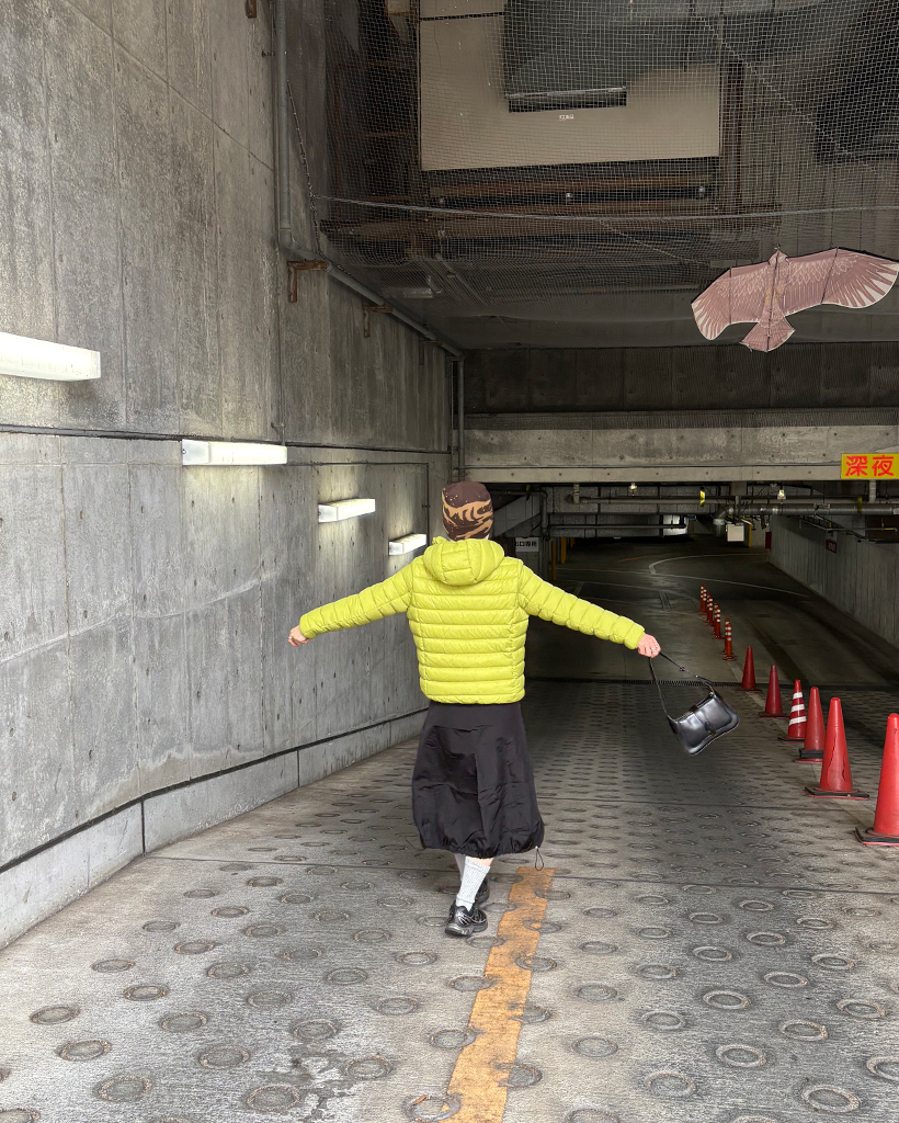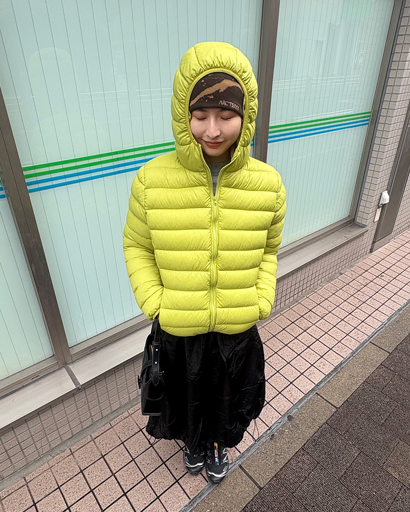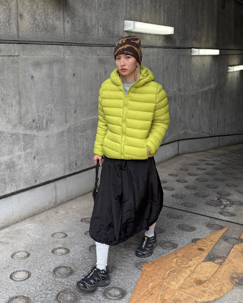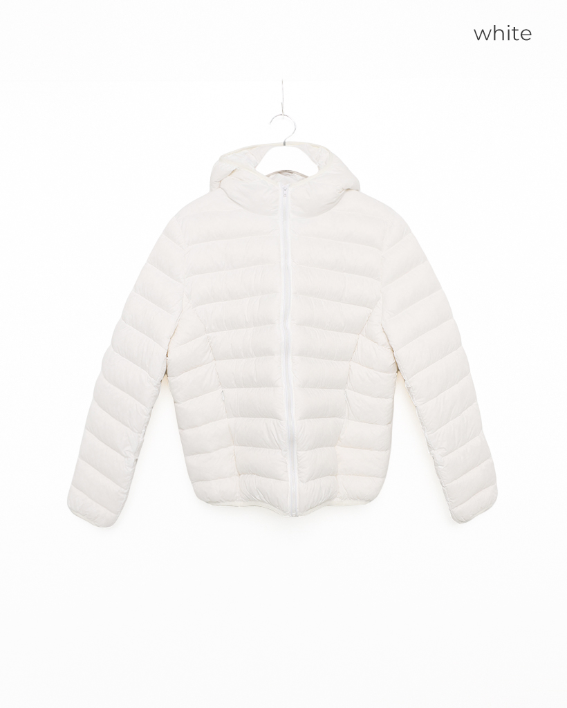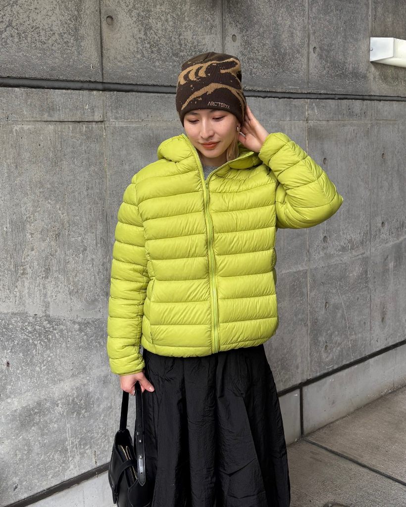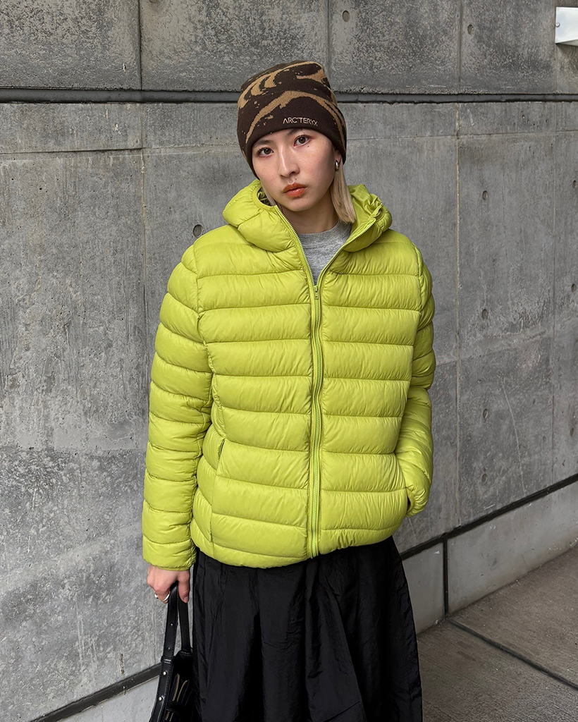 (ユニセックス)サイドダーツフードライトダウンジャケット