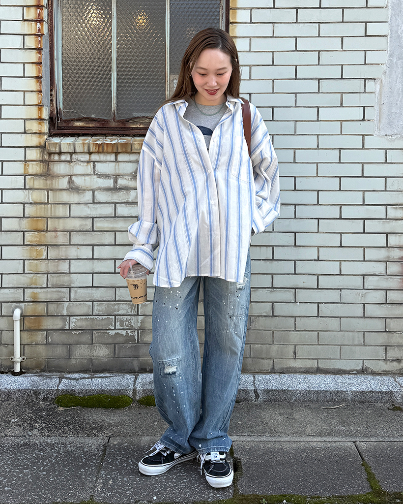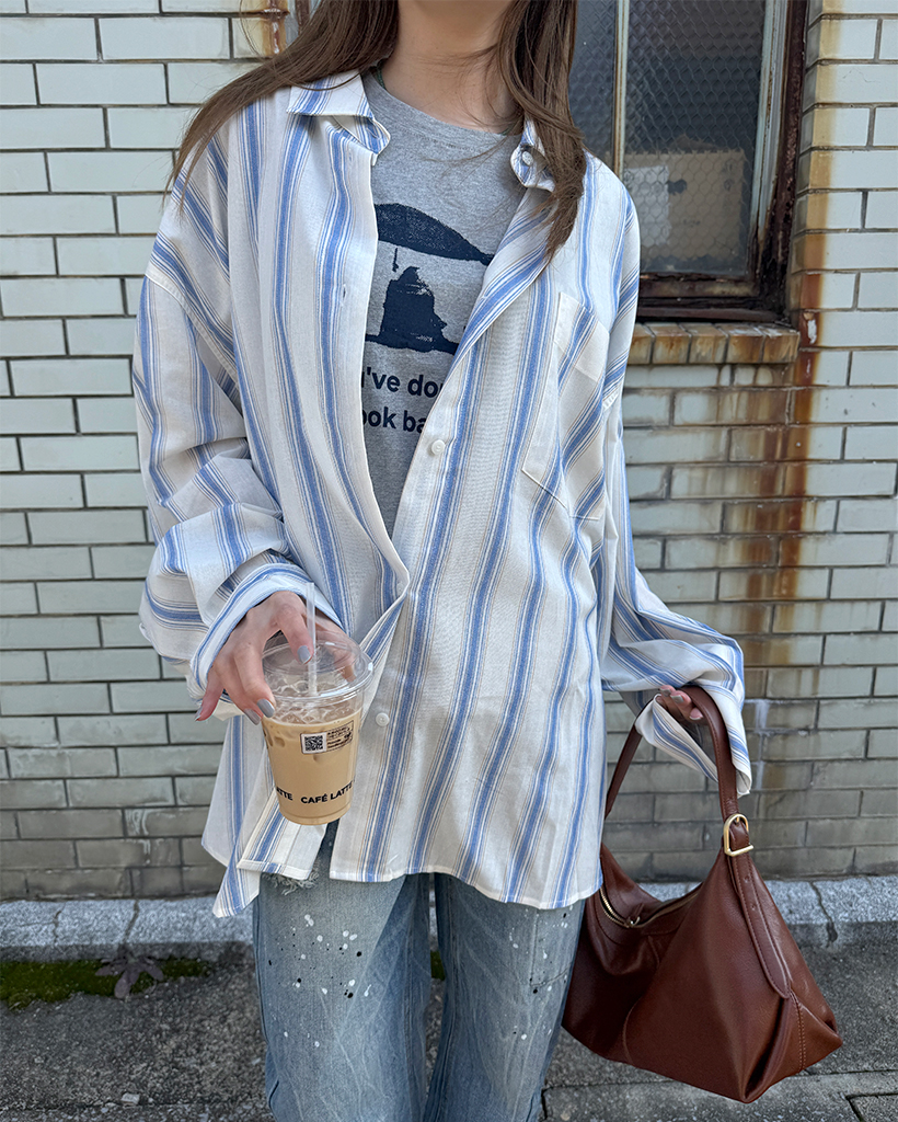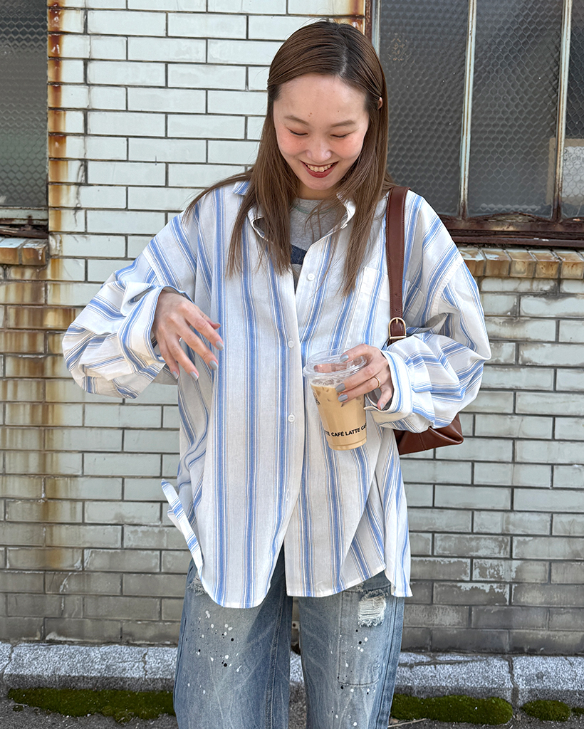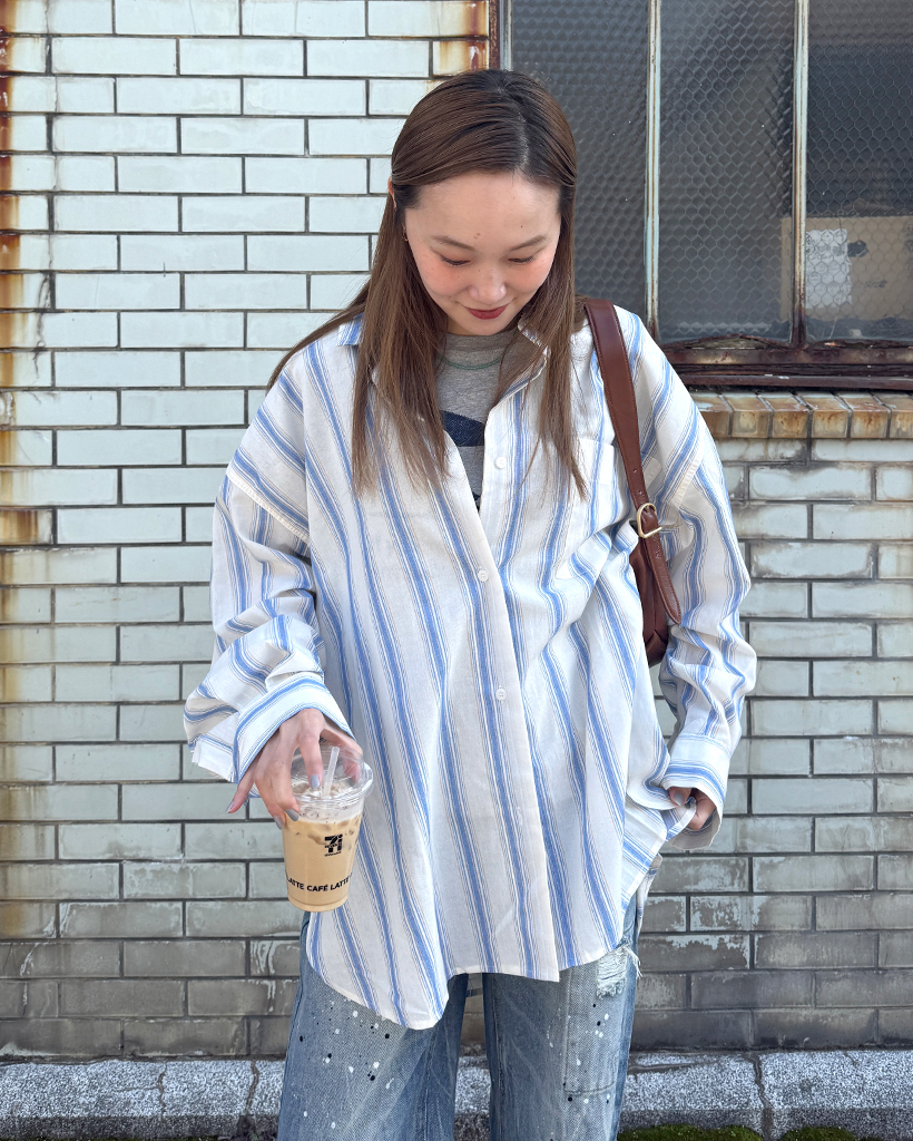 オーバーフィットストライプシャツ