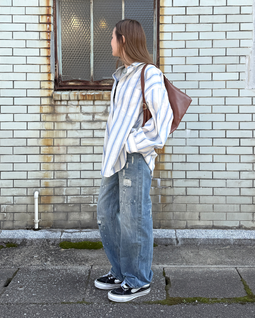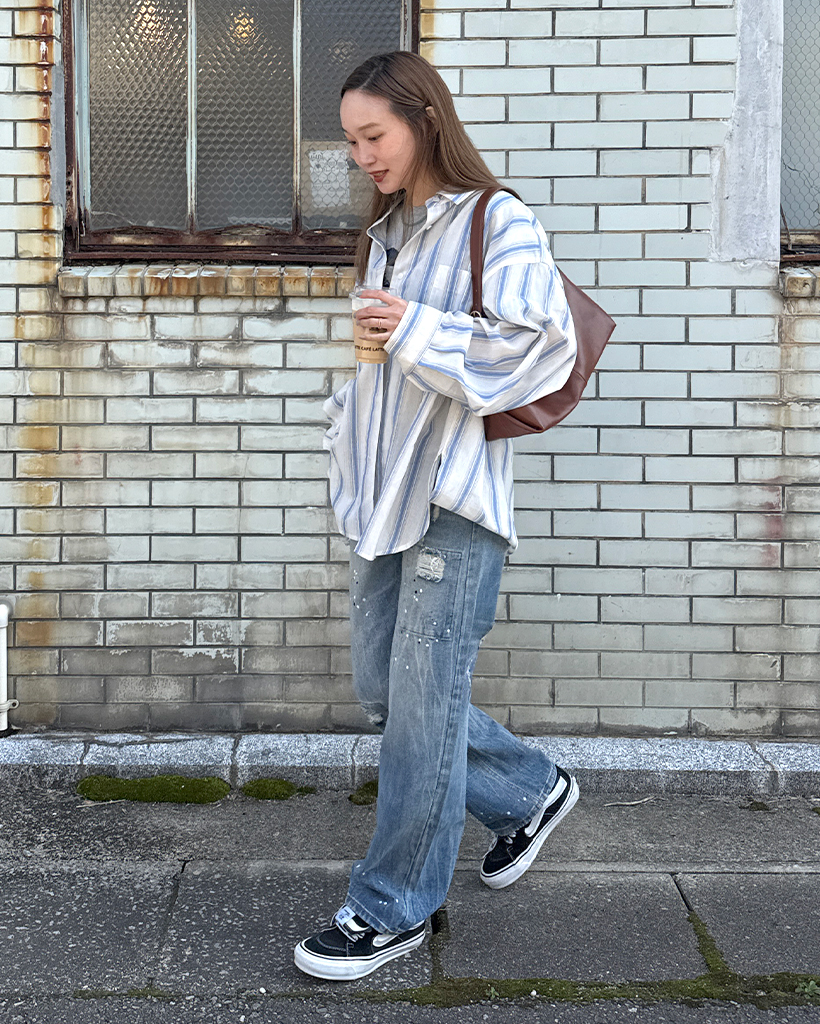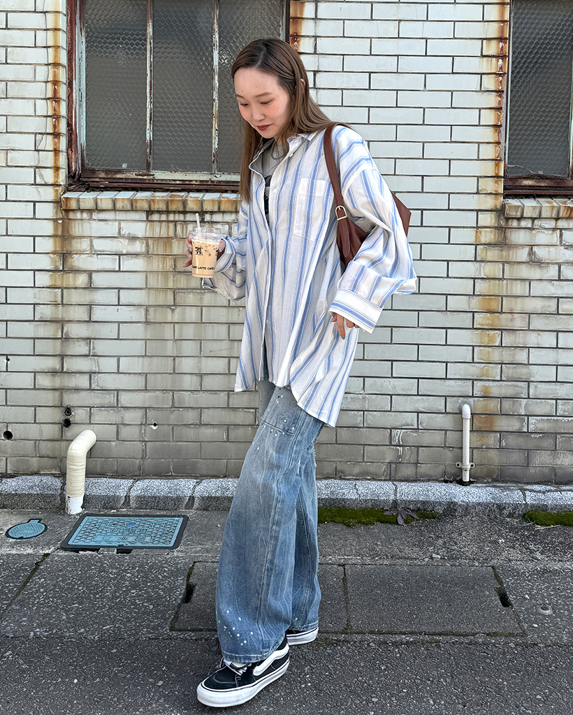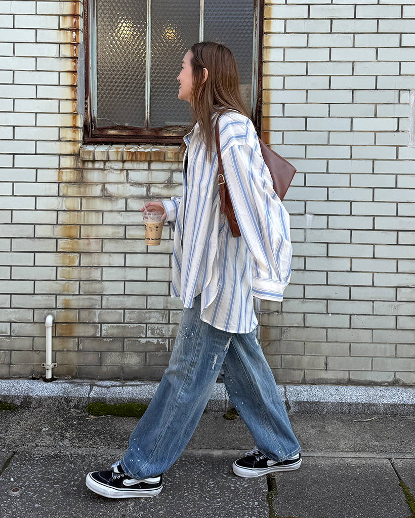 オーバーフィットストライプシャツ
