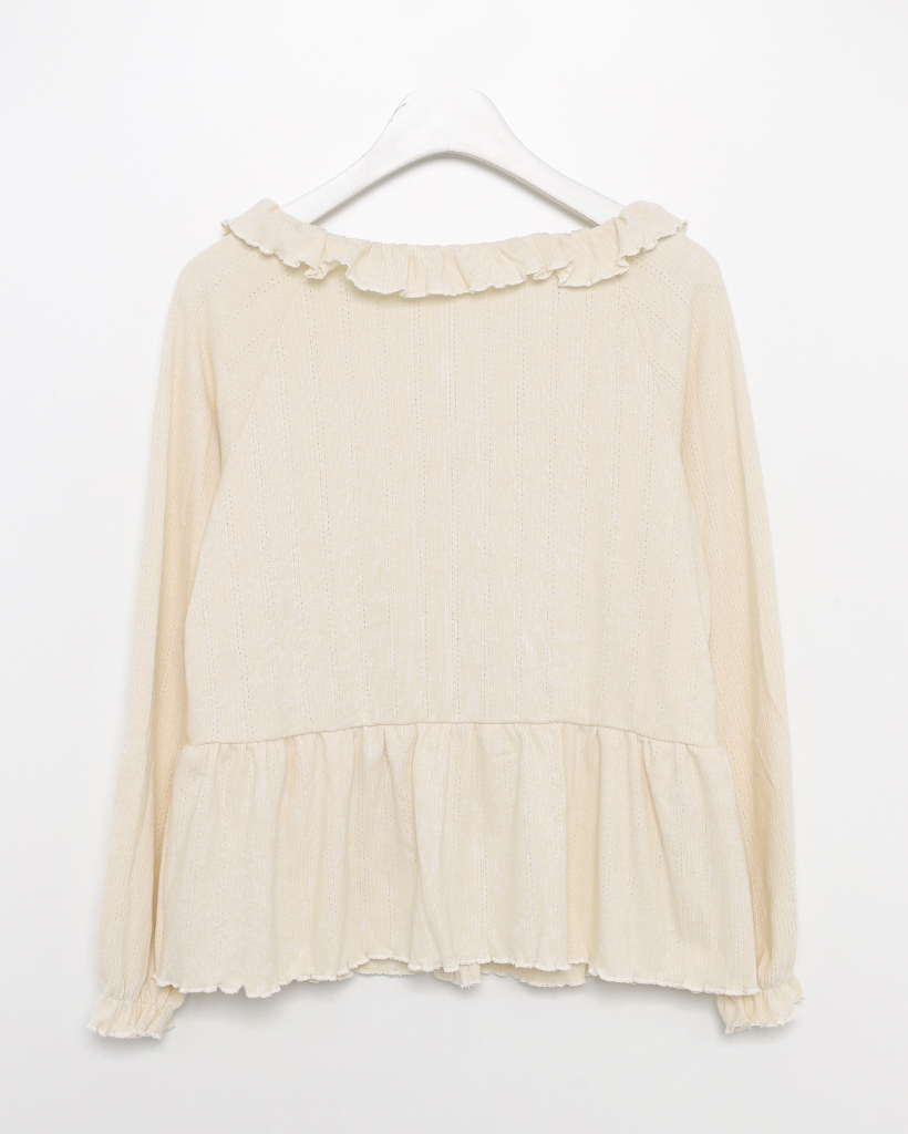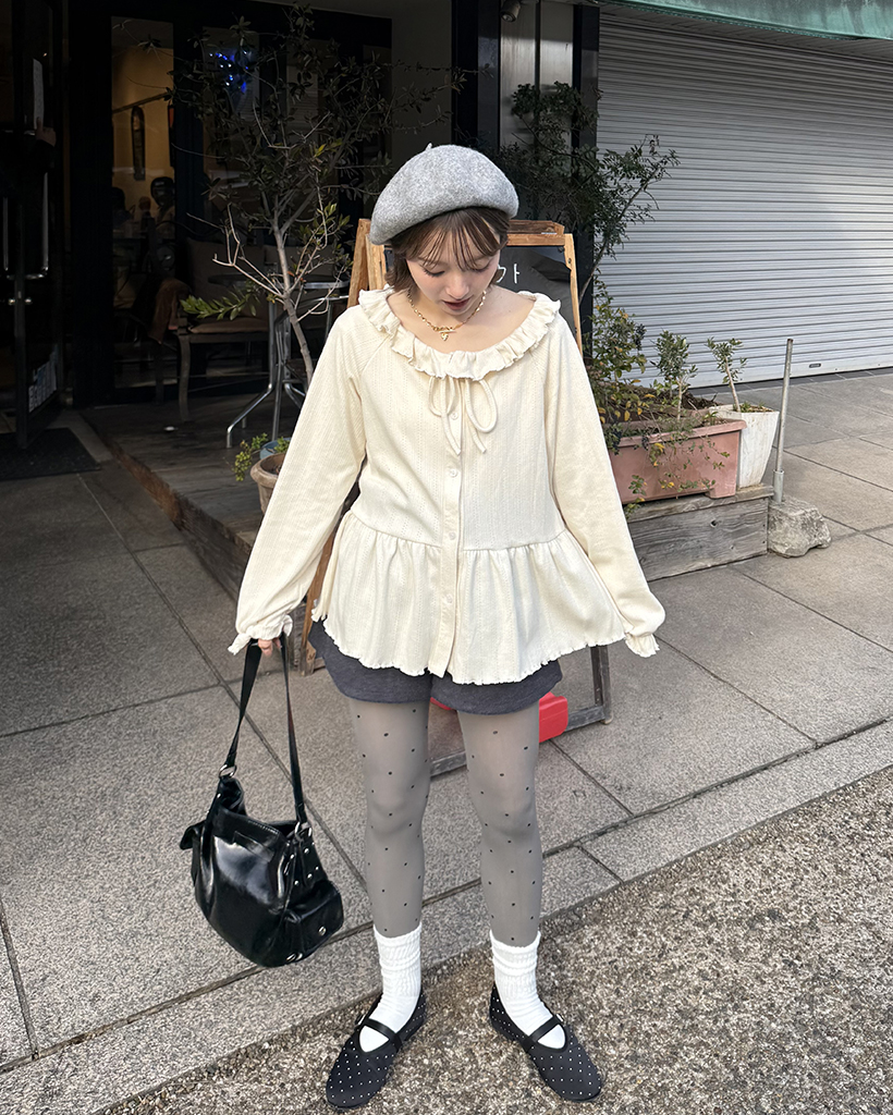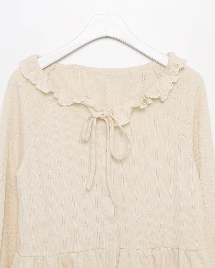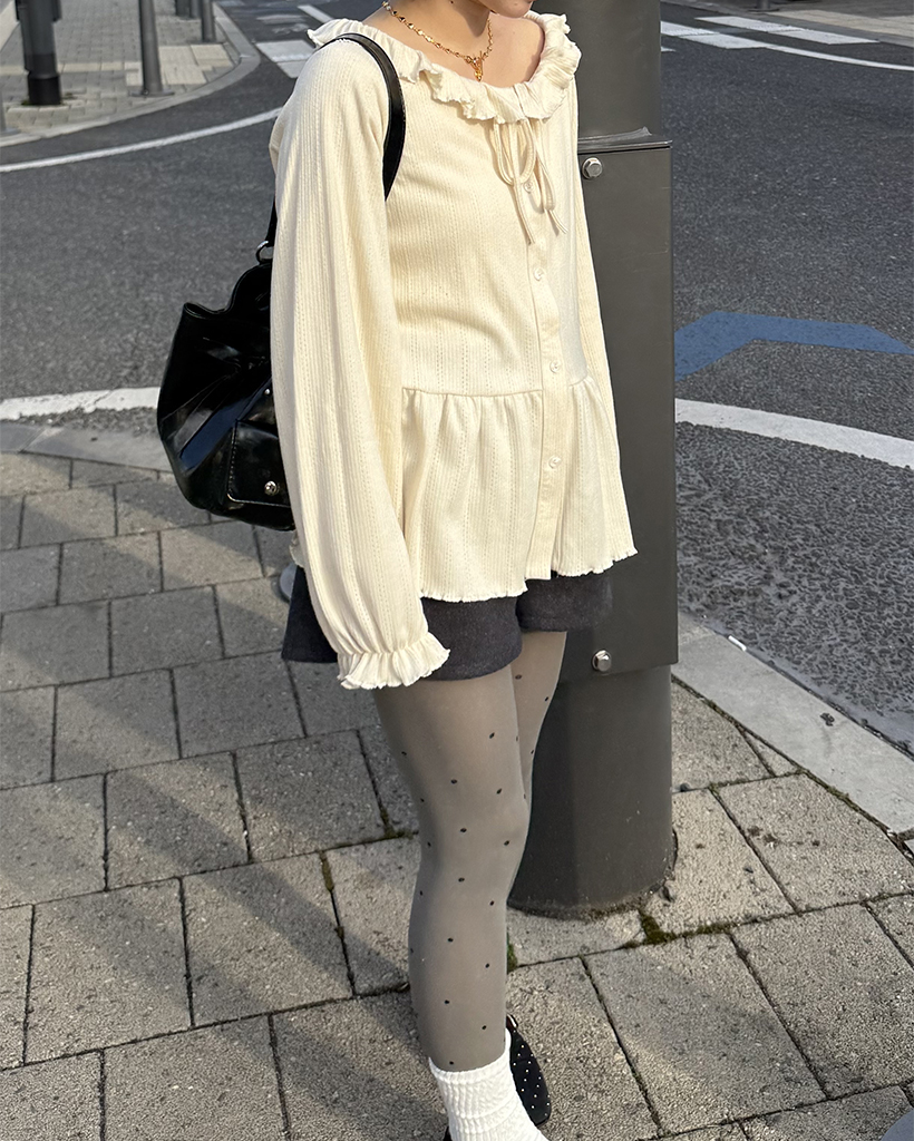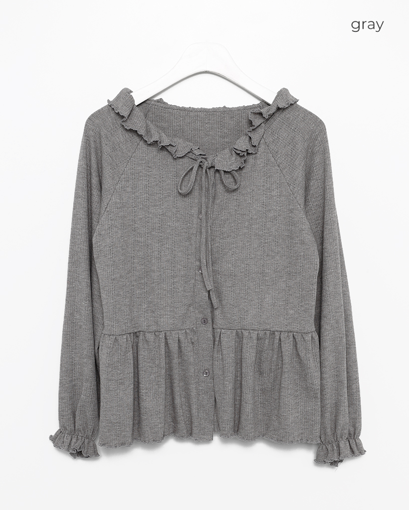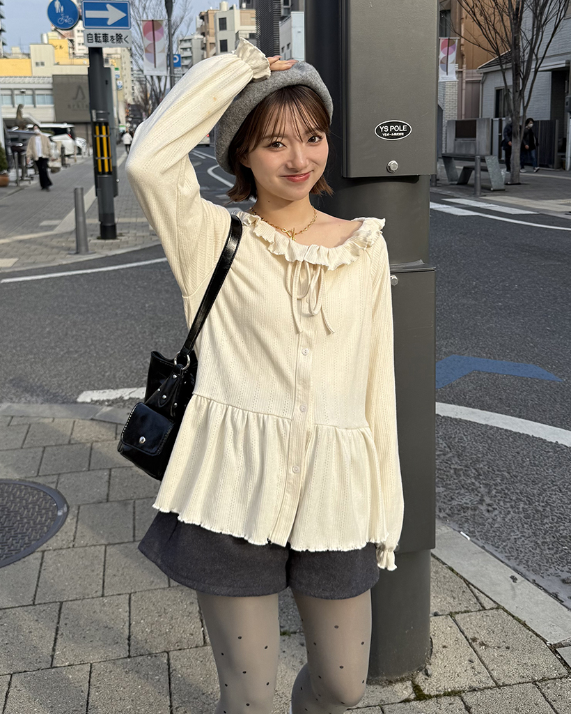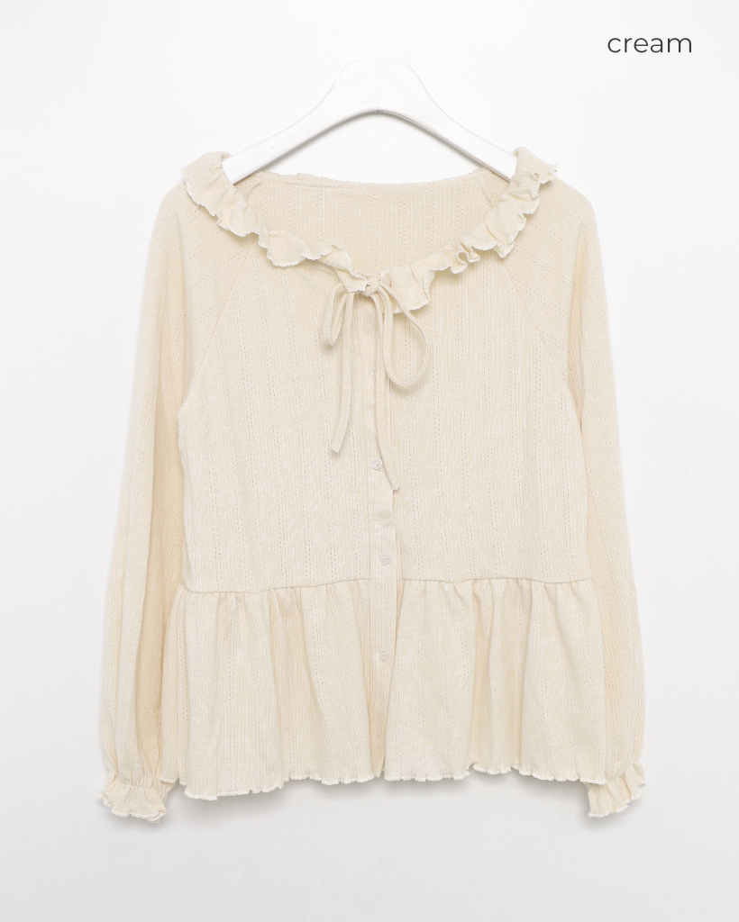 センターボタンペプラムブラウス