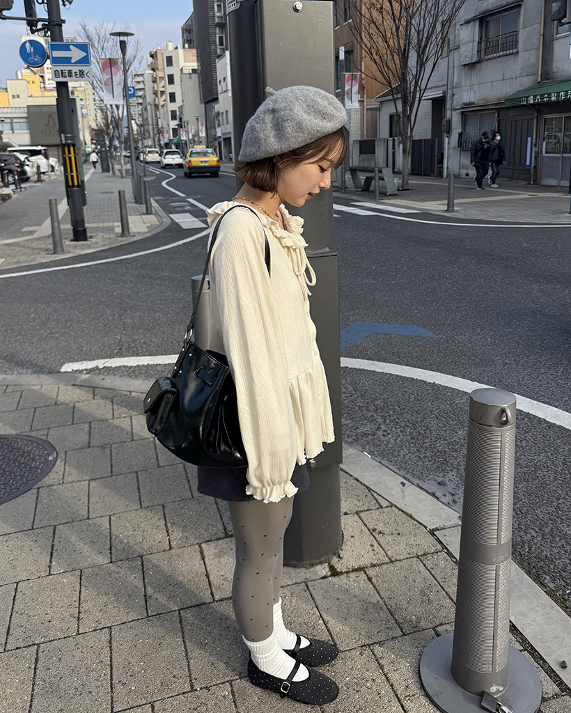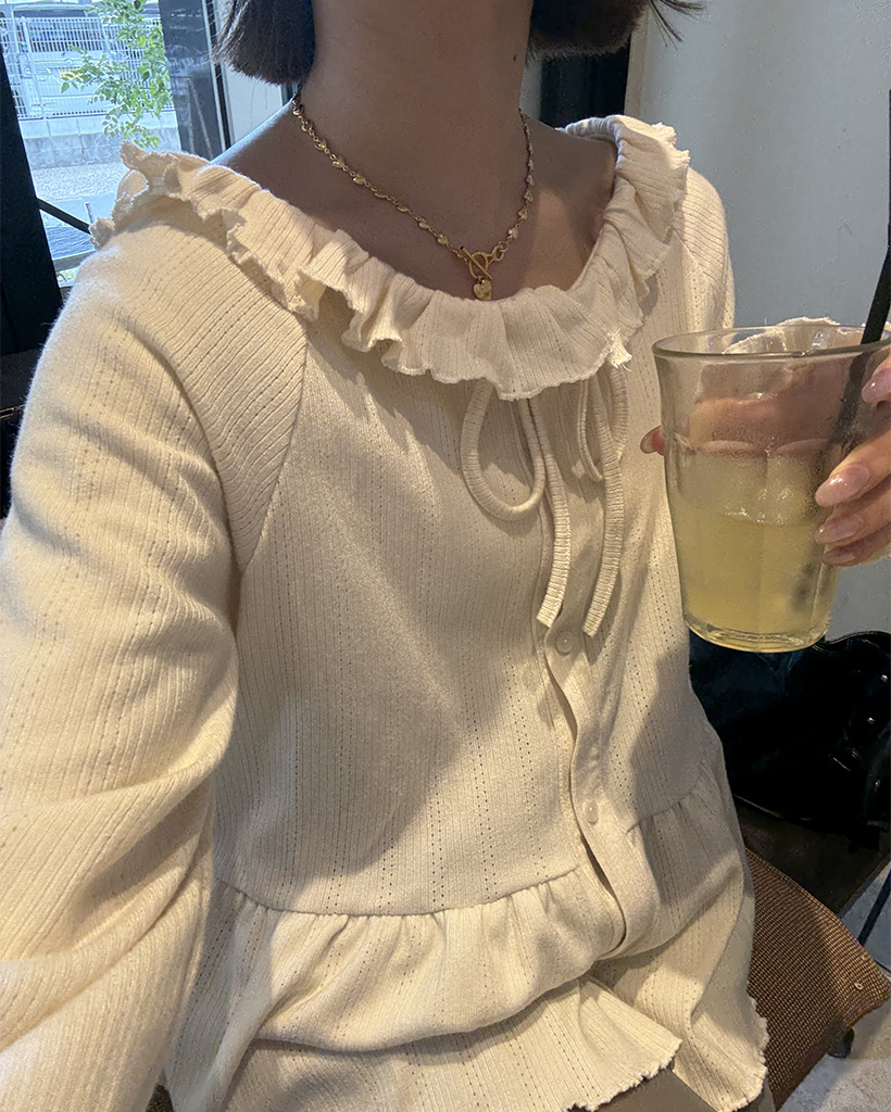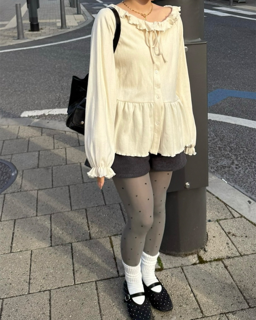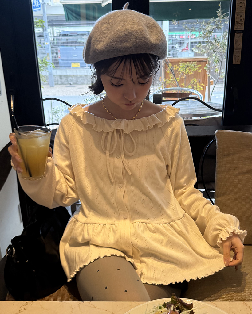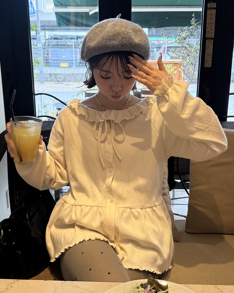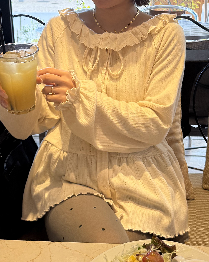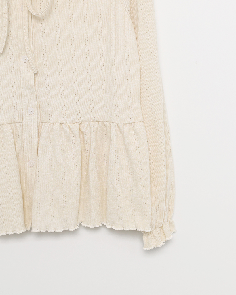 センターボタンペプラムブラウス