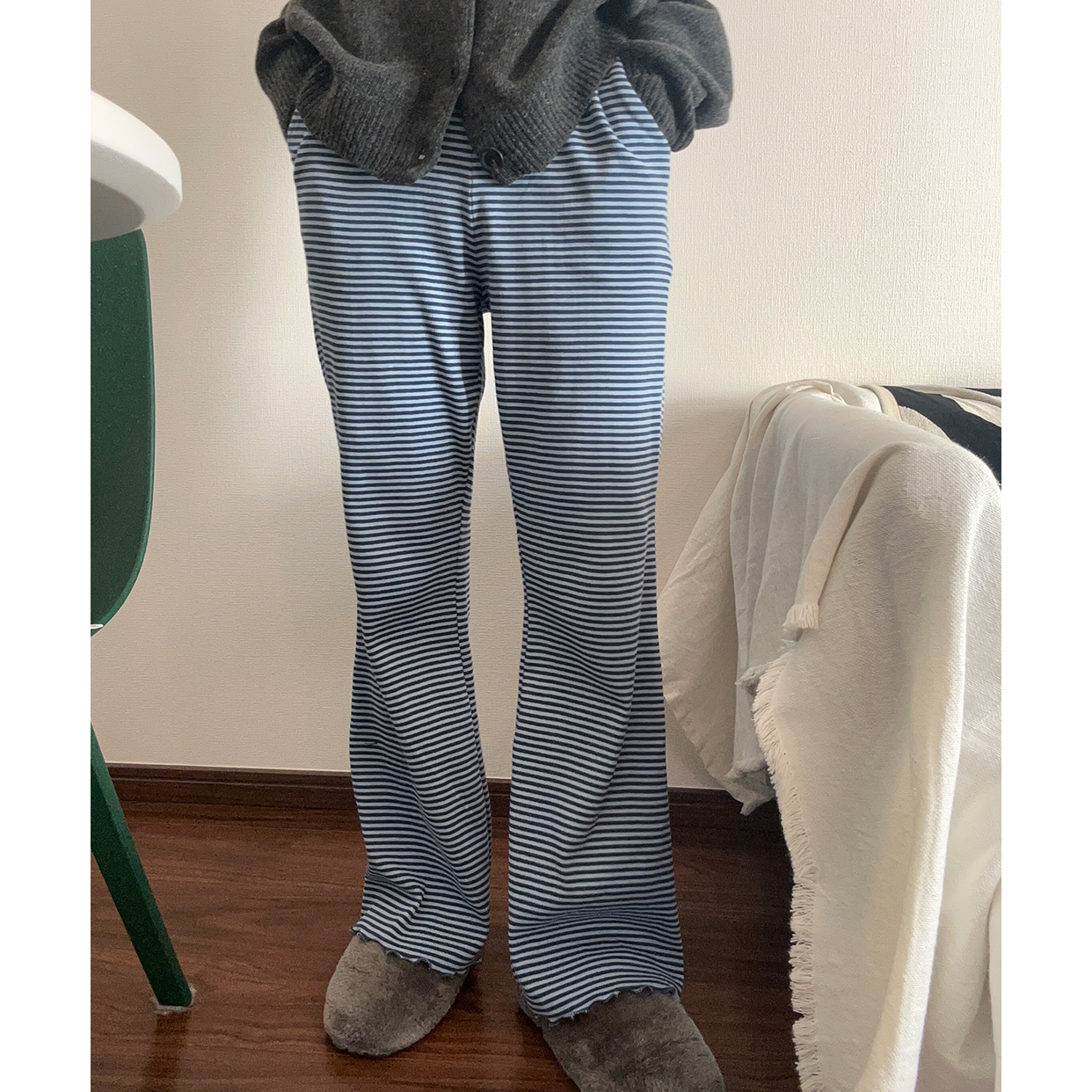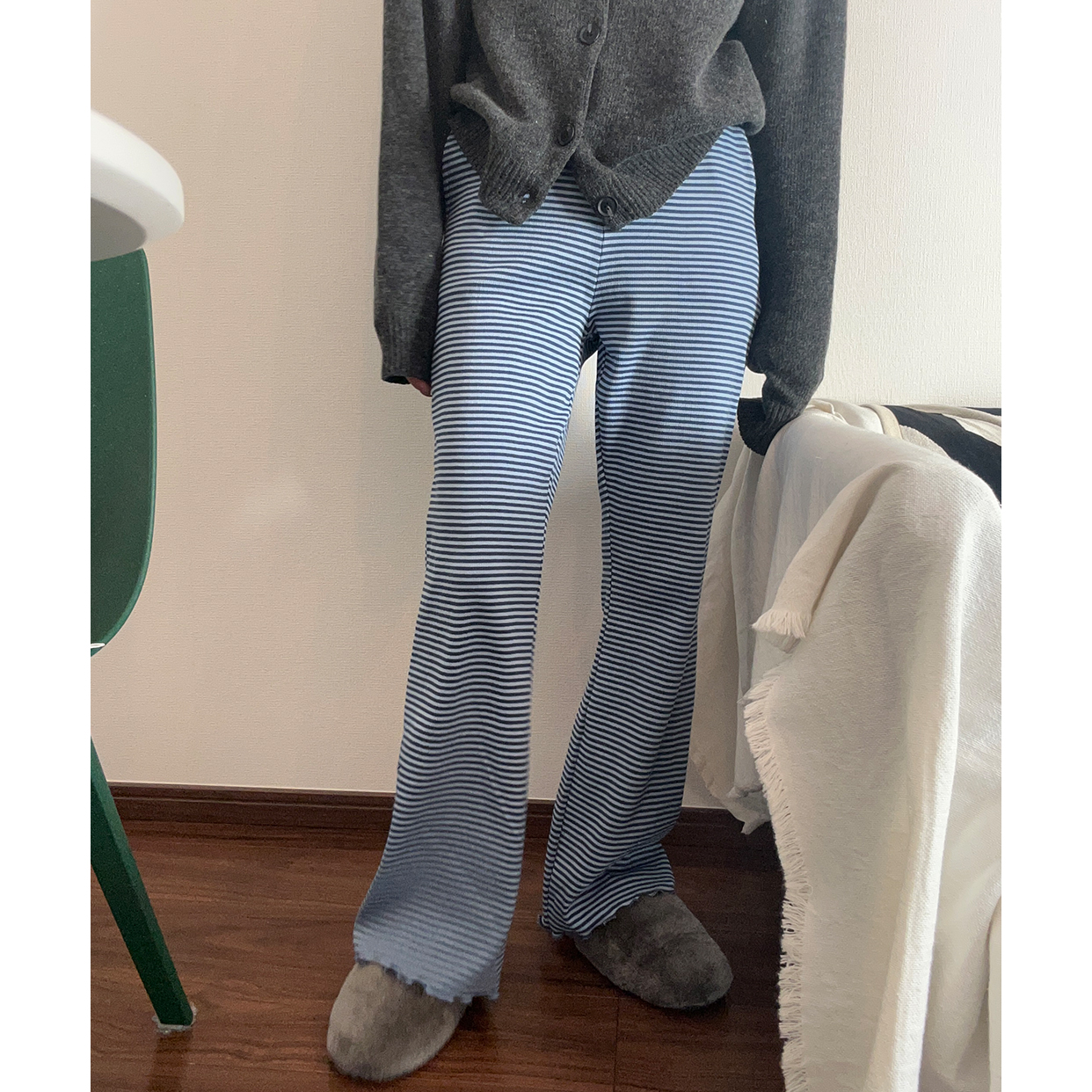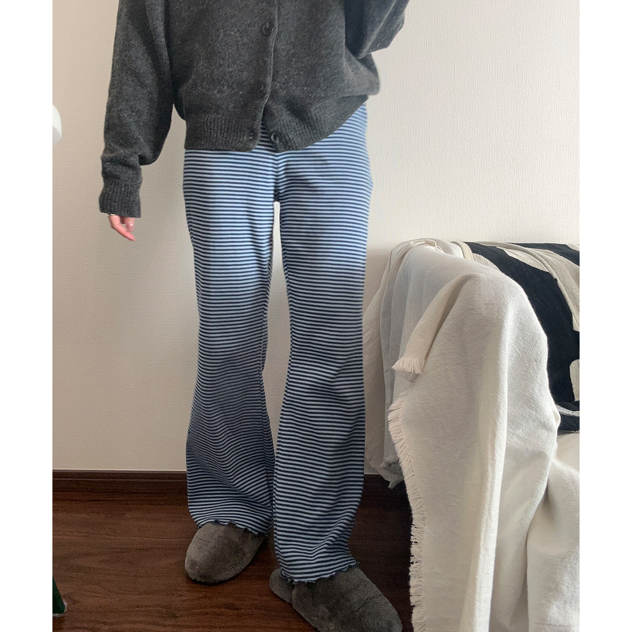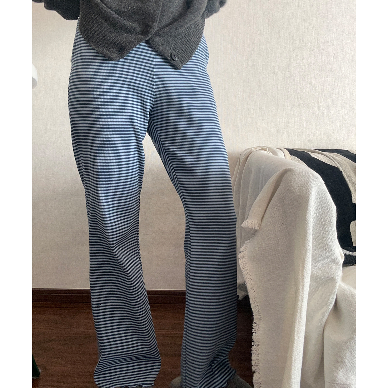 ボーダースリムコットンパンツ