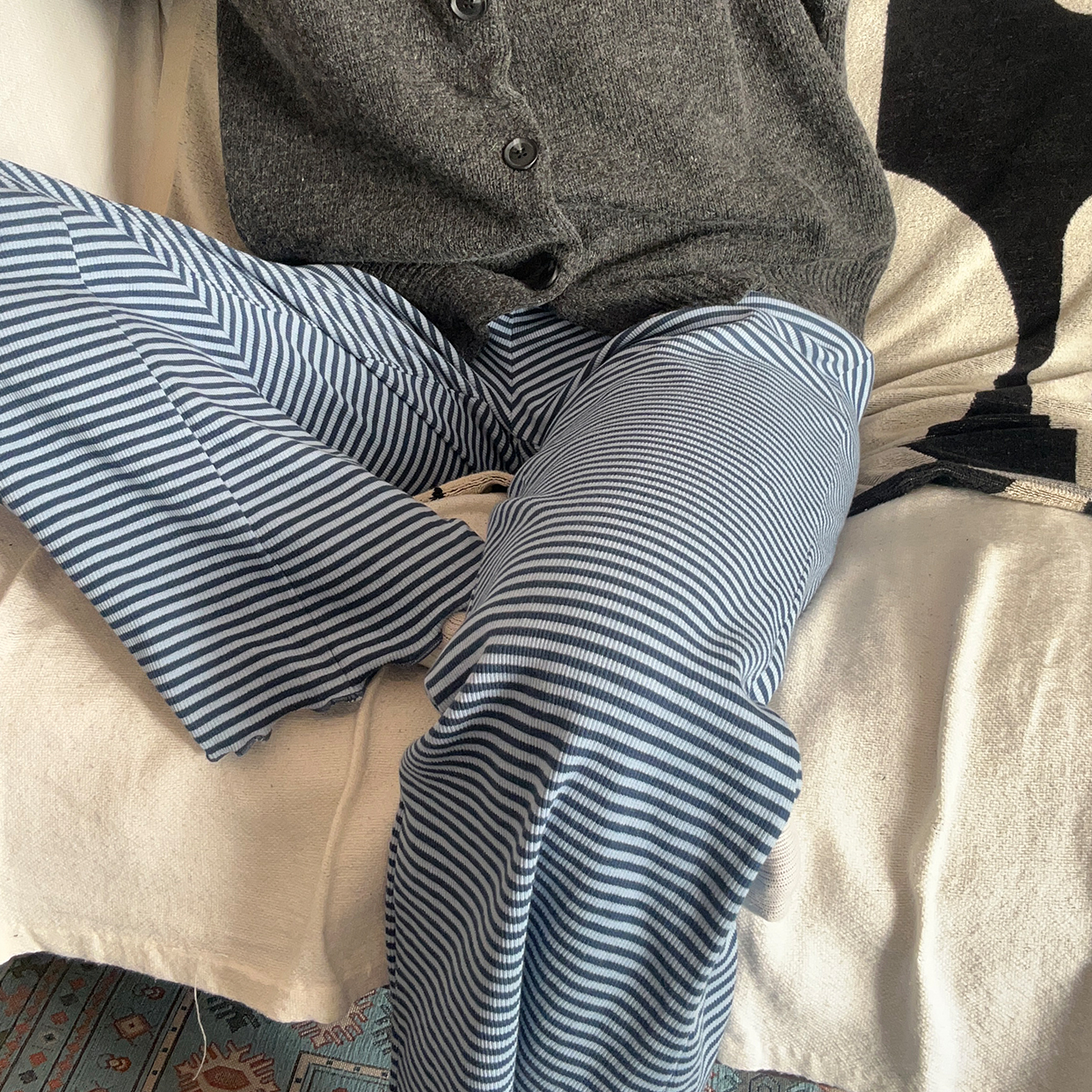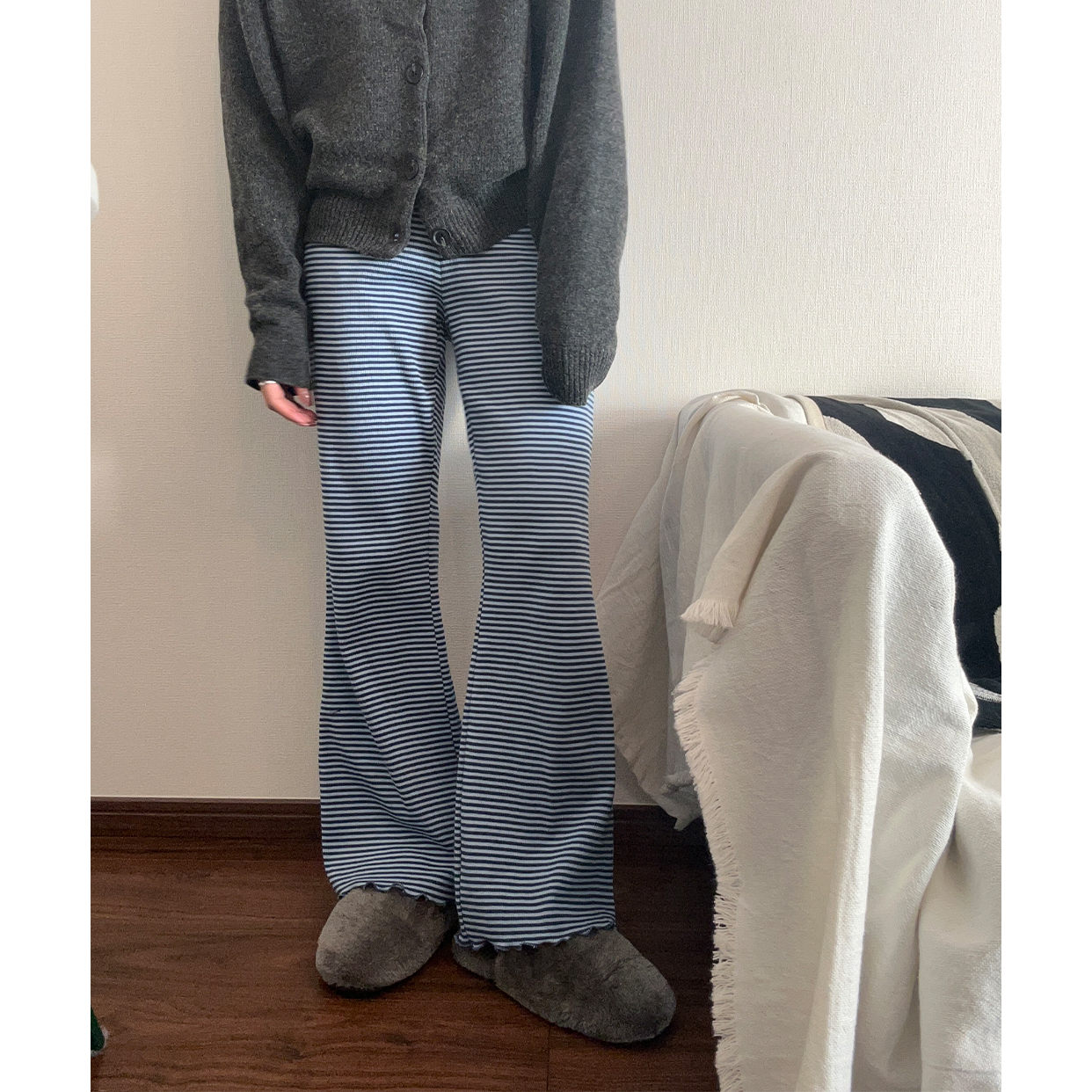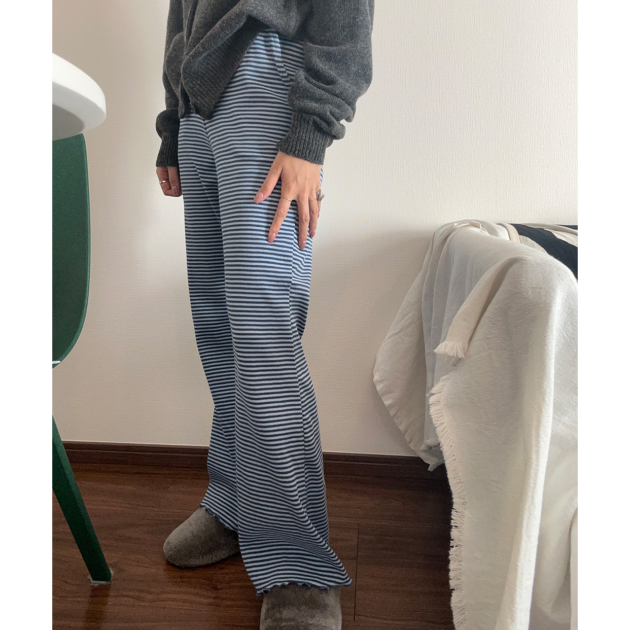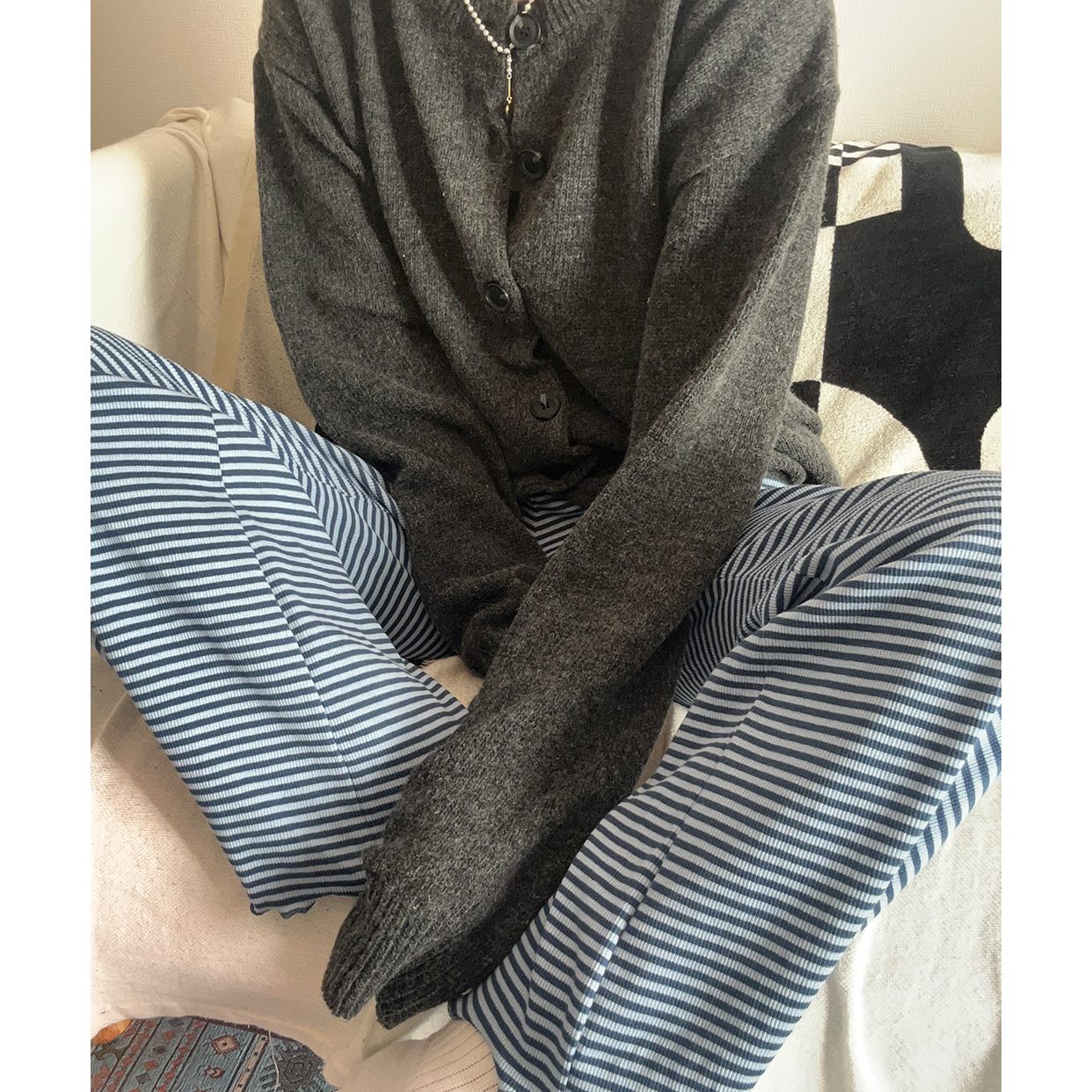 ボーダースリムコットンパンツ