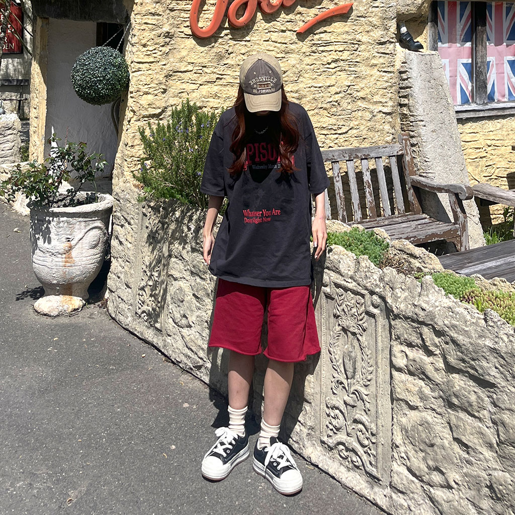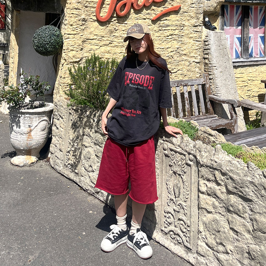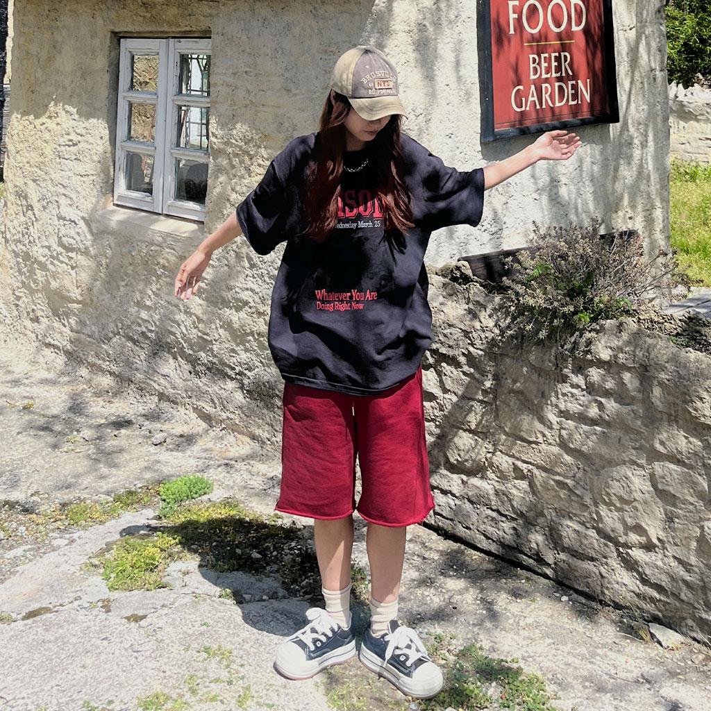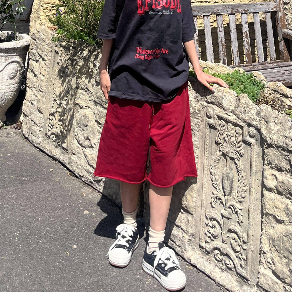 (ユニセックス) ワイドフィットスウェットハーフパンツ