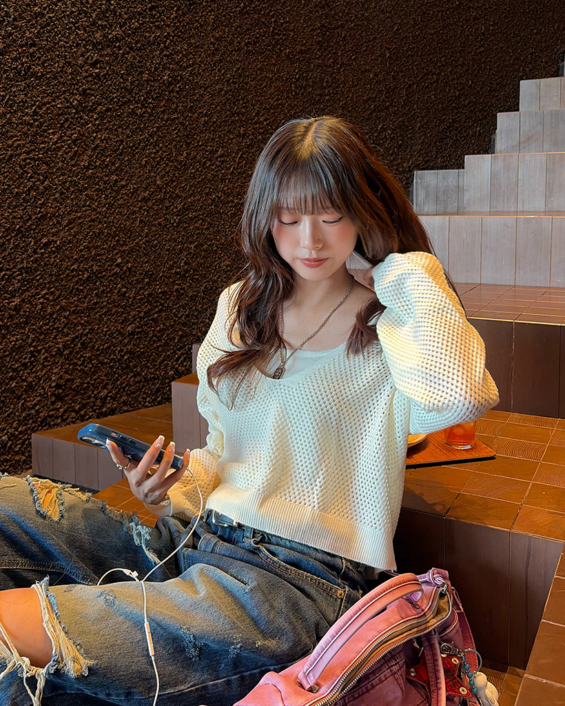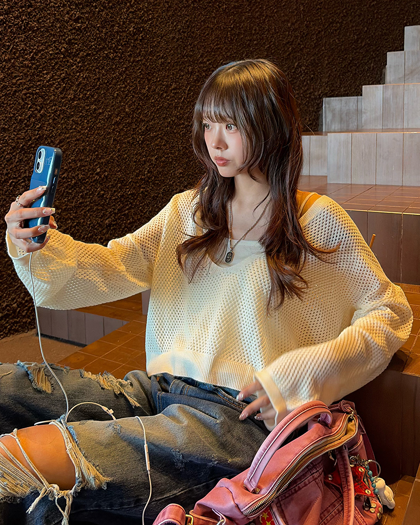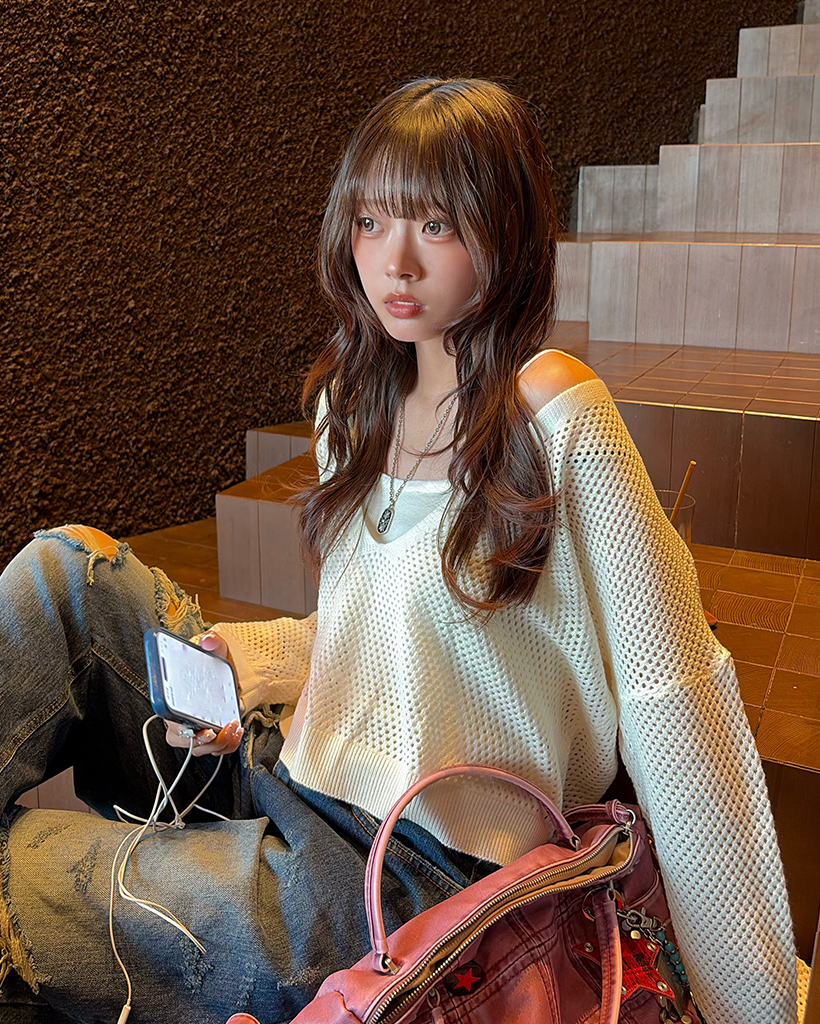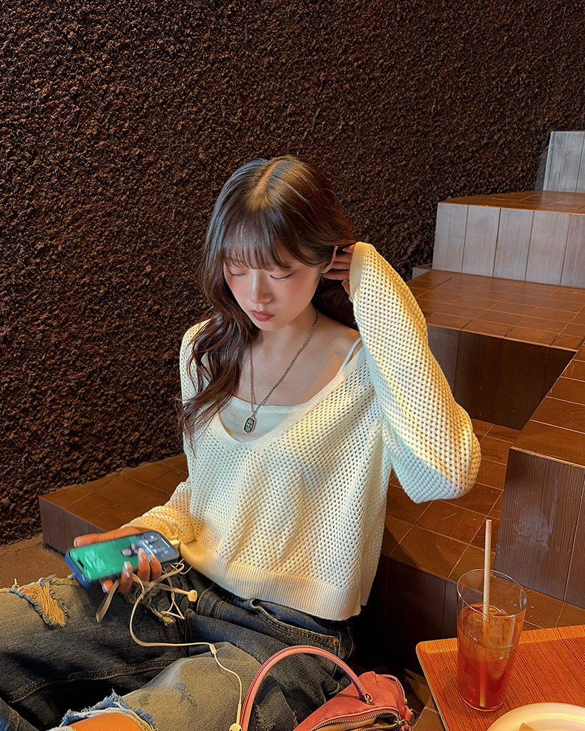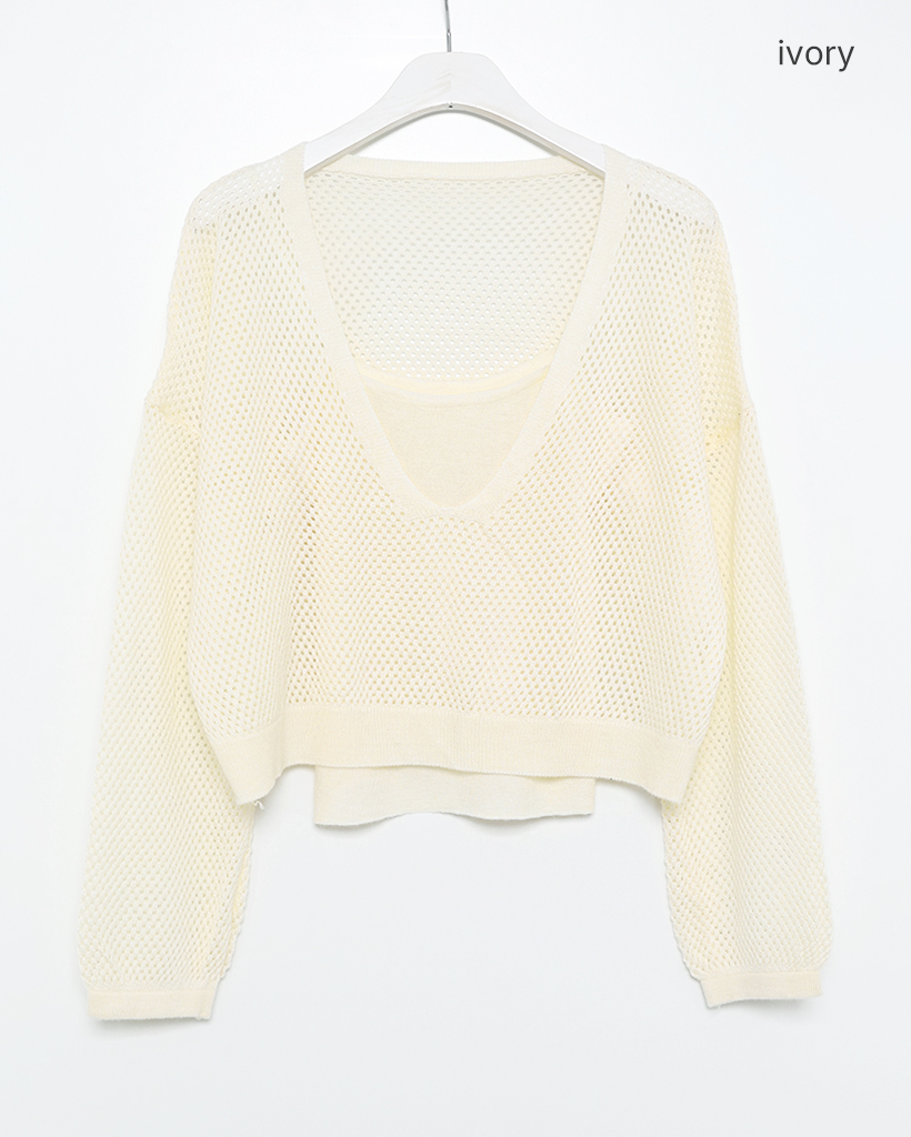 キャミ&ディープグラスネックメッシュニット