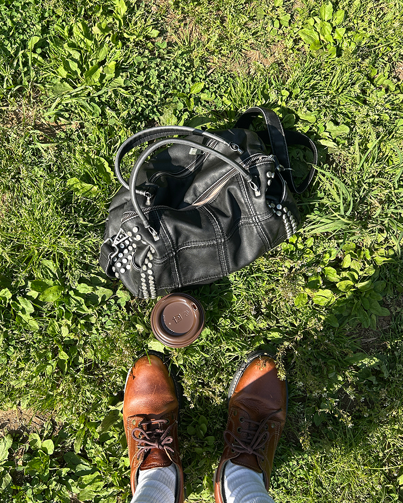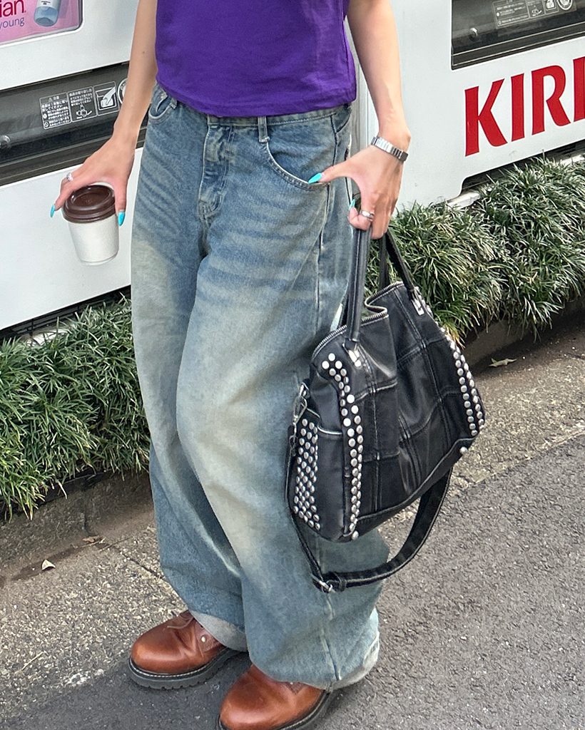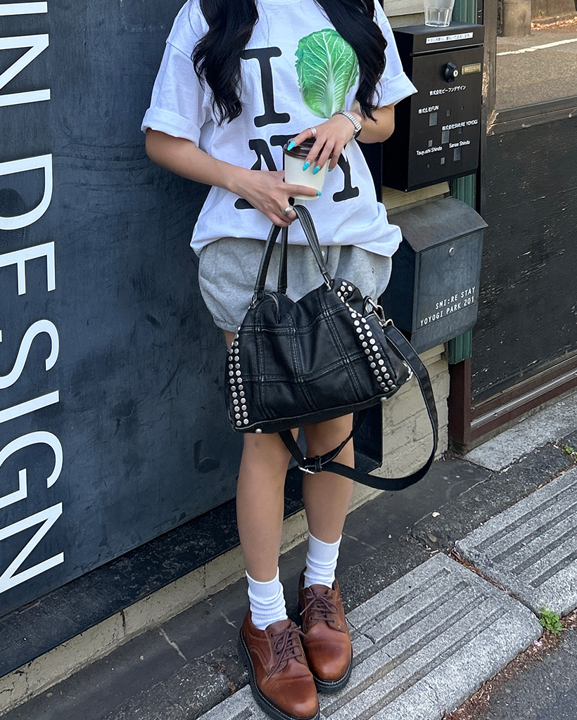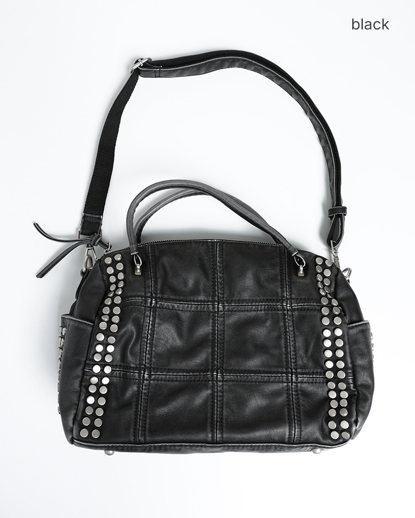 ブロックステッチダブルスタッズ2wayボストンバッグ