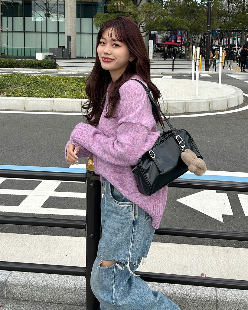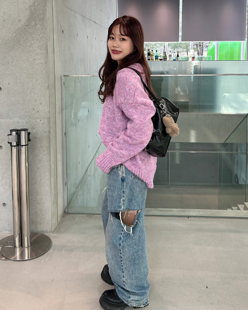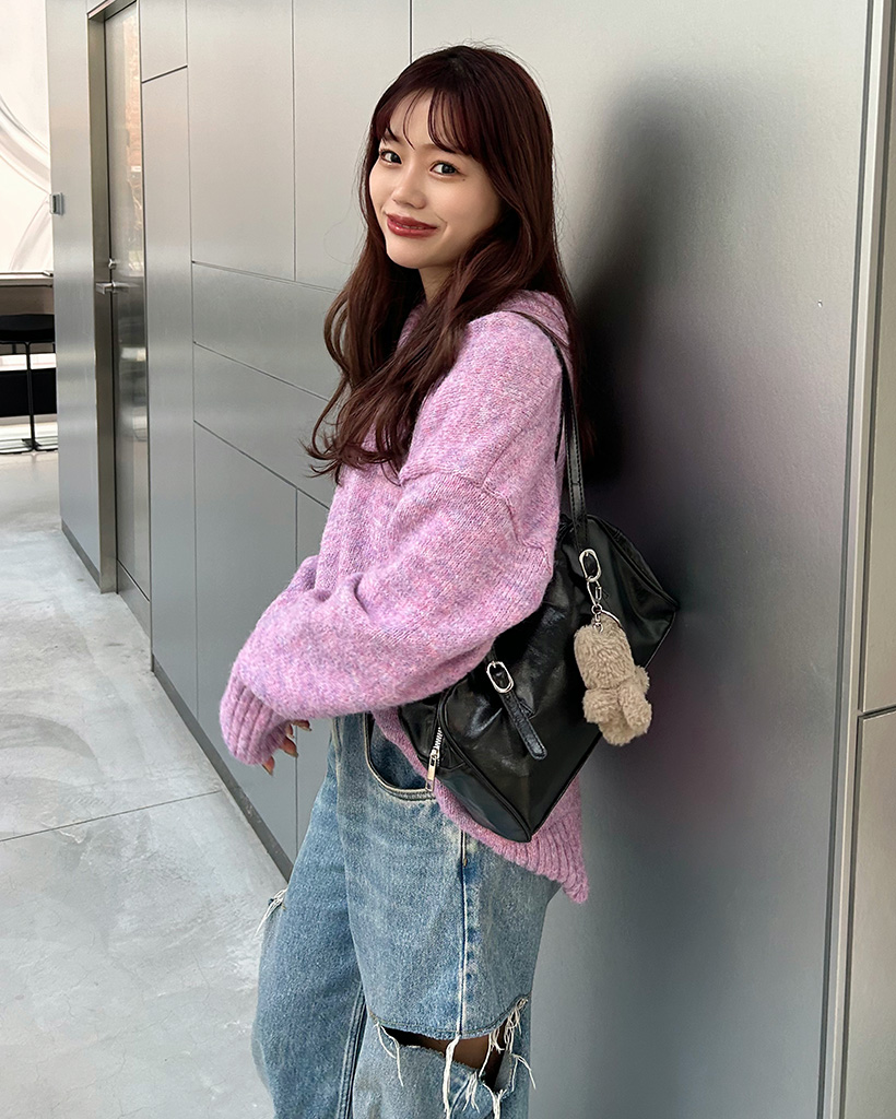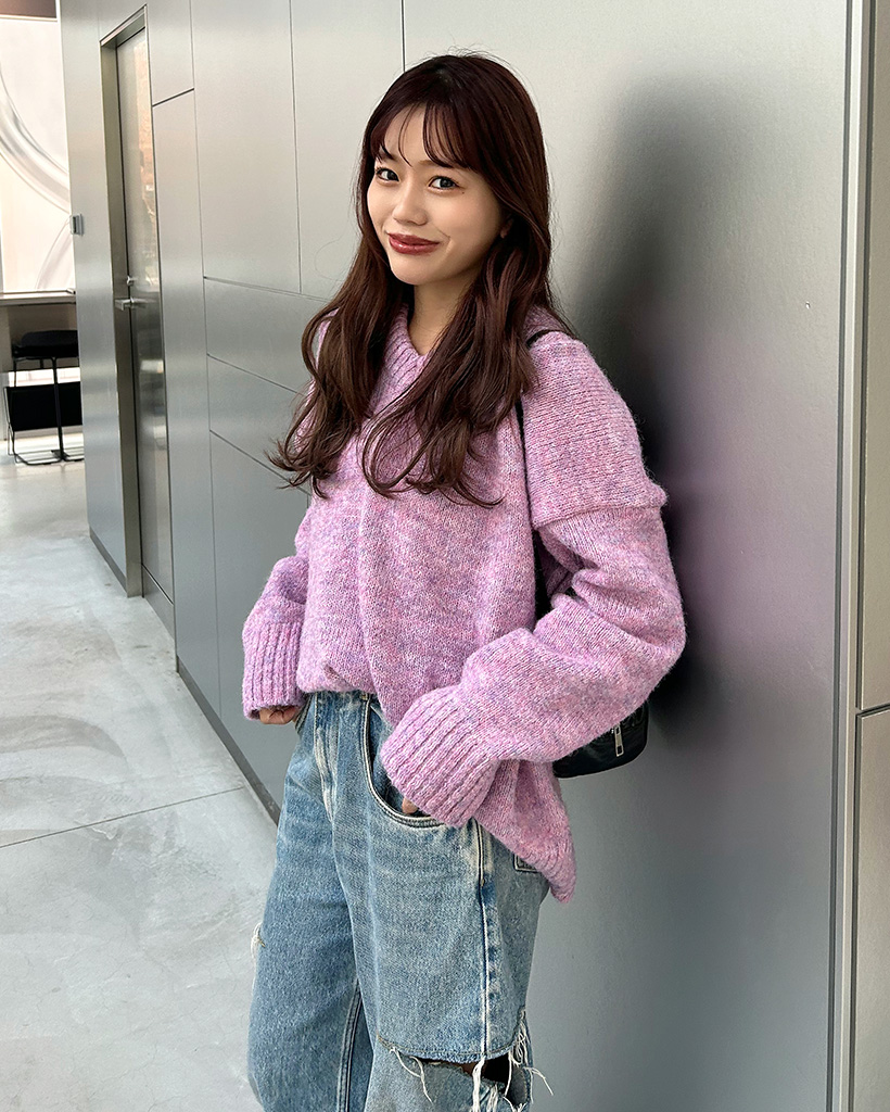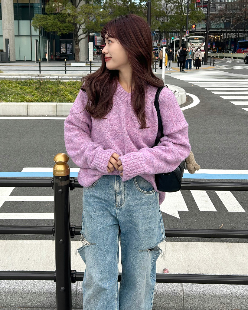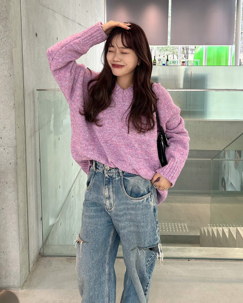カラフルVネックルーズフィットニット