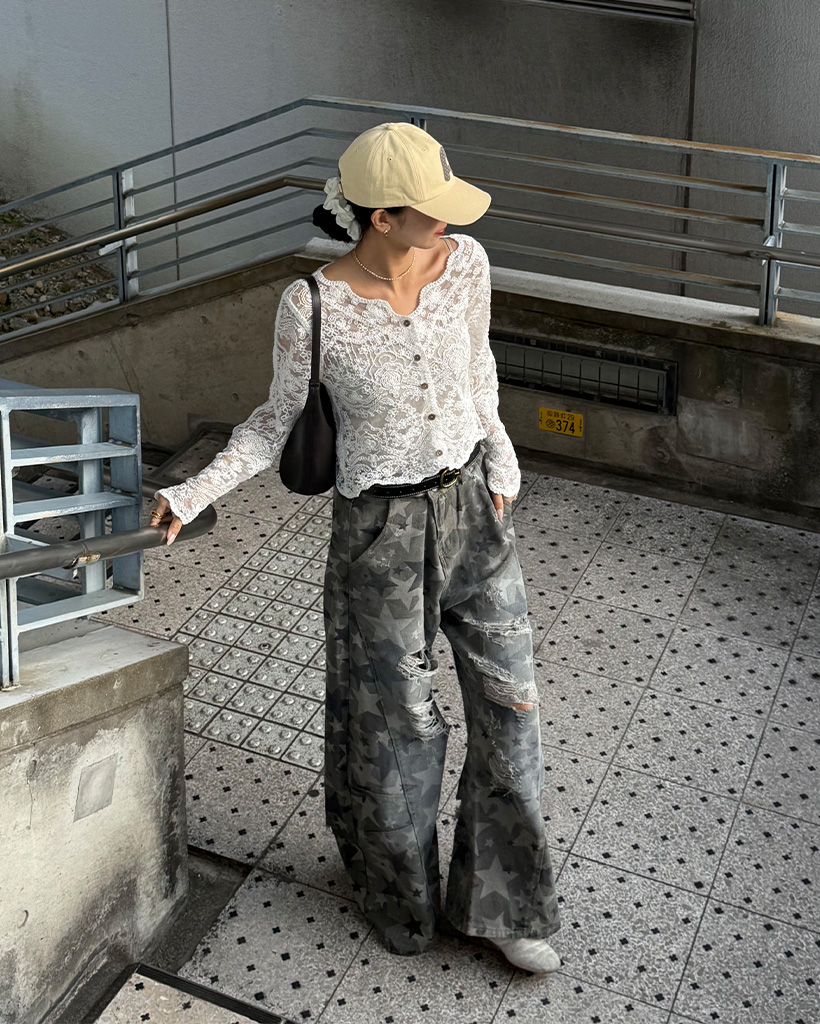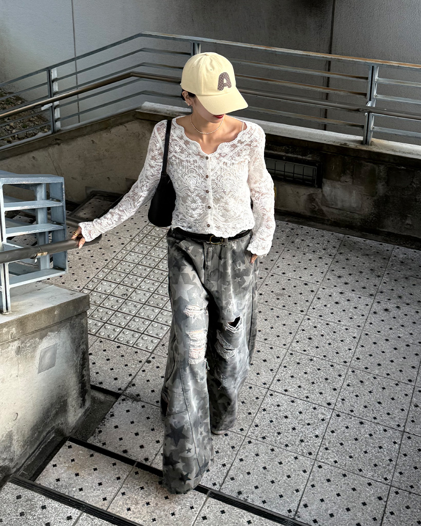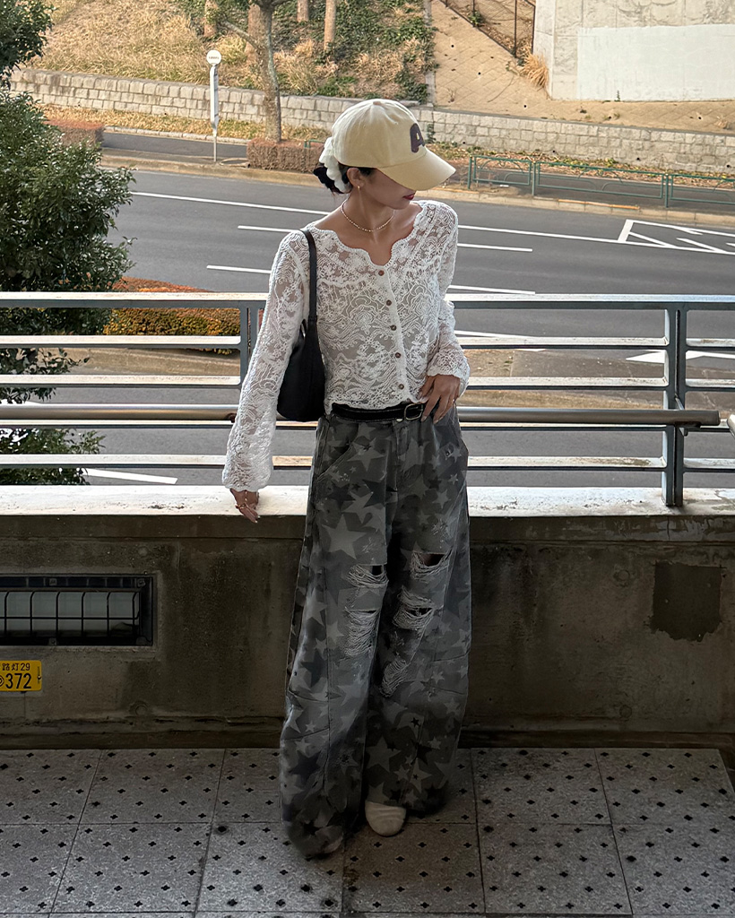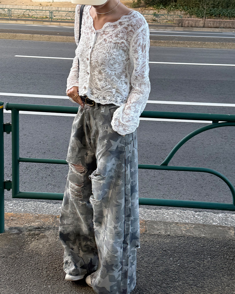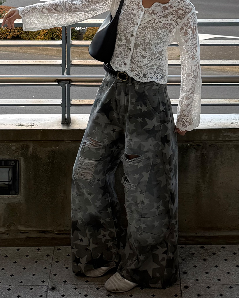 スターダメージポイントワイドコットンパンツ