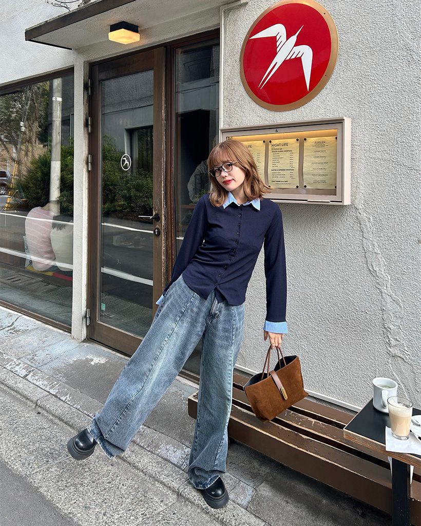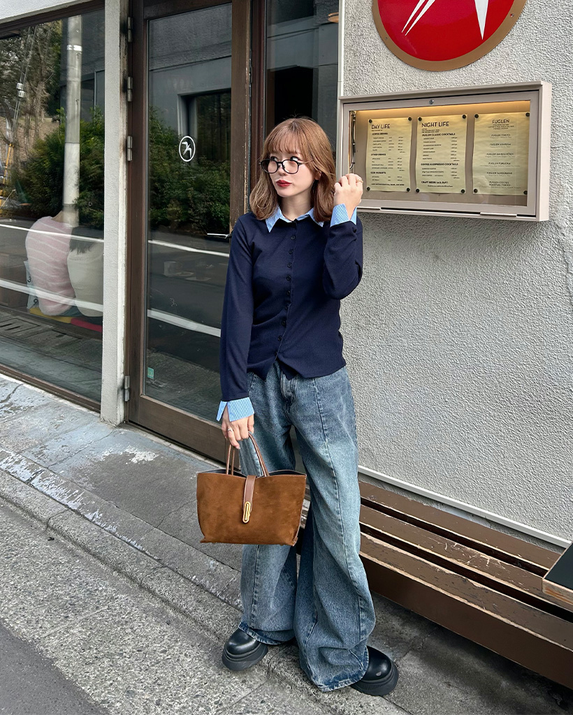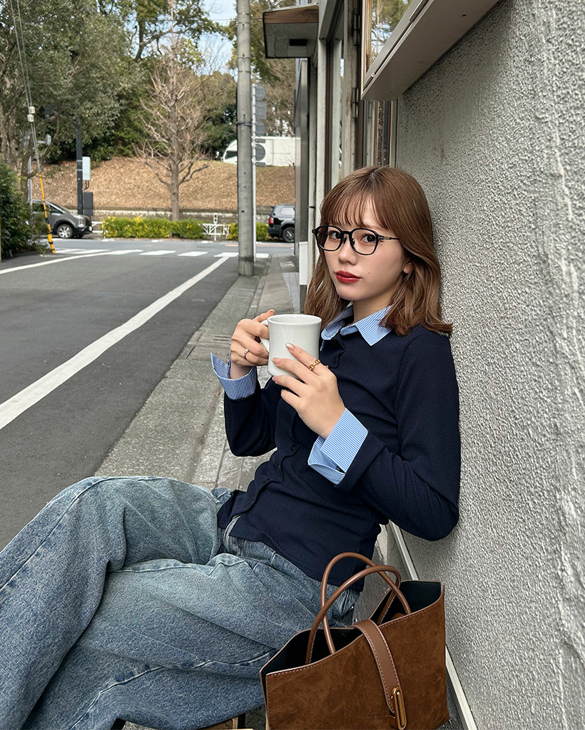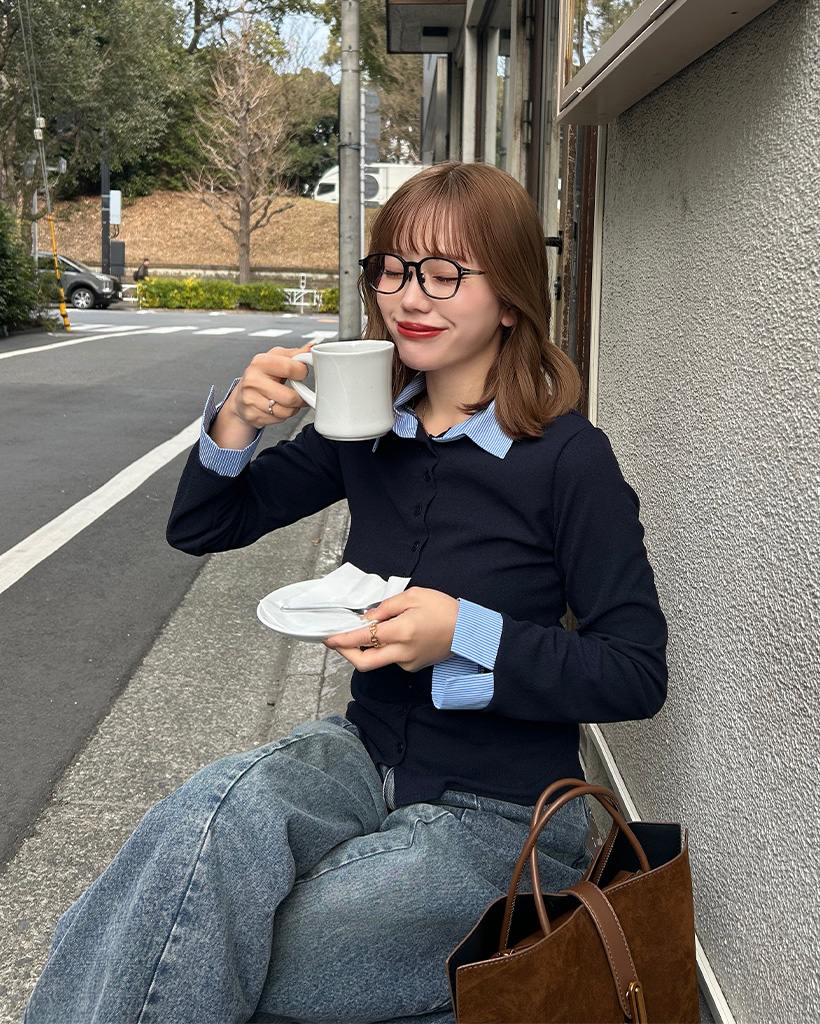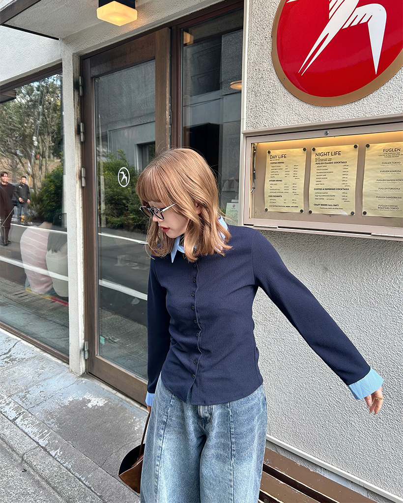 シャツレイヤードボタンカーディガン