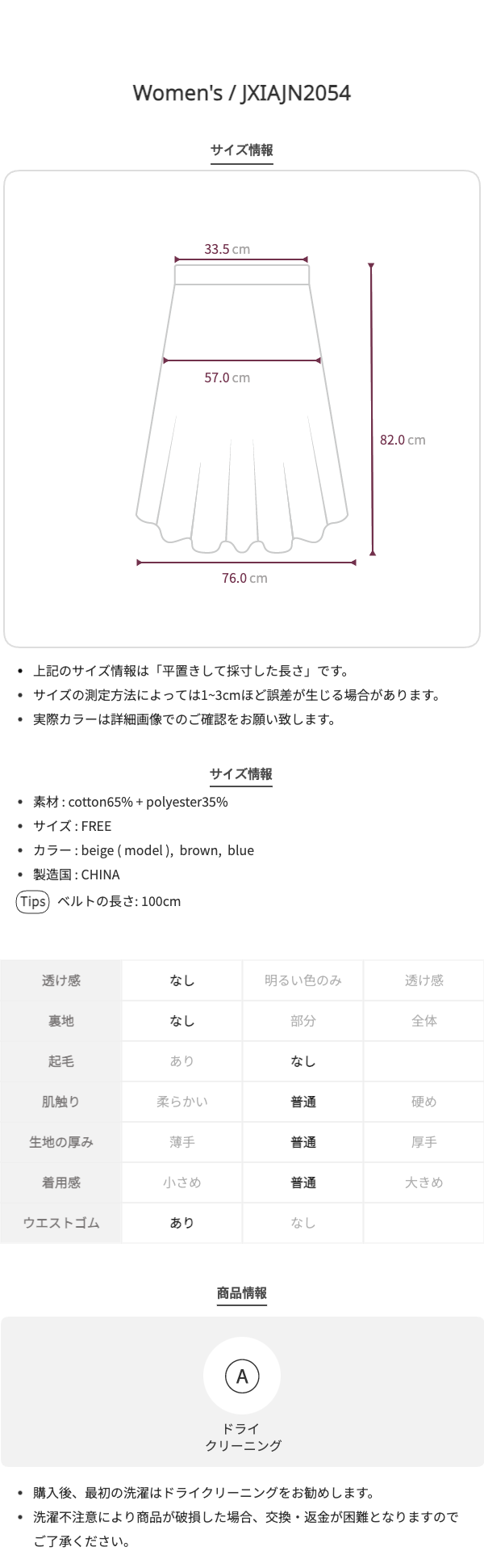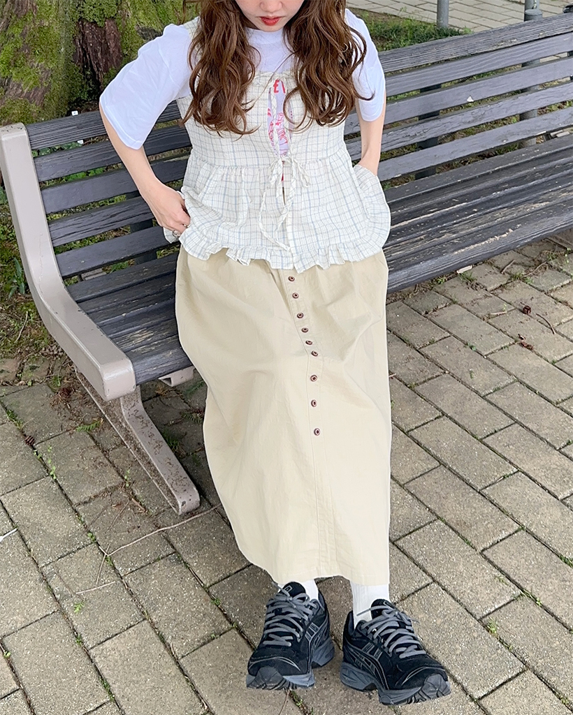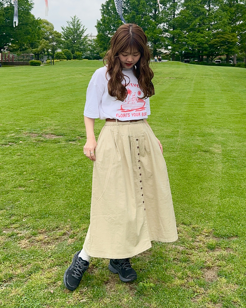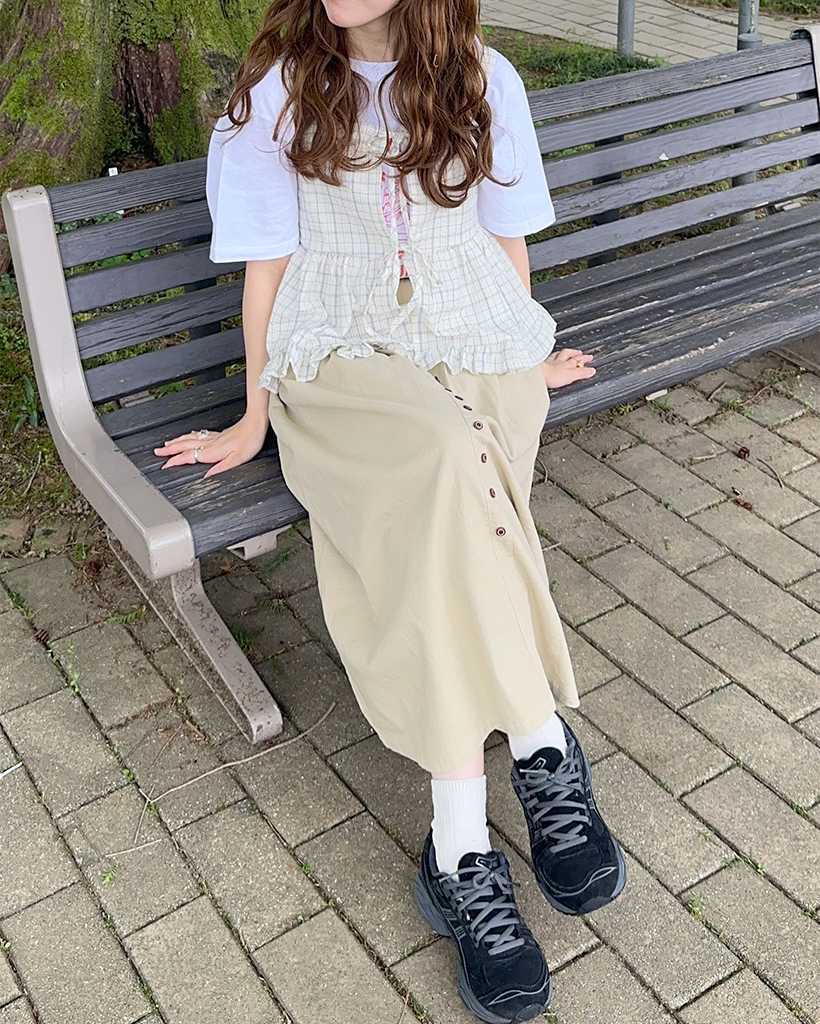ベルトセットフロントボタンスカート