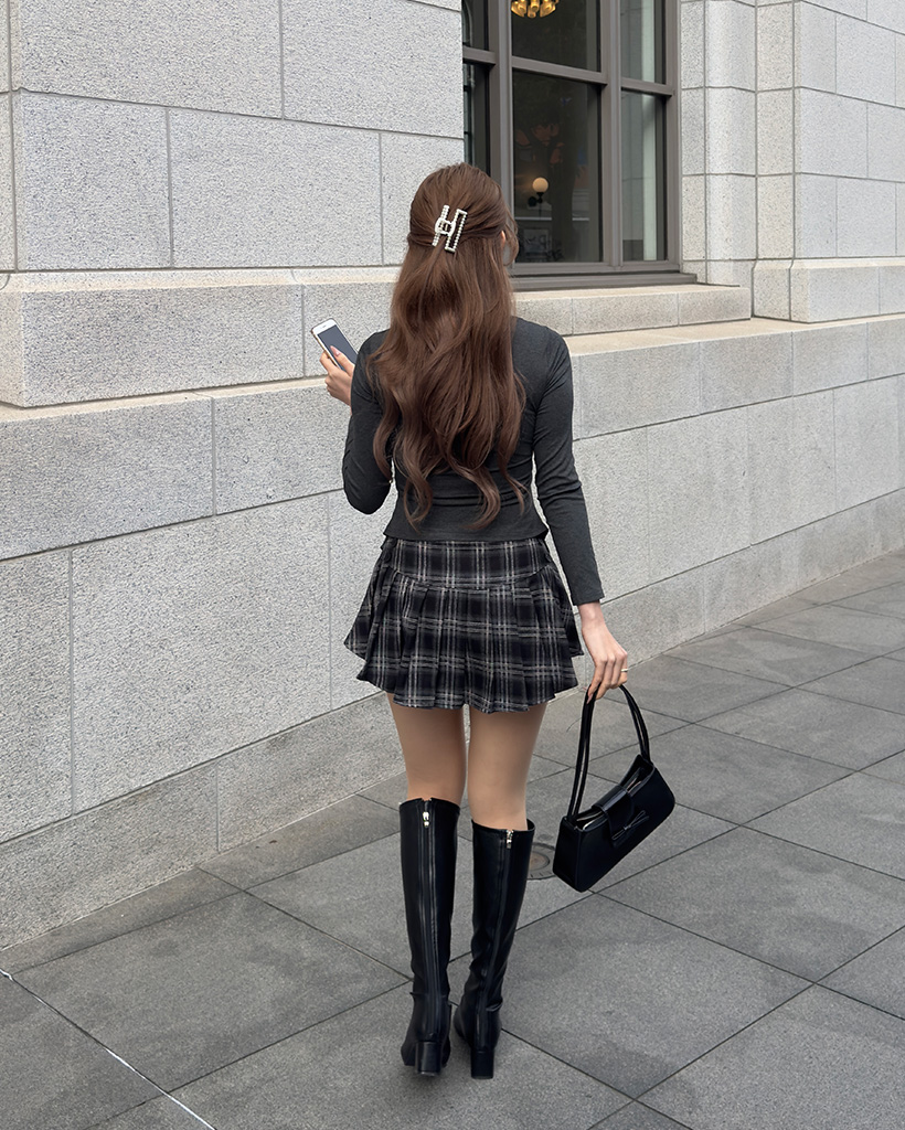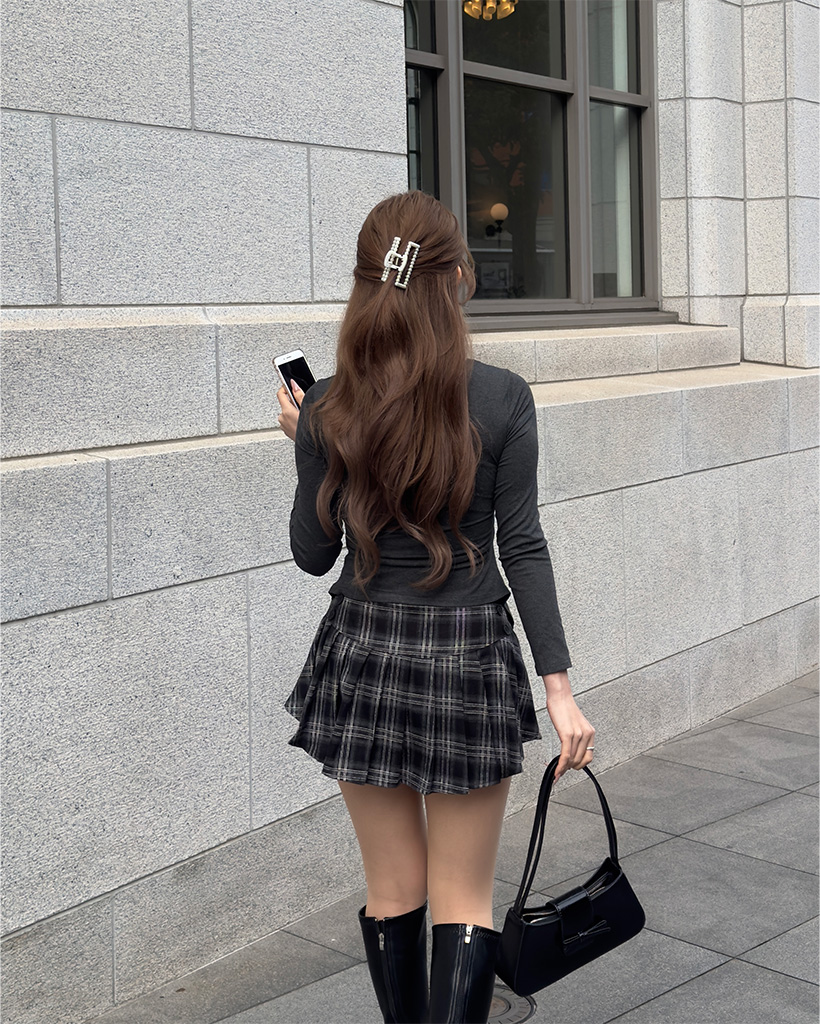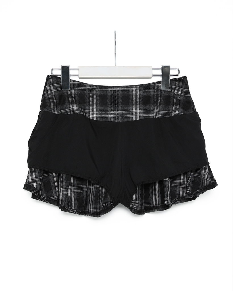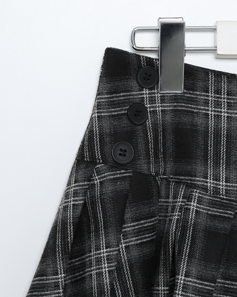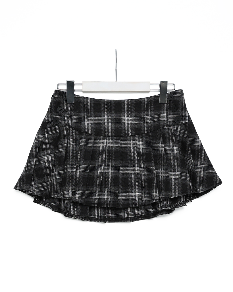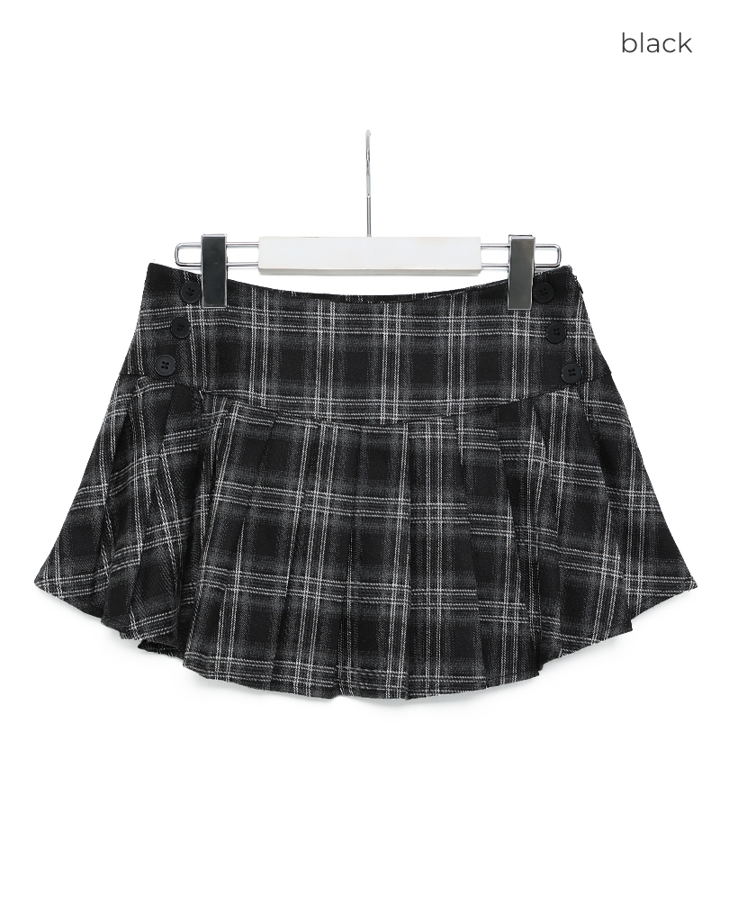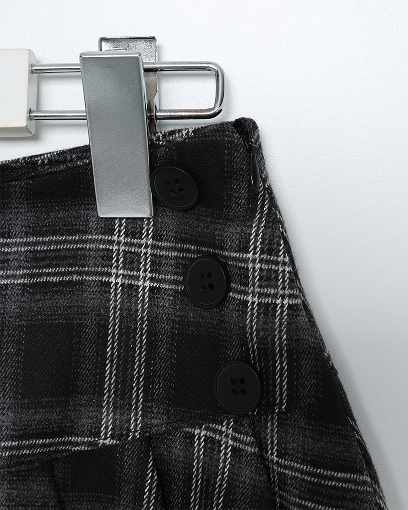 チェックボタンプリーツミニスカート