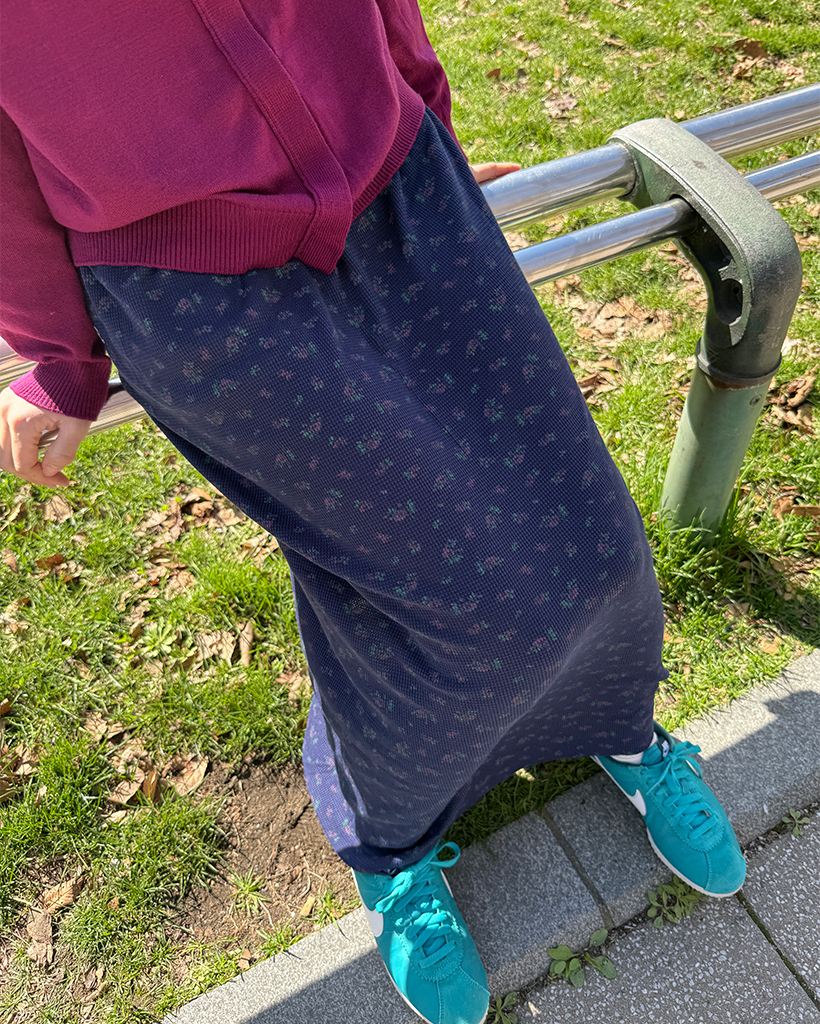 ウエストストリングフラワーロングスカート