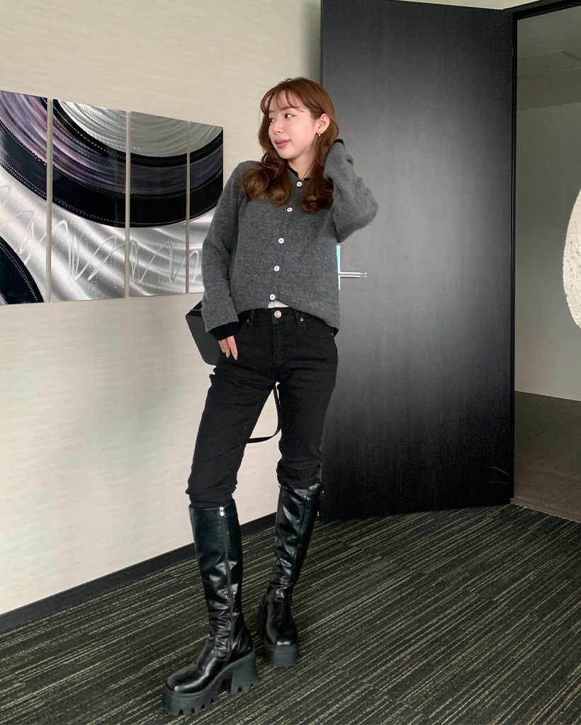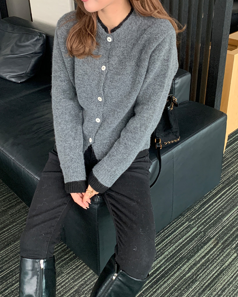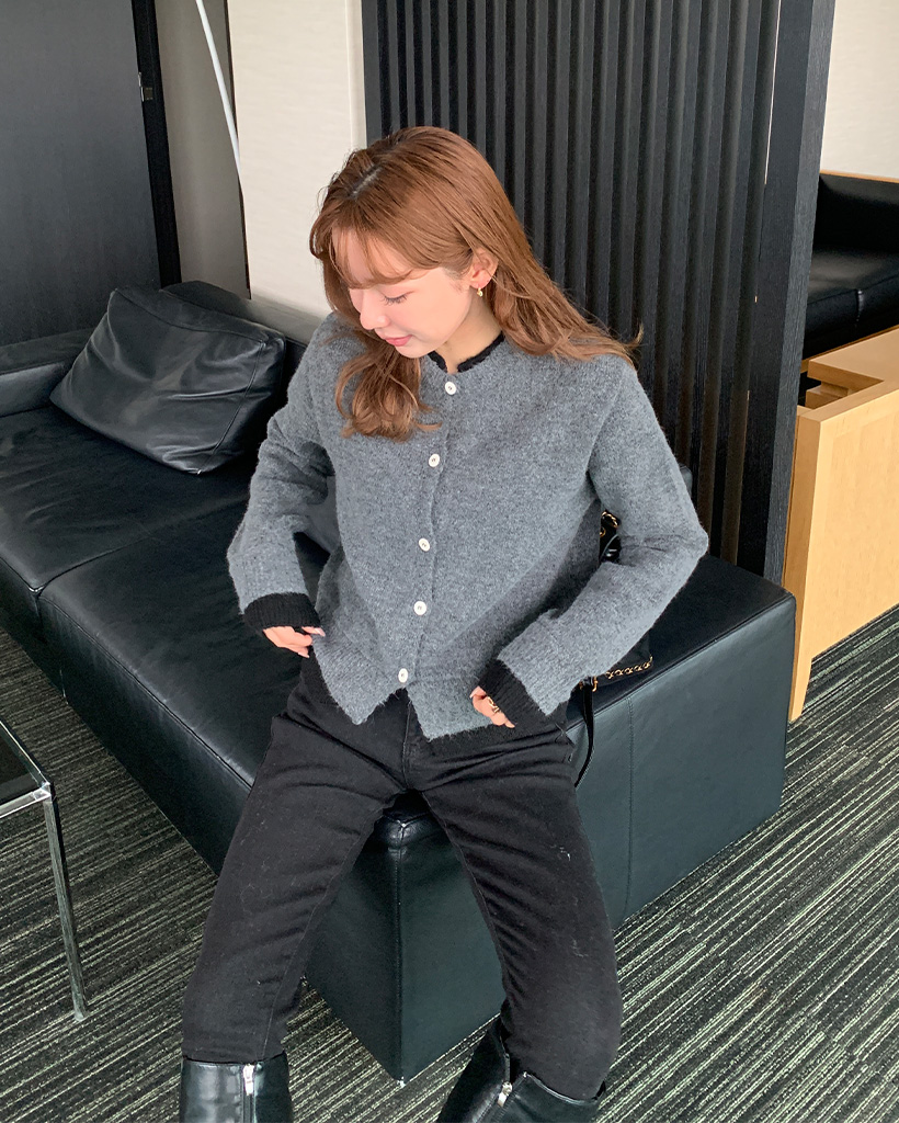 レイヤードバイカラーラウンドカーディガン