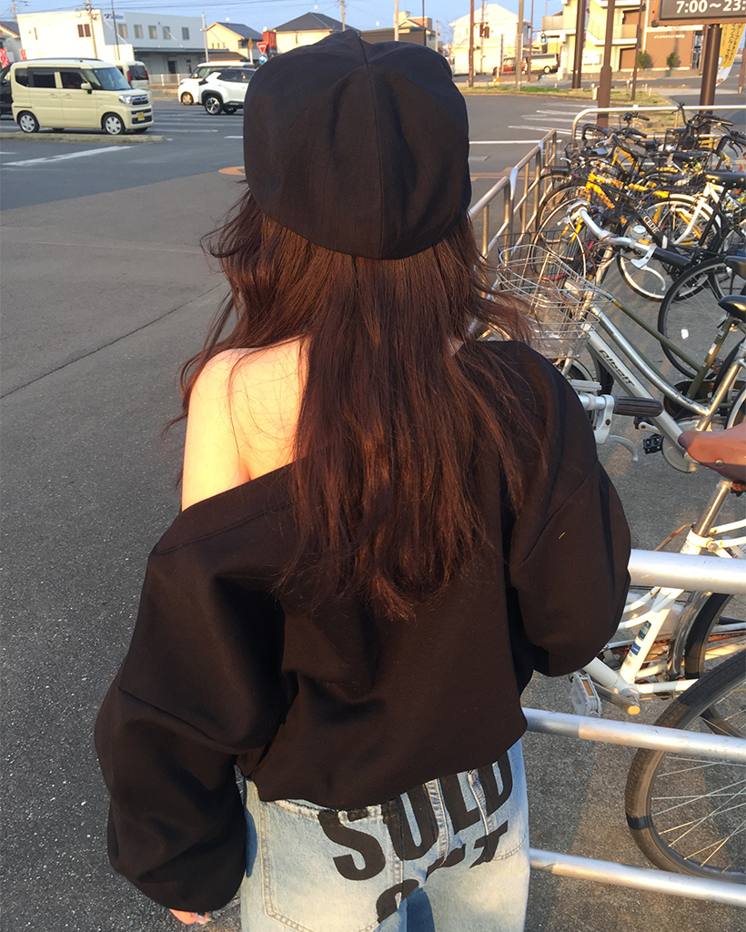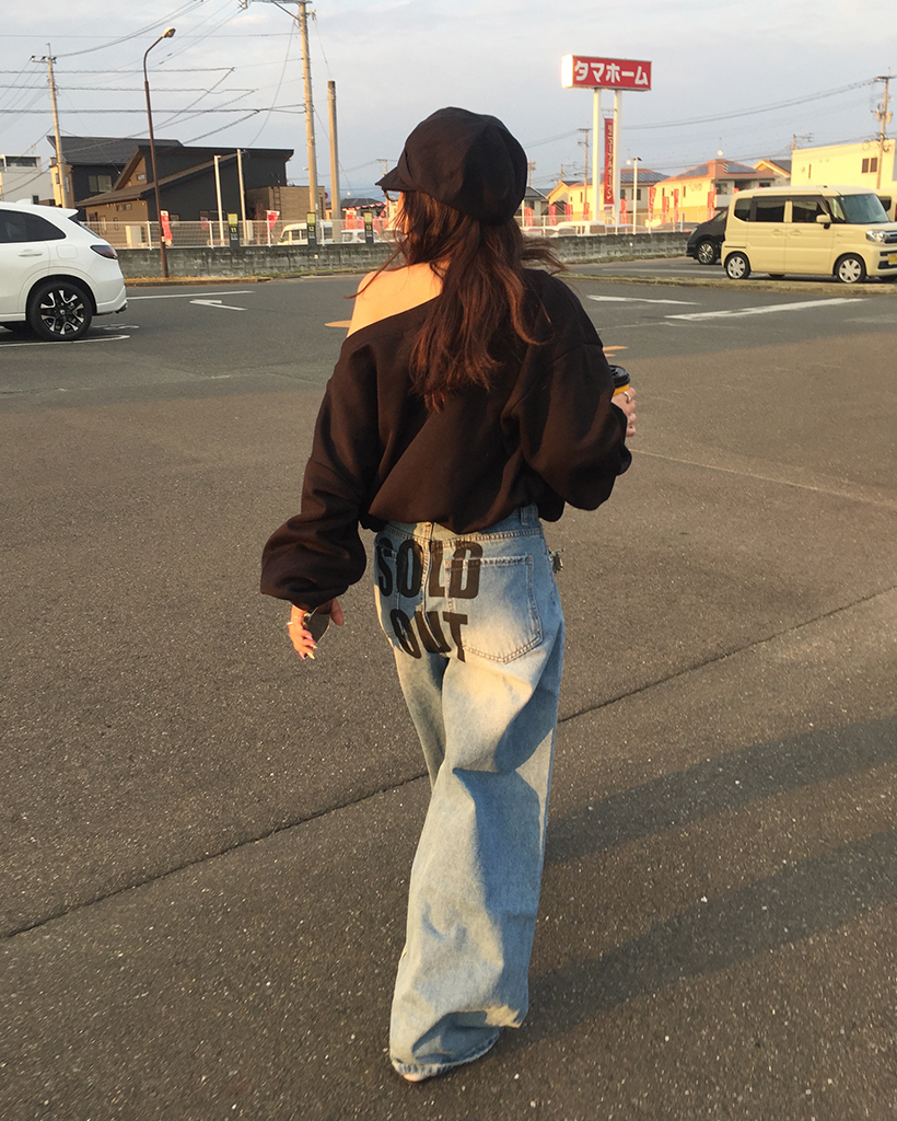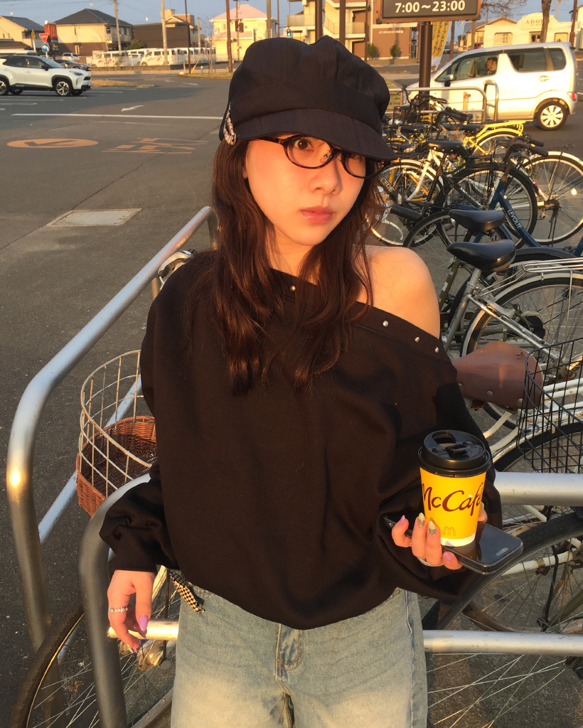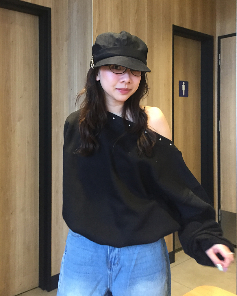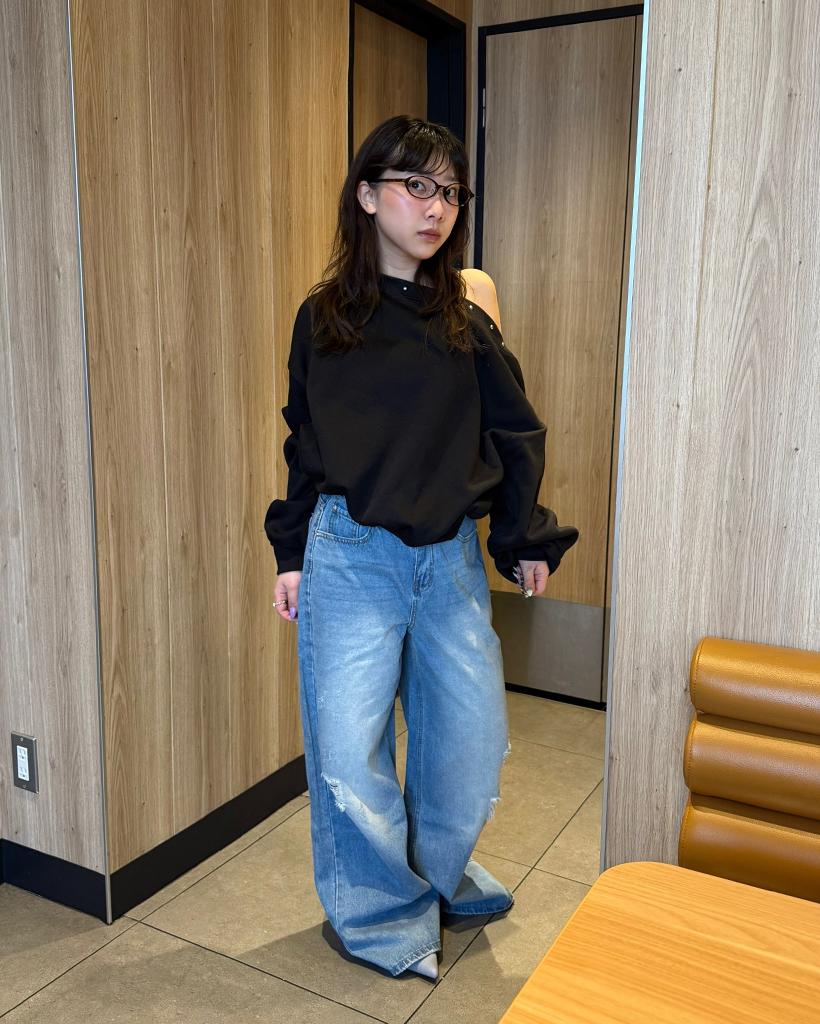 2wayネックスタッズロングスリーブ裏起毛スウェット