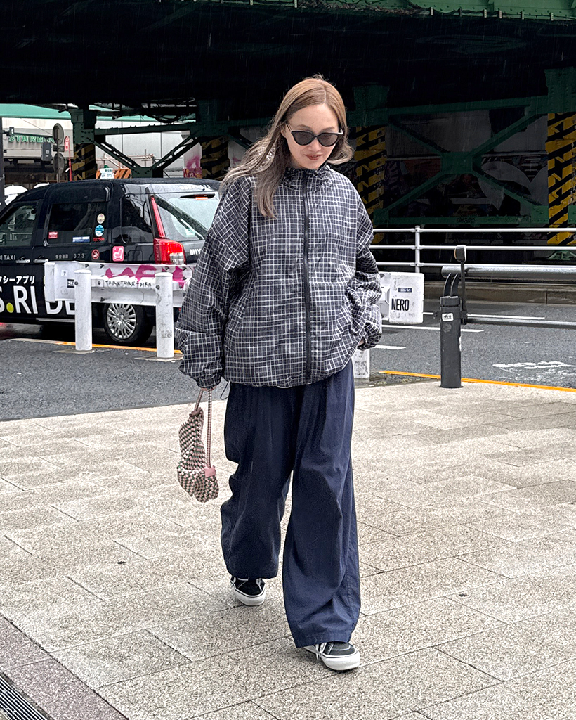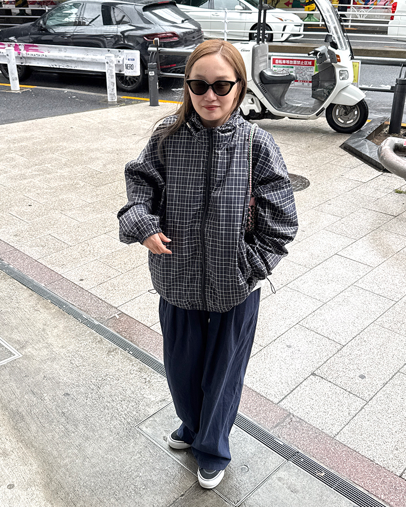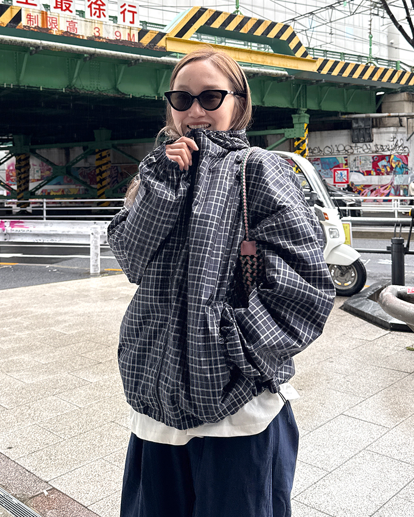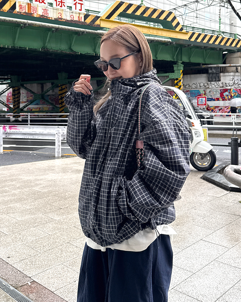 チェックフードウィンドブレーカー